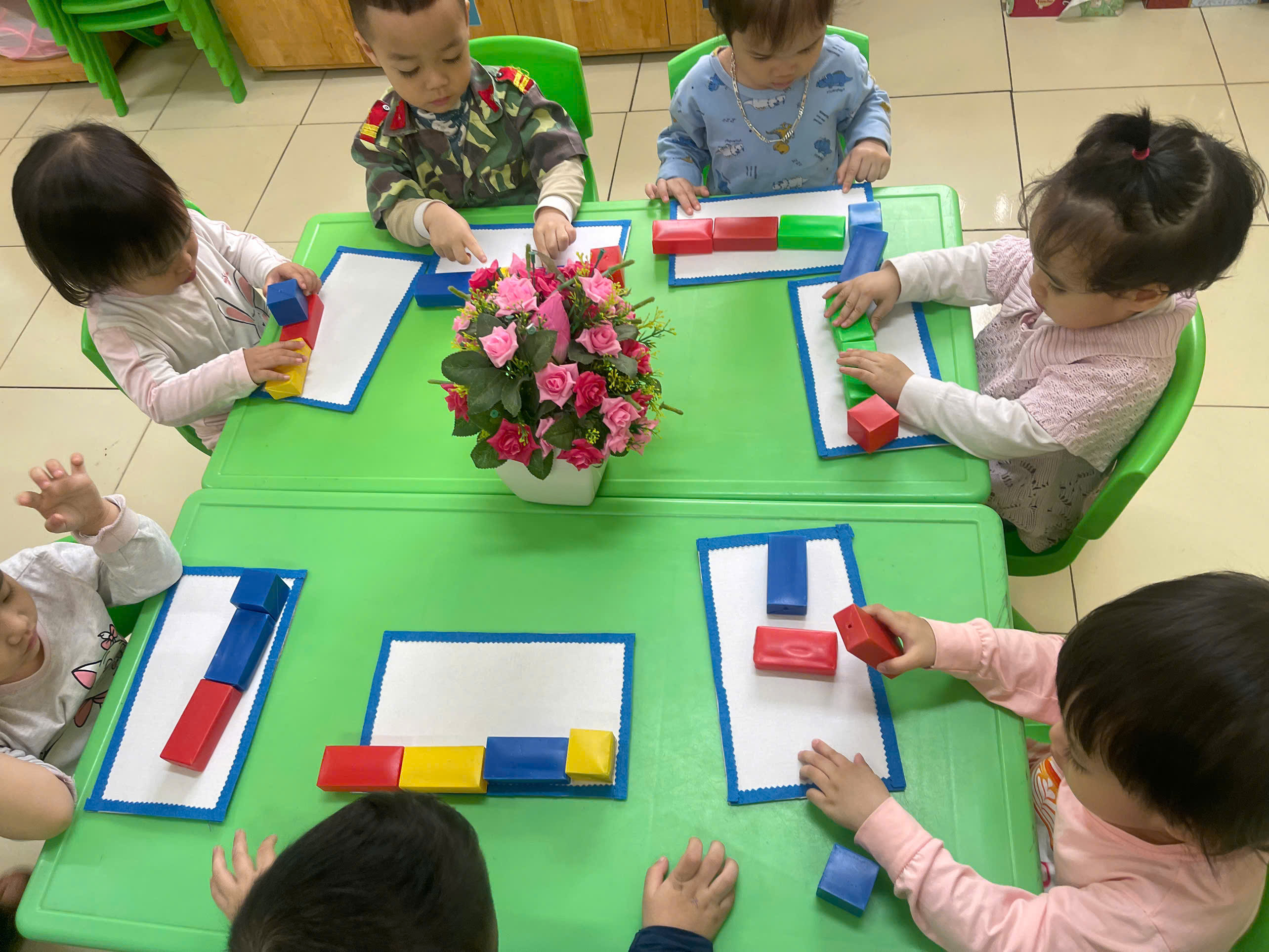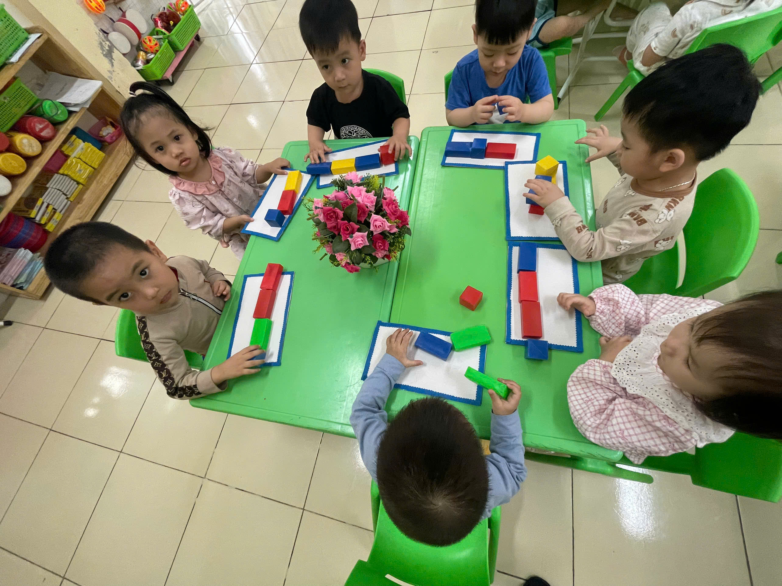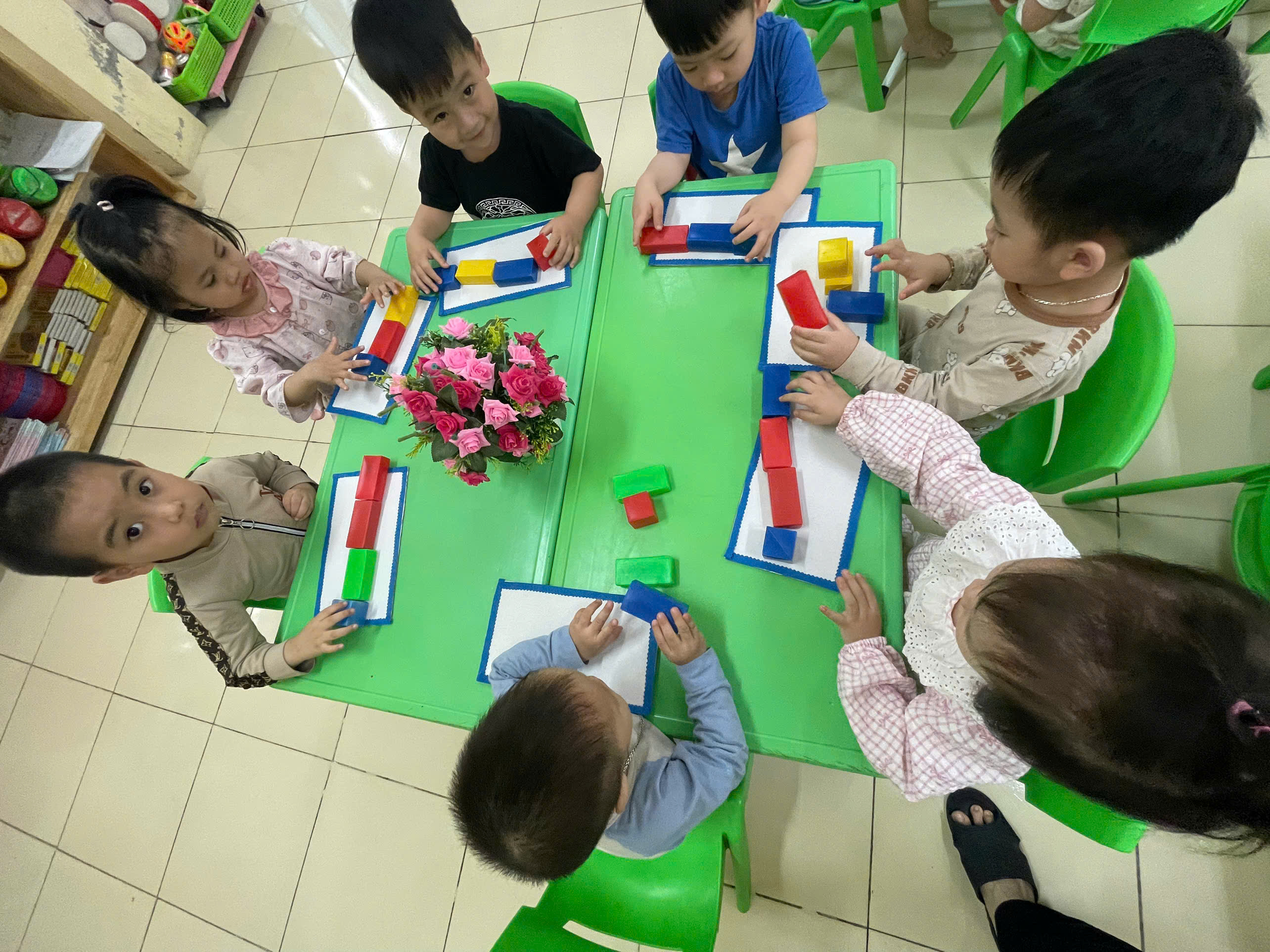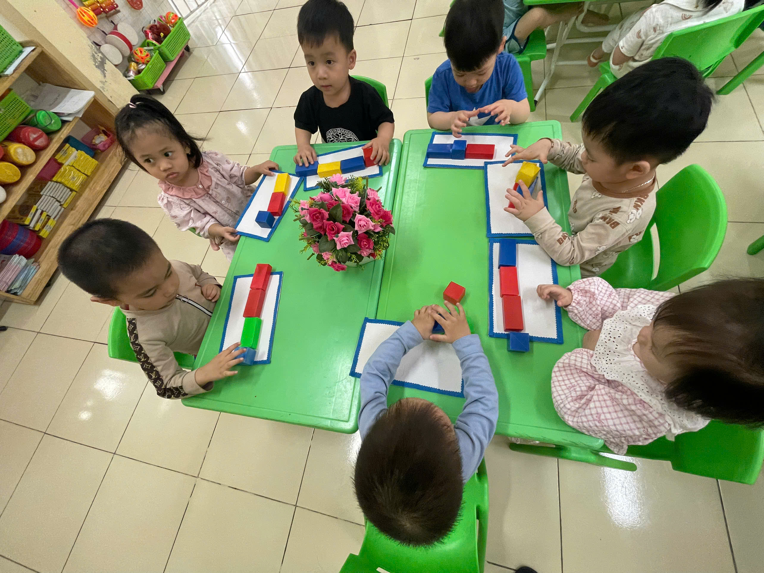 . Qua hoạt động, các con rèn được sự khéo léo, nhận biết các hình và phát triển tư duy rất tốt. Mời phụ huynh cùng đón xem những khoảnh khắc đáng yêu của các con ạ