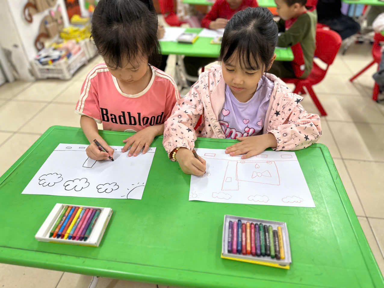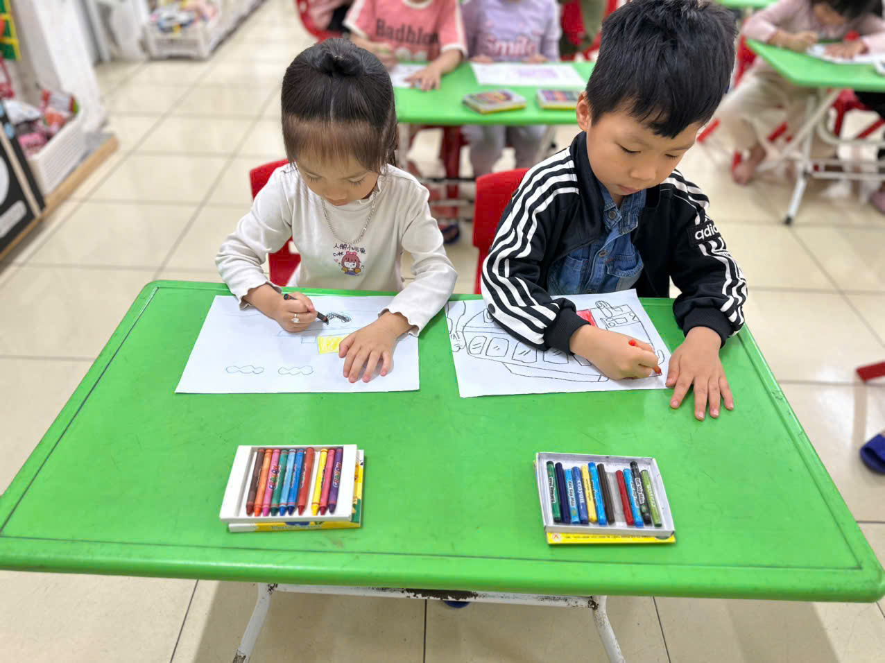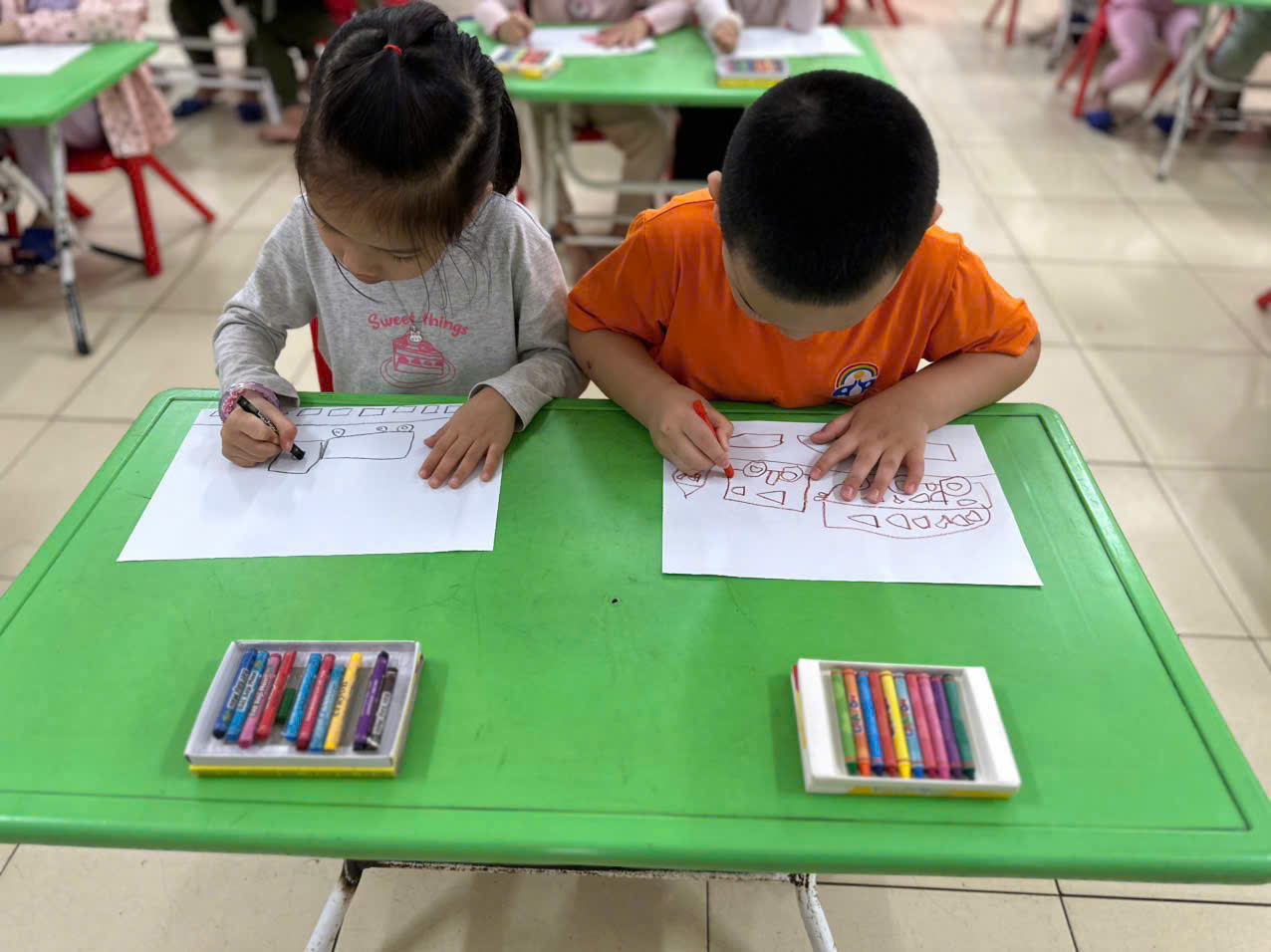 C5 đã cùng nhau tham gia hoạt động Tạo hình vẽ những chiếc ô tô thật đáng yêu
