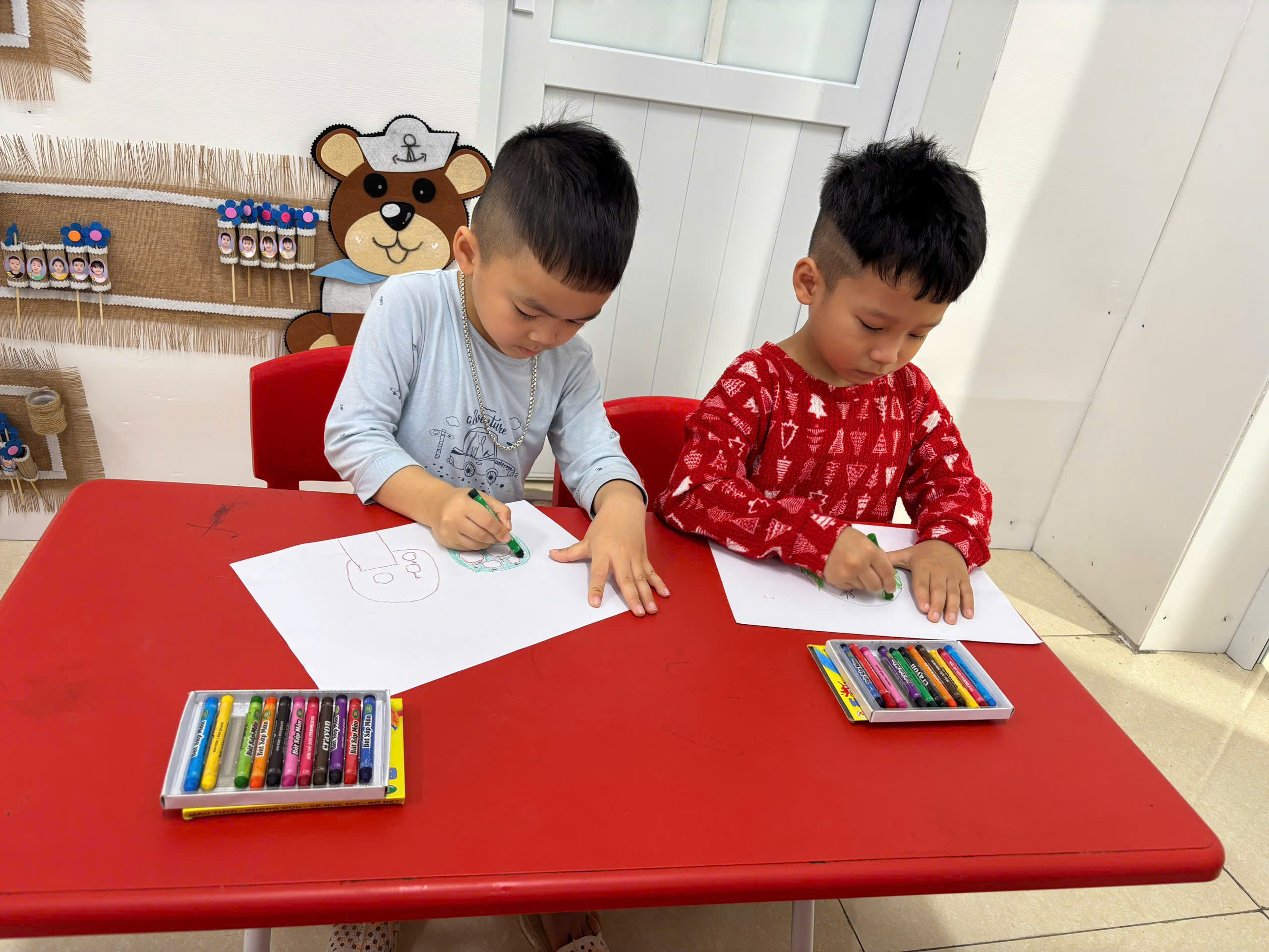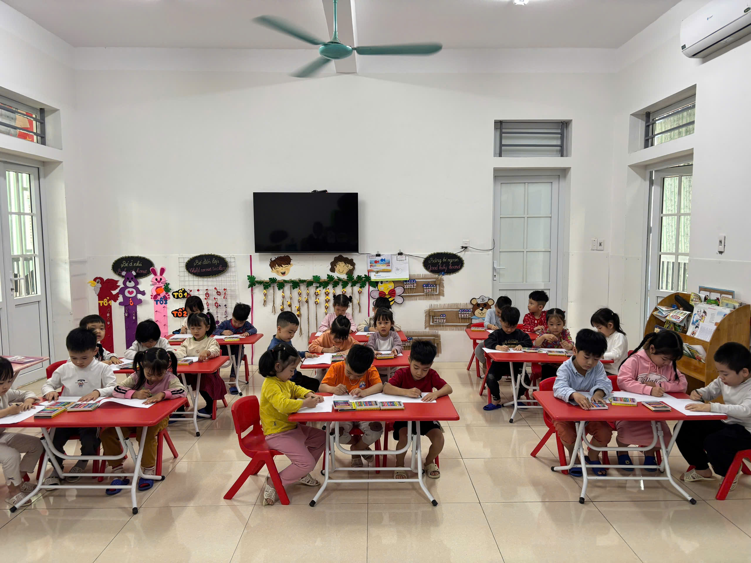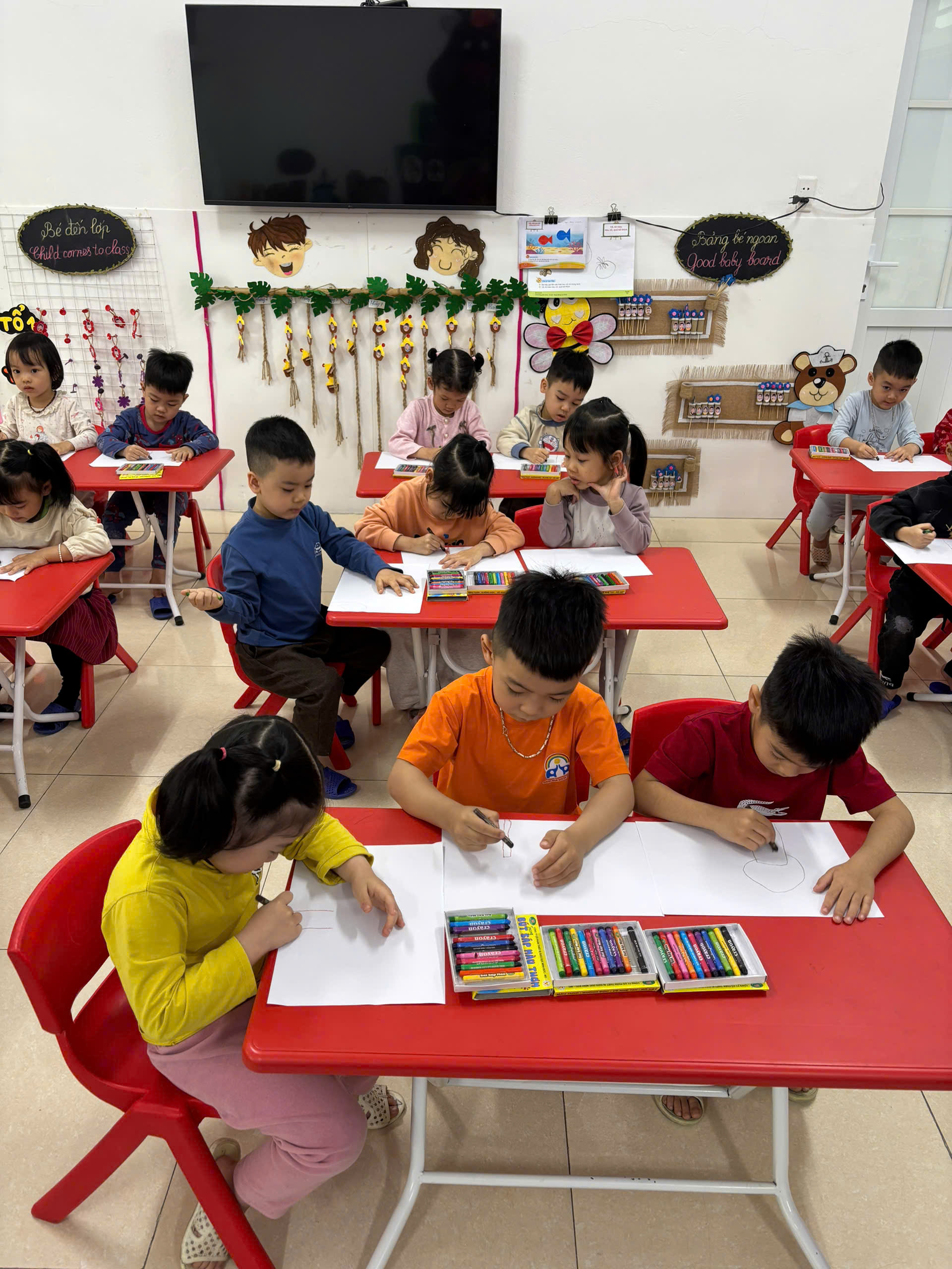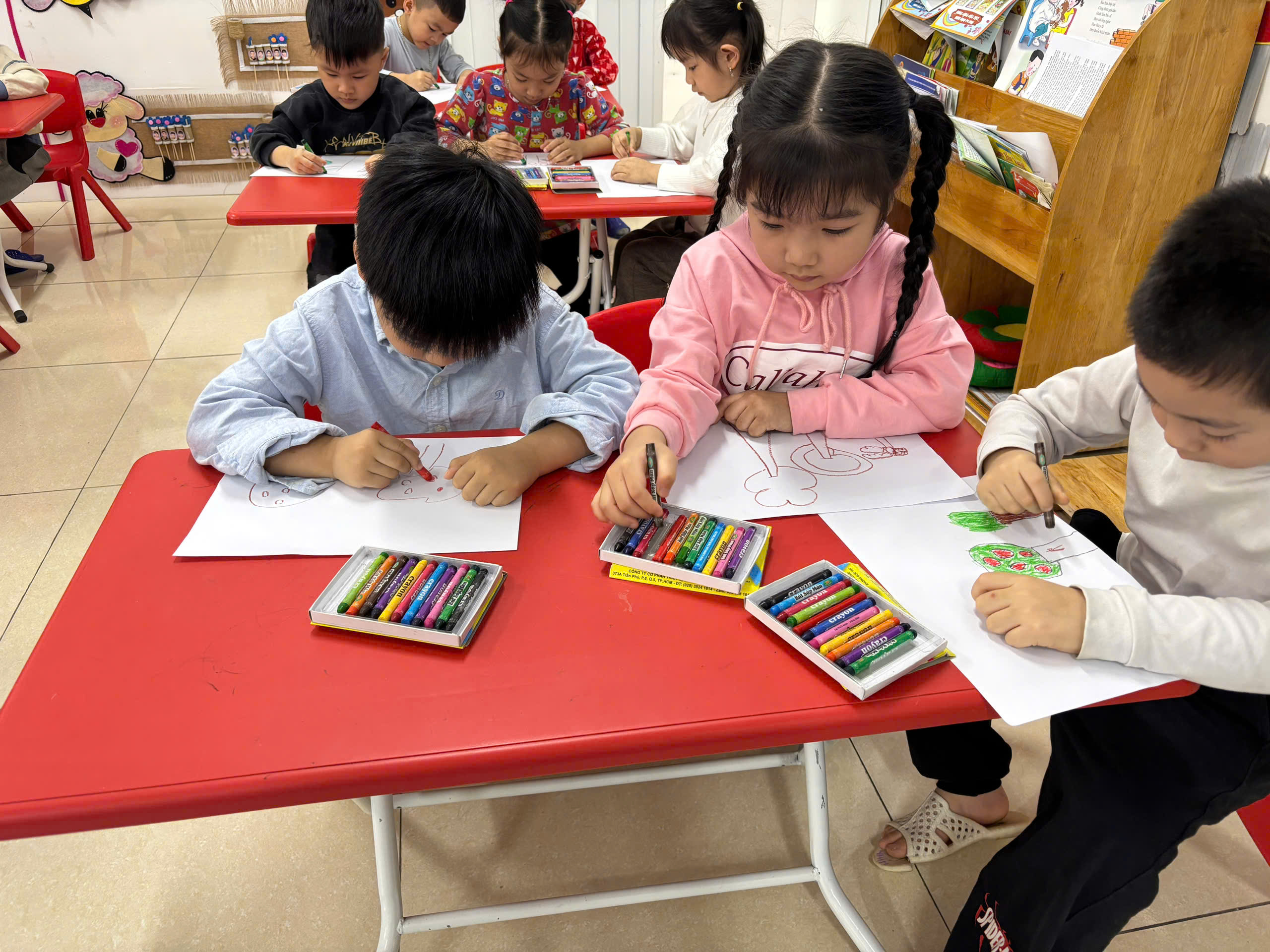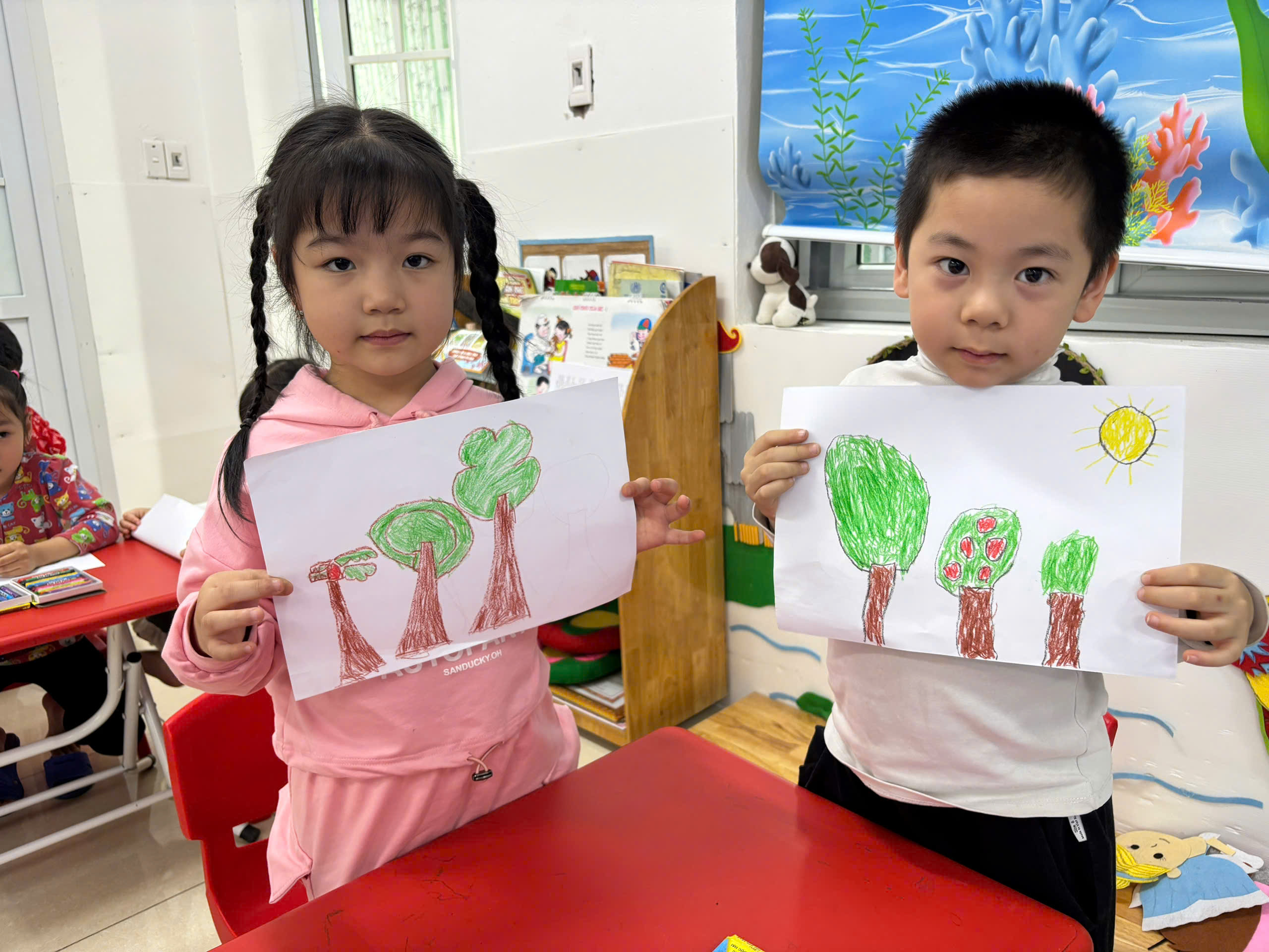 Các con lớp C4 được tham gia hoạt động tạo hình vẽ cây xanh.