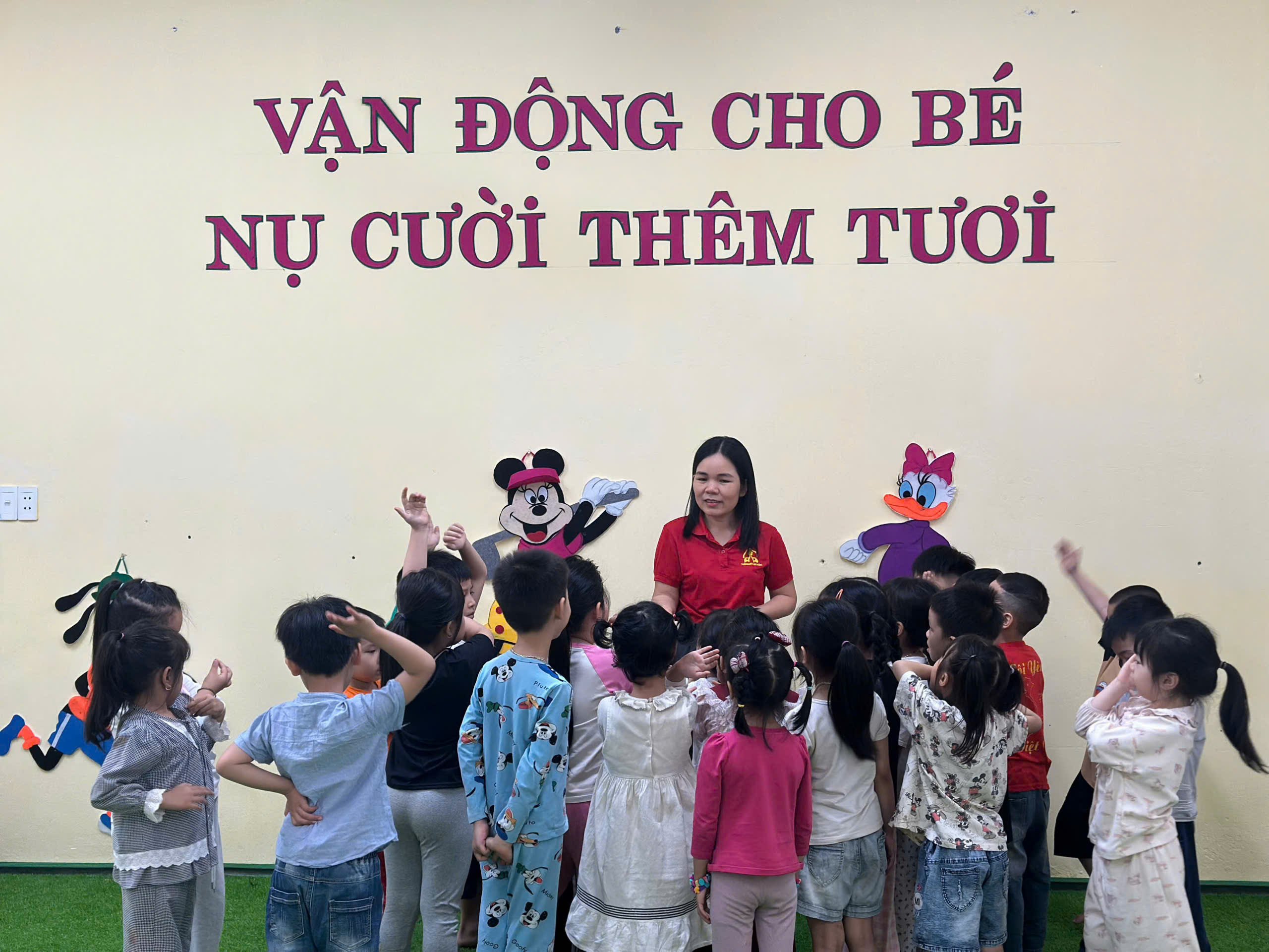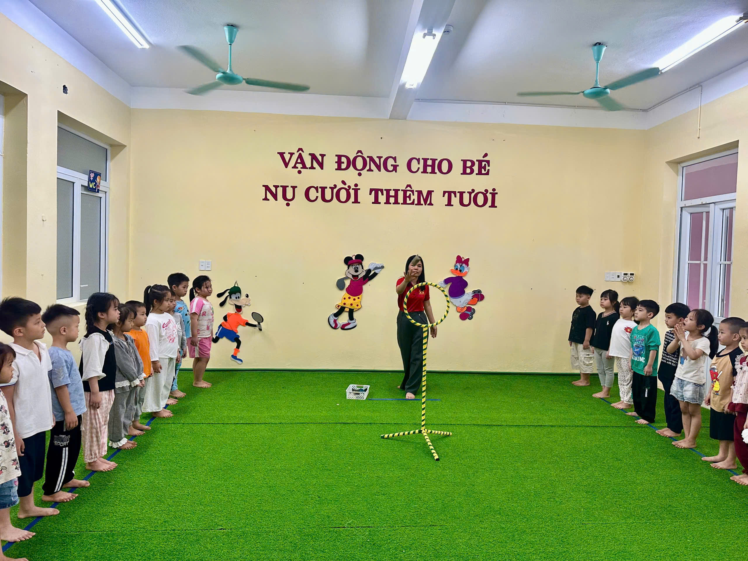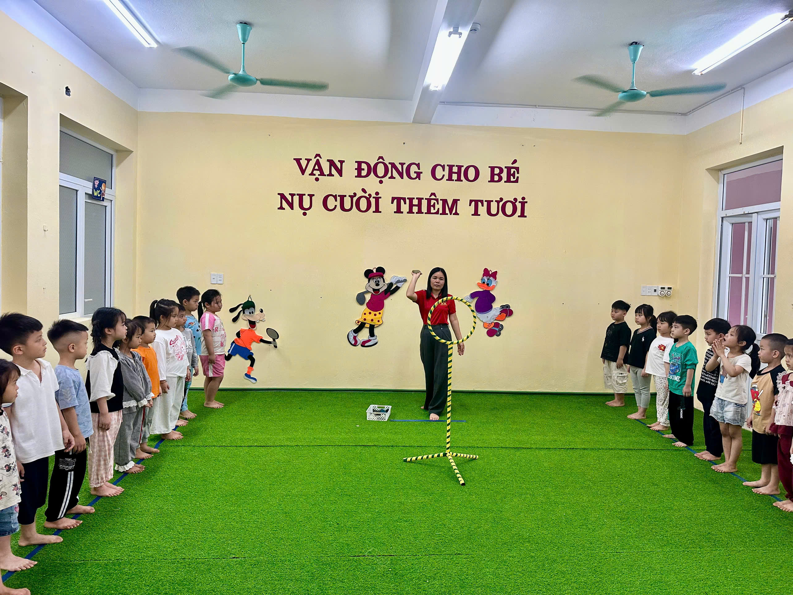 Qua tiết học này trẻ biết cách ném trúng đích bằng 1 tay. Biết phối hợp tay – mắt khi ném. Các con được rèn kỹ năng ném chính xác vào đích. Phát triển cơ tay, sự khéo léo và định hướng không gian. Các con lớp E5 rất hứng thú tham gia hoạt động.