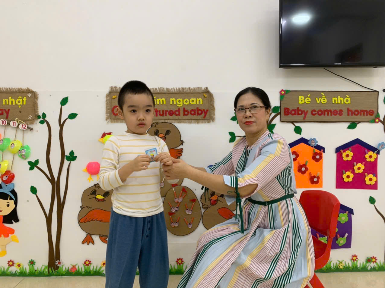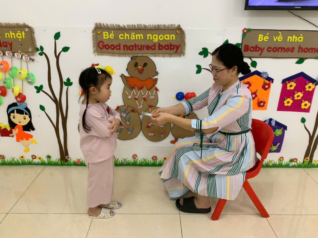“Các nghề phổ biến” và nhận phiếu bé ngoan lớp D4