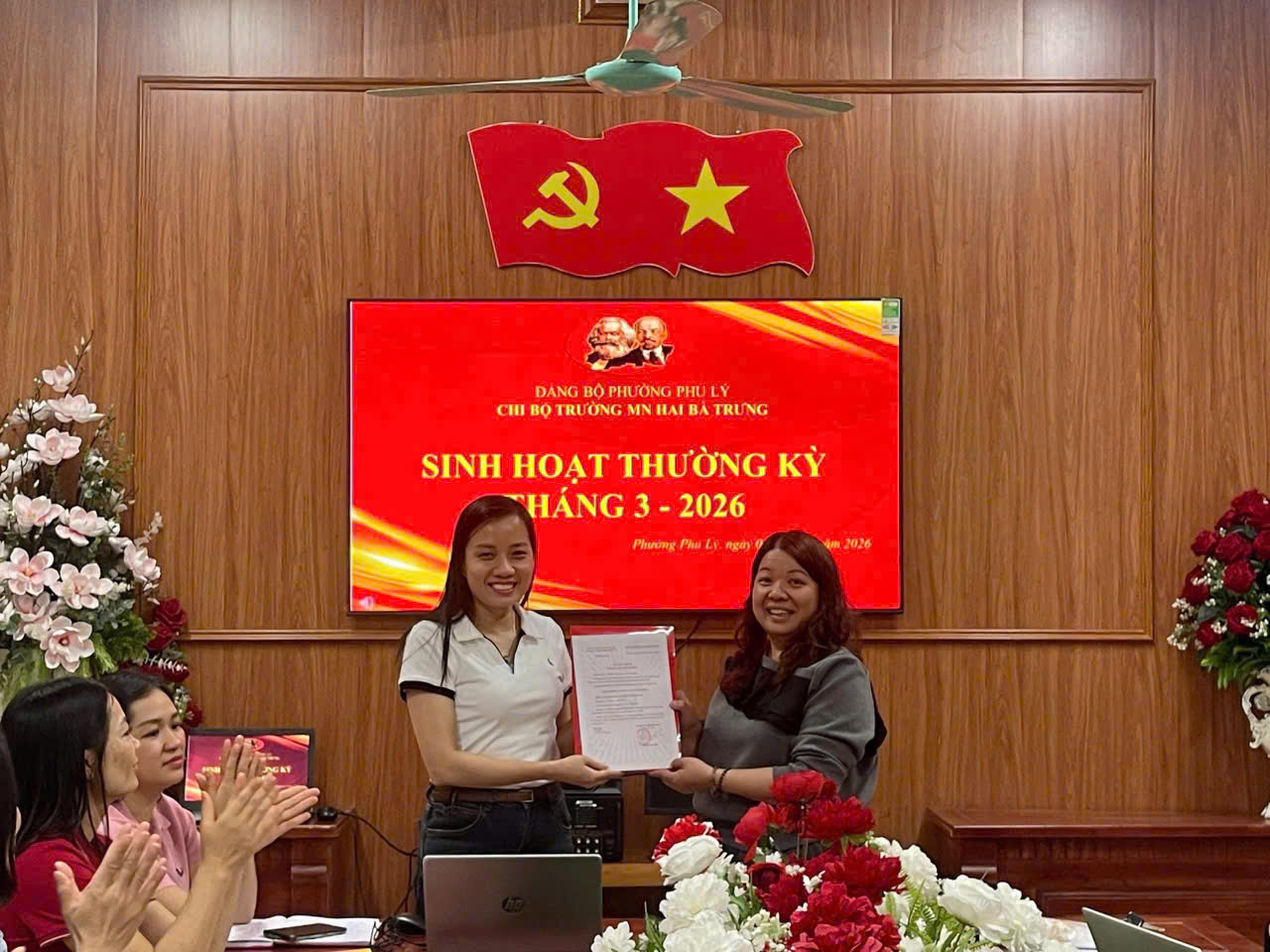 . Buổi sinh hoạt đã diễn ra nghiêm túc, đúng quy định, thông qua buổi sinh hoạt không chỉ đánh giá công tác tháng 2 mà còn kết hợp trao Quyết định công nhận Đảng viên chính thức cho đồng chí: Nguyễn Thị Bích Loan đảng viên dự bị. Đây là dấu mốc quan trọng, ghi nhận quá trình rèn luyện, phấn đấu và trưởng thành trong hàng ngũ của Đảng. Chúc đồng chí tiếp tục phát huy tinh thần tiên phong, gương mẫu, hoàn thành xuất sắc nhiệm vụ được giao.