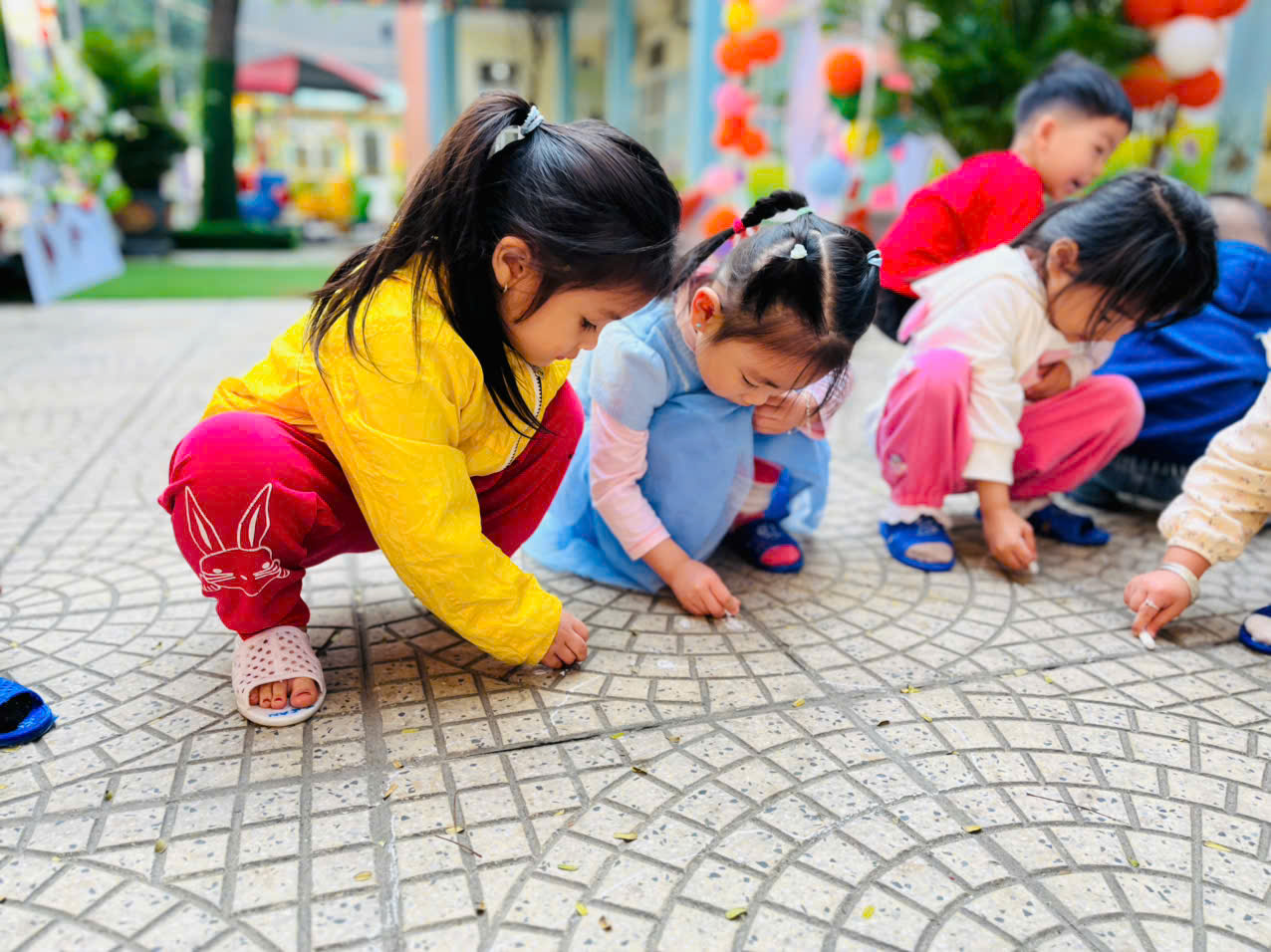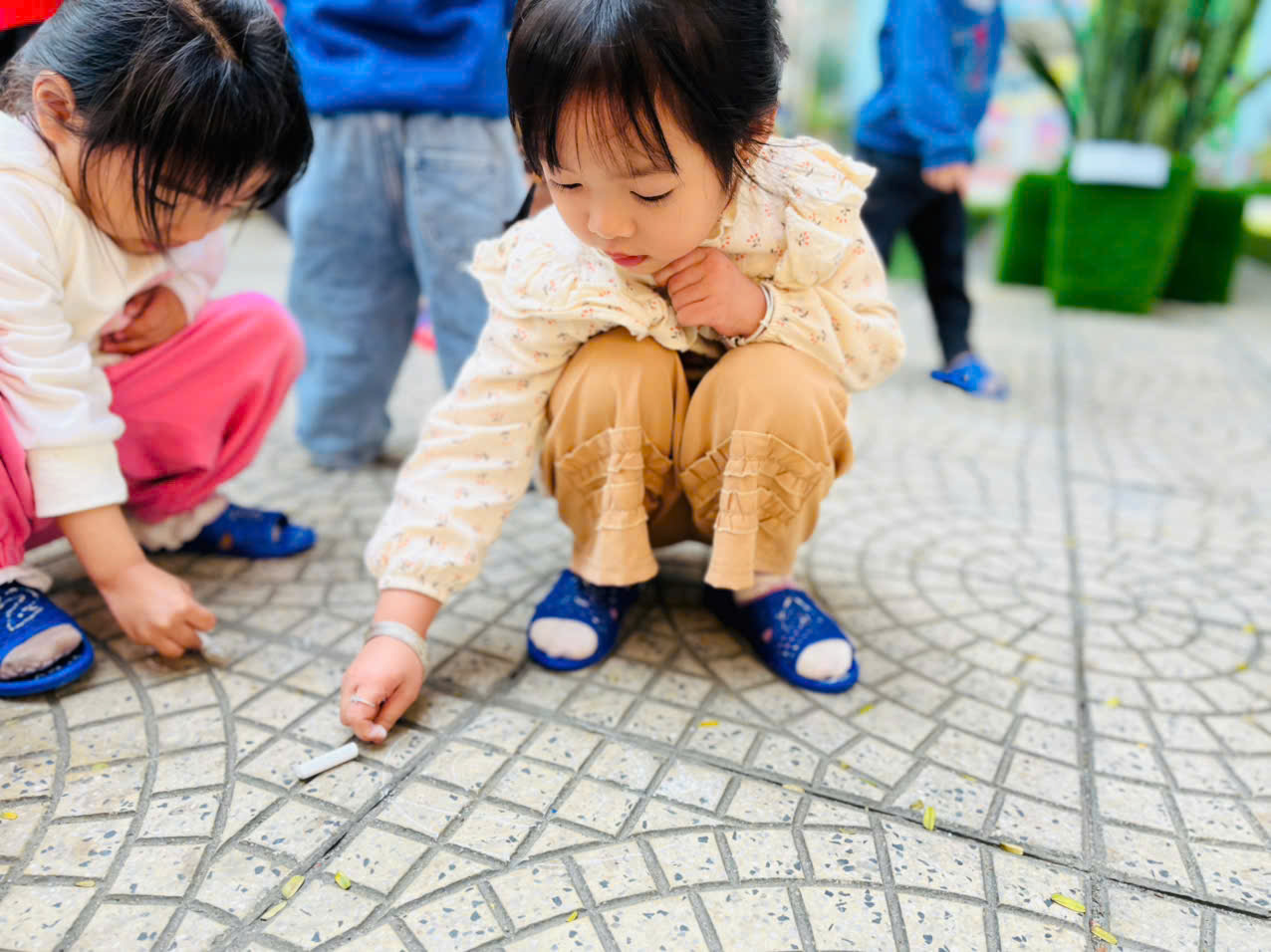 Chơi ngoài trời ngày hôm nay các con lớp B3 đã được :” Vẽ theo ý thích “