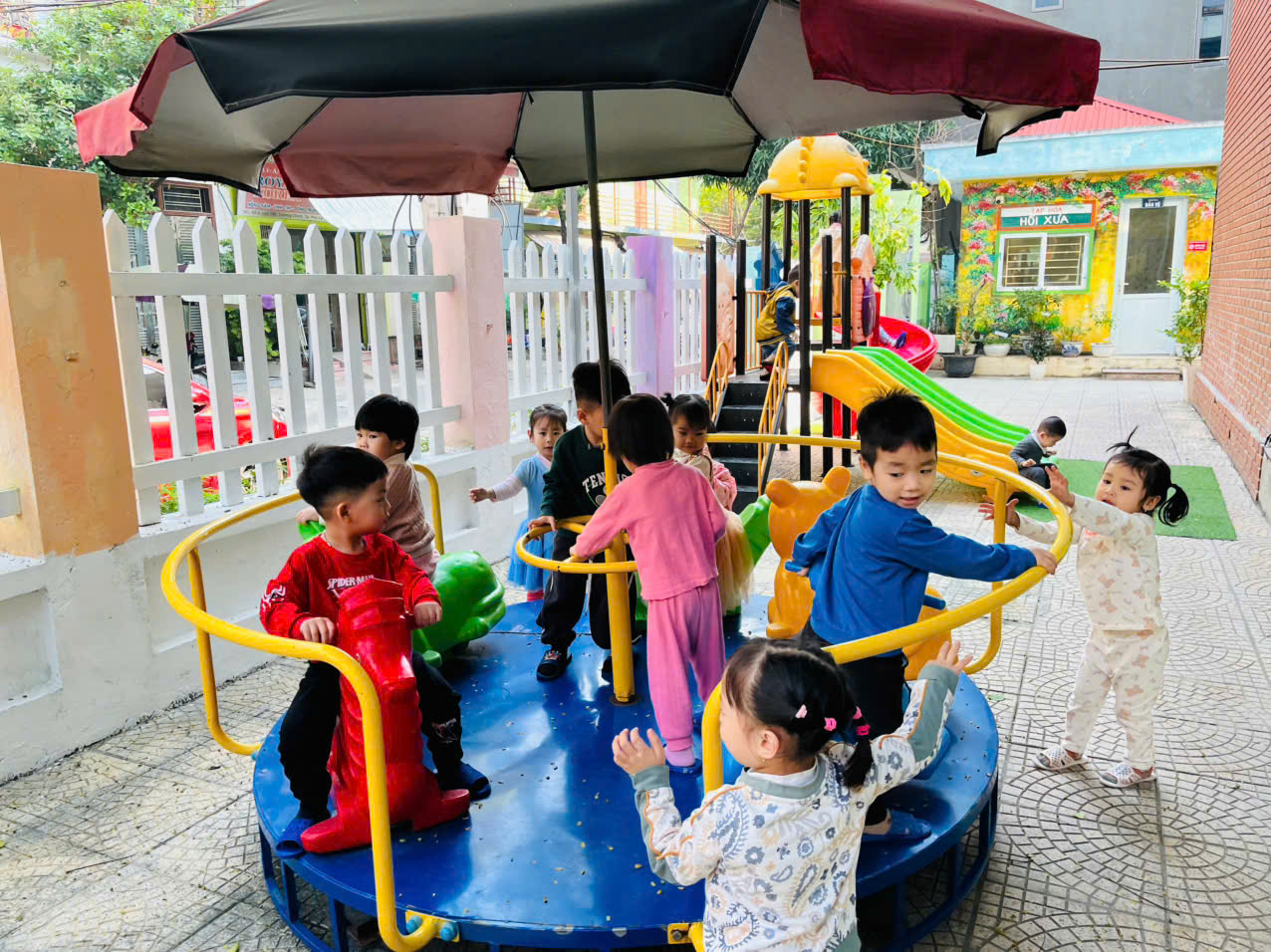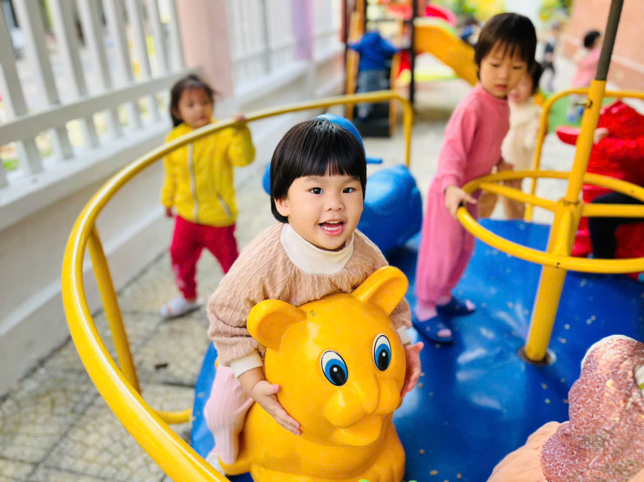 Đến với giờ chơi ngoài trời ngày hôm nay các con lớp B3 đã được :” Vẽ theo ý thích “ của mình và chơi với các đồ chơi ngoài trời.Các con rất vui và thích thú ạ.