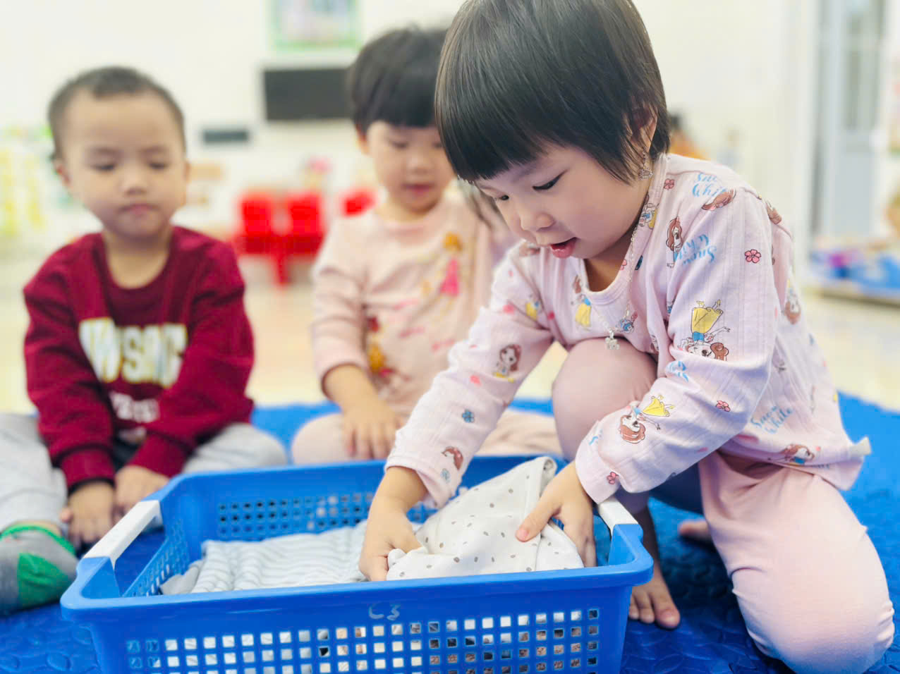 Dạy trẻ kỹ năng gấp quần áo lớp B3