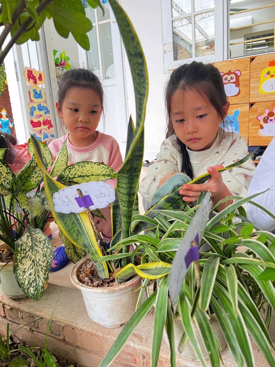 Góc chăm sóc cây xanh – tưới nước, nhổ cỏ, lau lá cho cây.