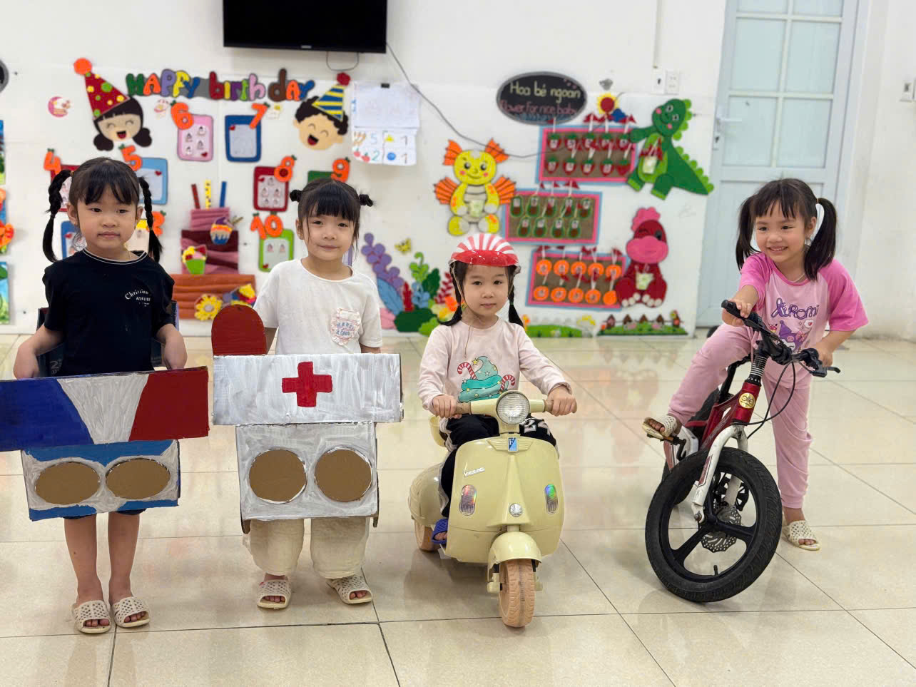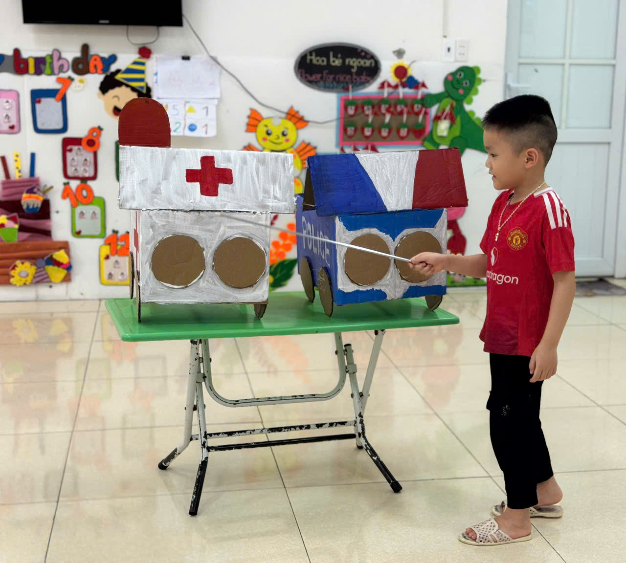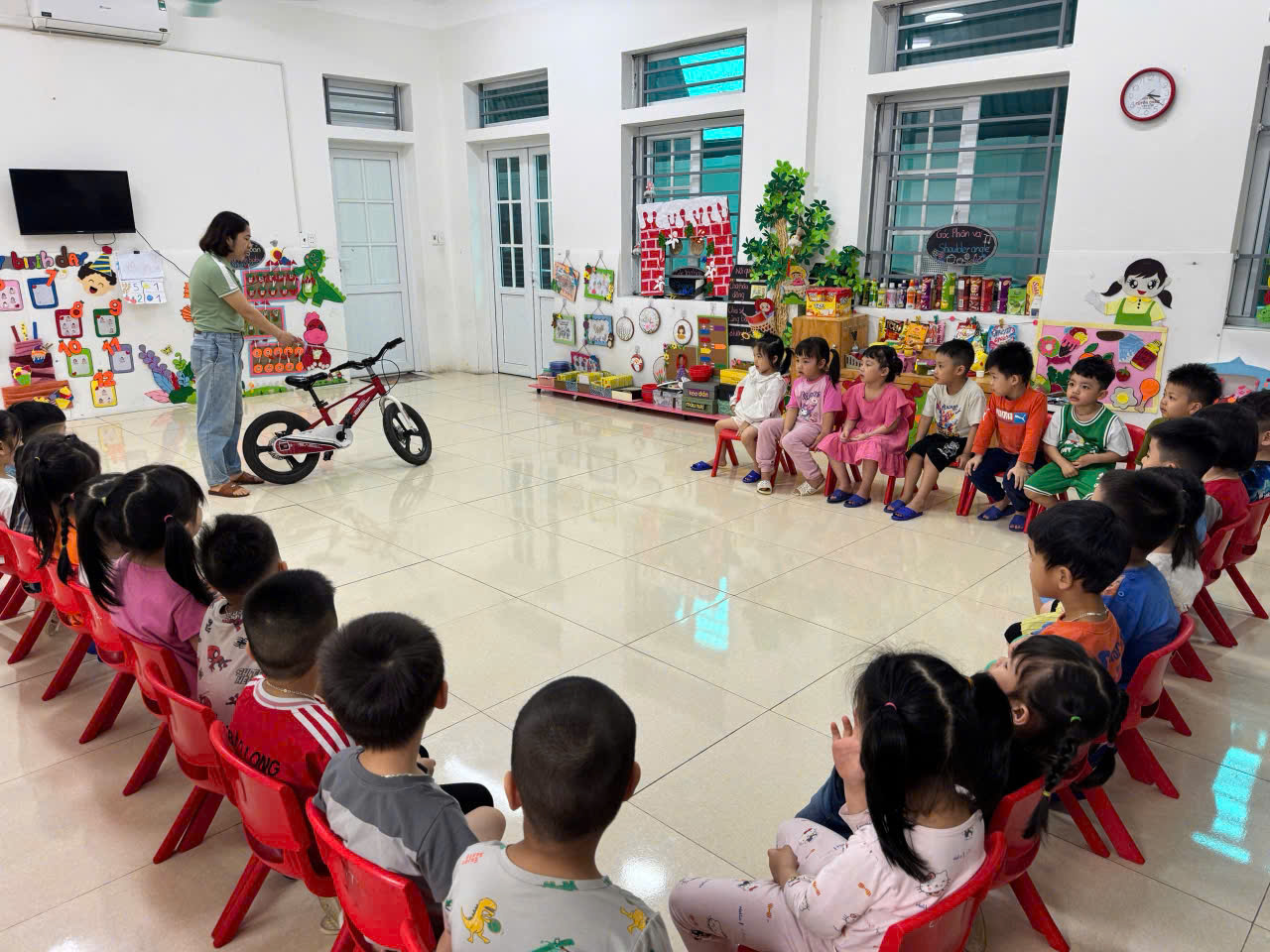 Giờ học khám phá khoa học: “Tìm hiểu về một số phương tiện giao thông đường bộ” của các bạn nhỏ lớp A4