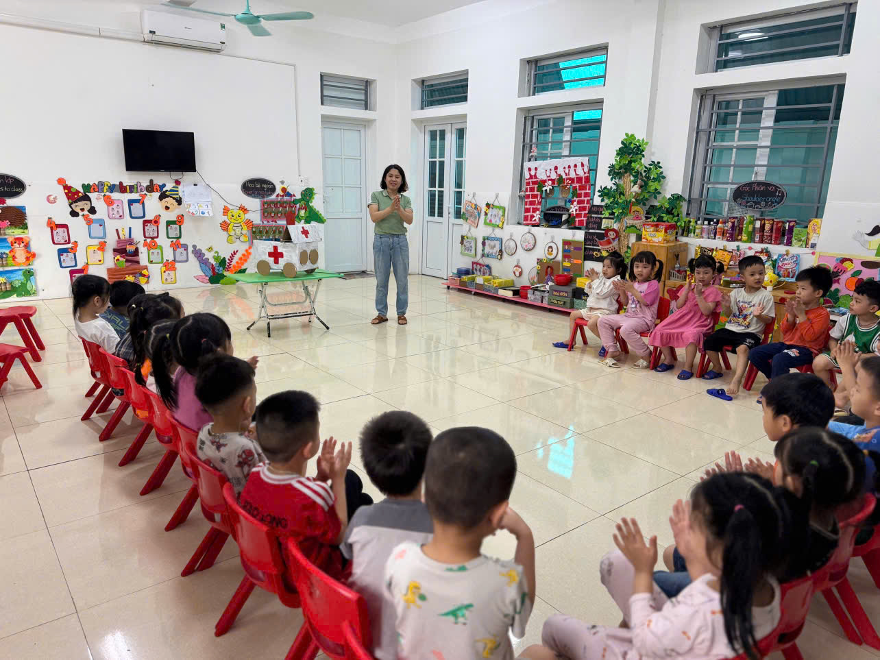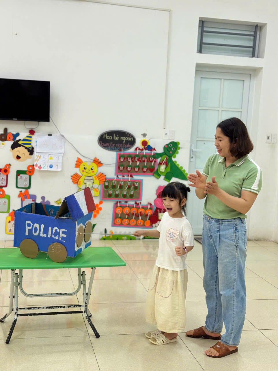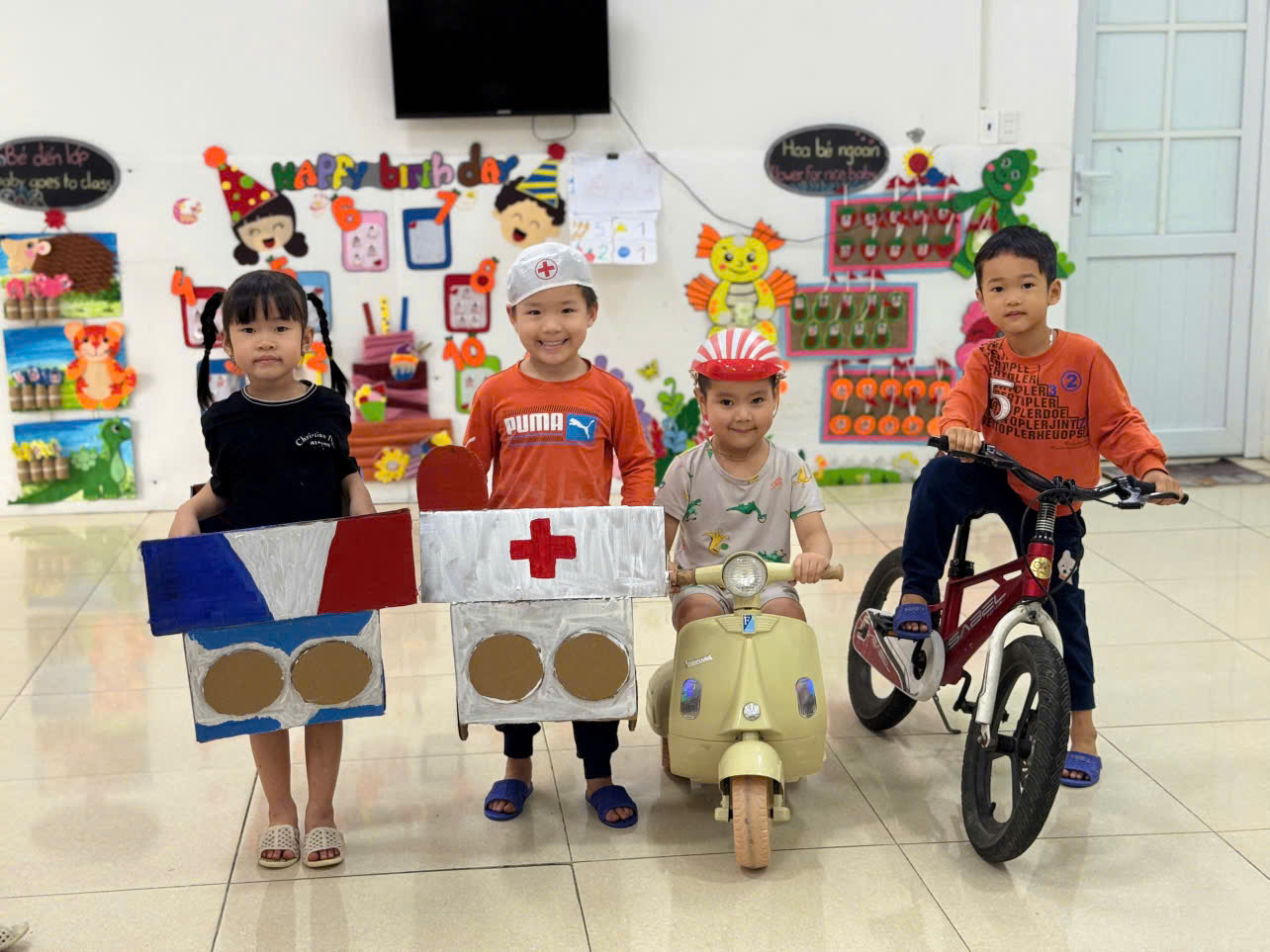 Giờ học khám phá khoa học: “Tìm hiểu về một số phương tiện giao thông đường bộ” của các bạn nhỏ lớp A4