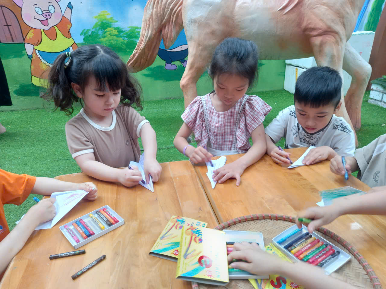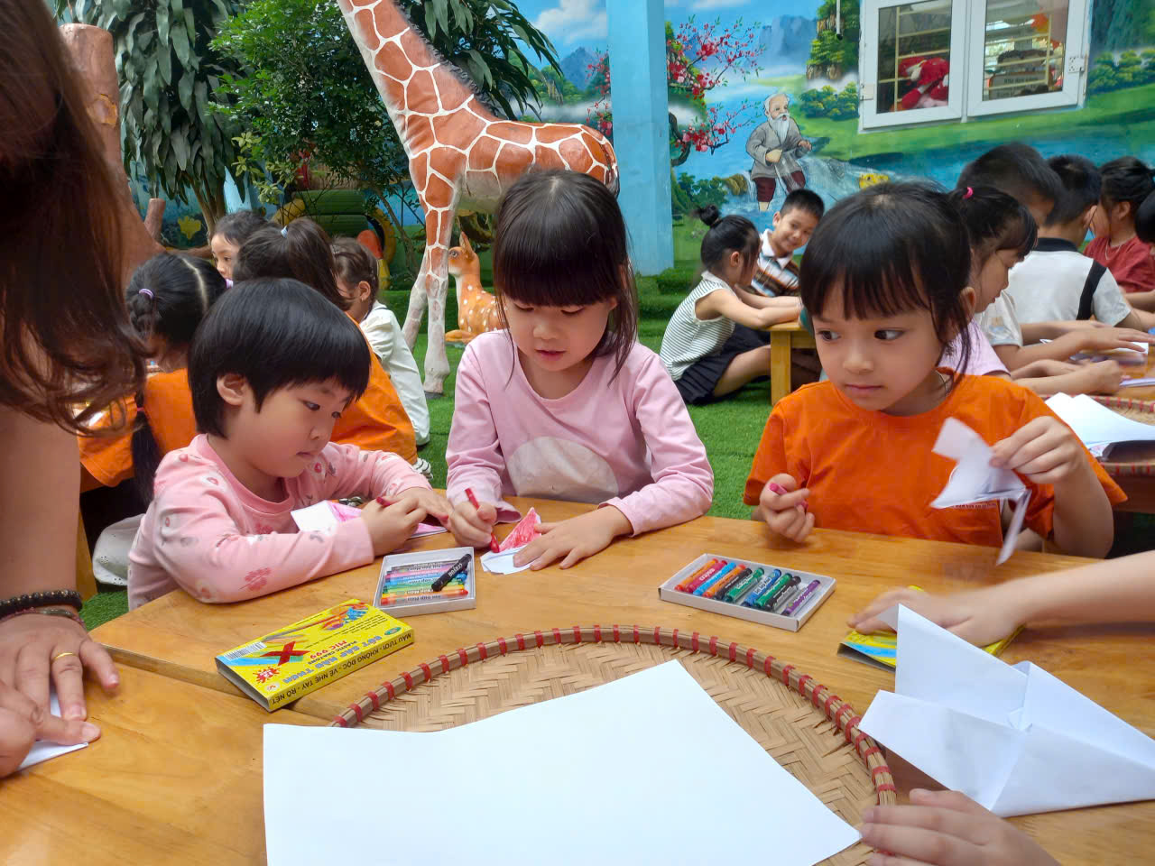 Các con vừa khéo léo gấp máy bay, vừa tìm hiểu thêm về phương tiện giao thông đường hàng không.