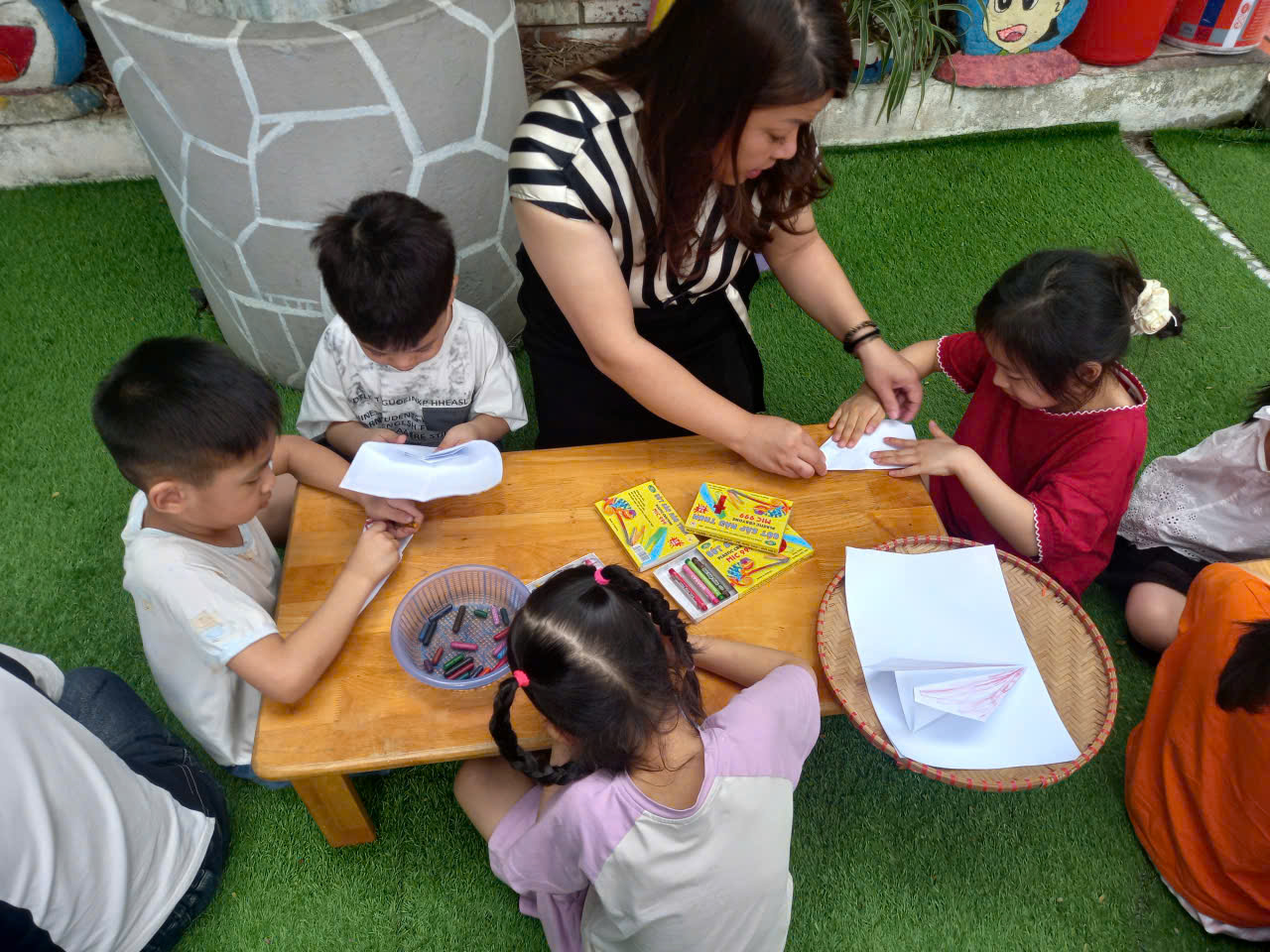 HOẠT ĐỘNG CHƠI NGOÀI TRỜI: BÉ GẤP MÁY BAY