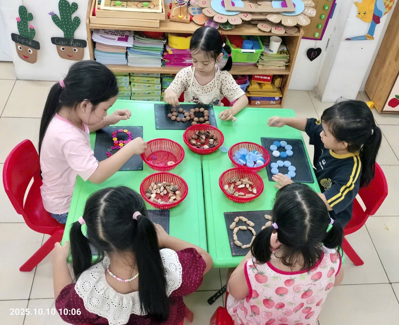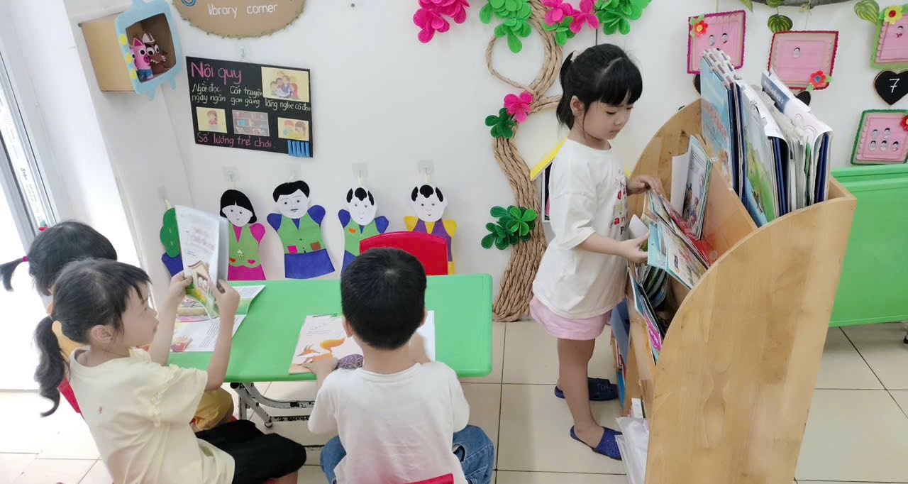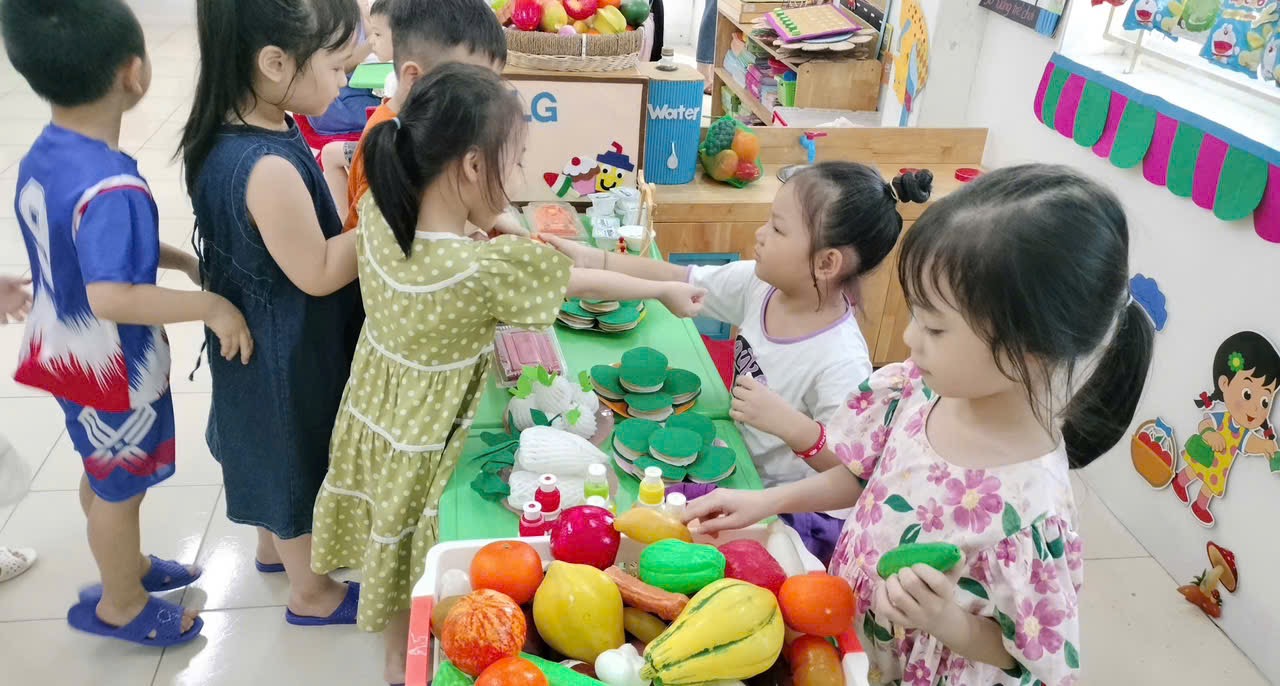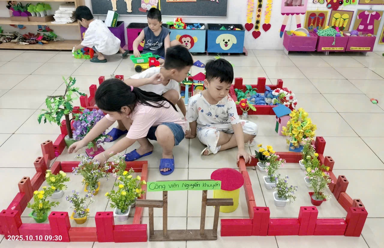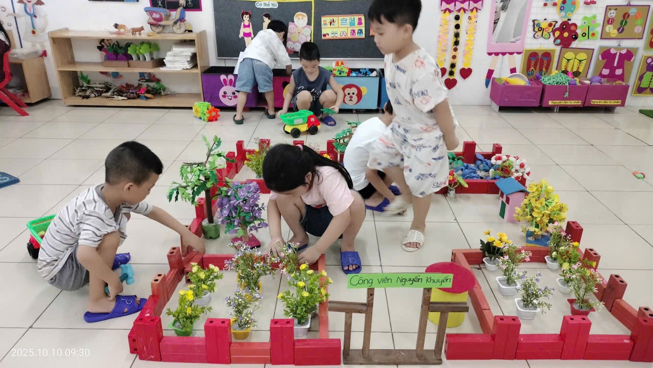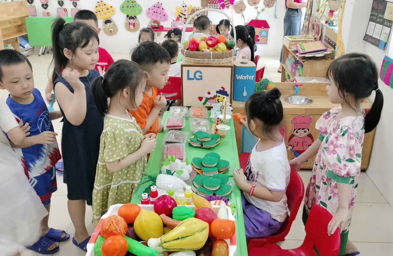 Trong không khí vui tươi của buổi học, các con lớp A5 hào hứng tham gia hoạt động. Tại các góc chơi, các con được tự do thể hiện khả năng sáng tạo, giao tiếp và hợp tác với bạn bè.