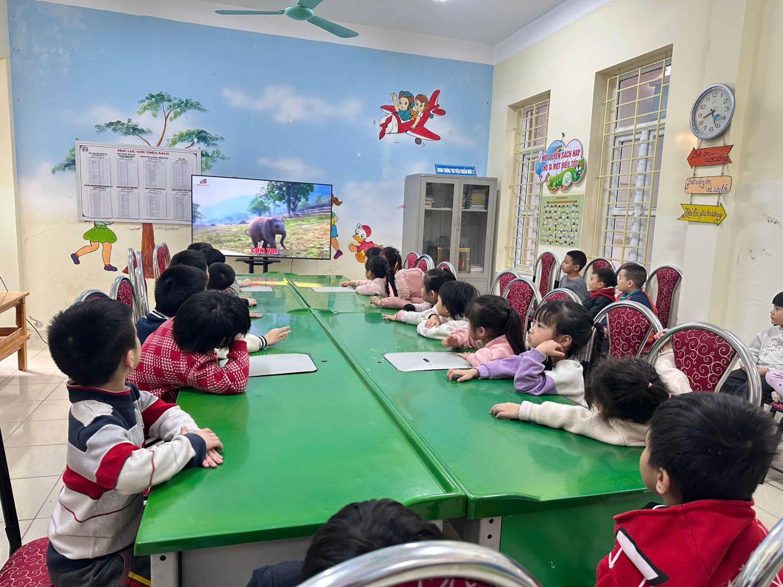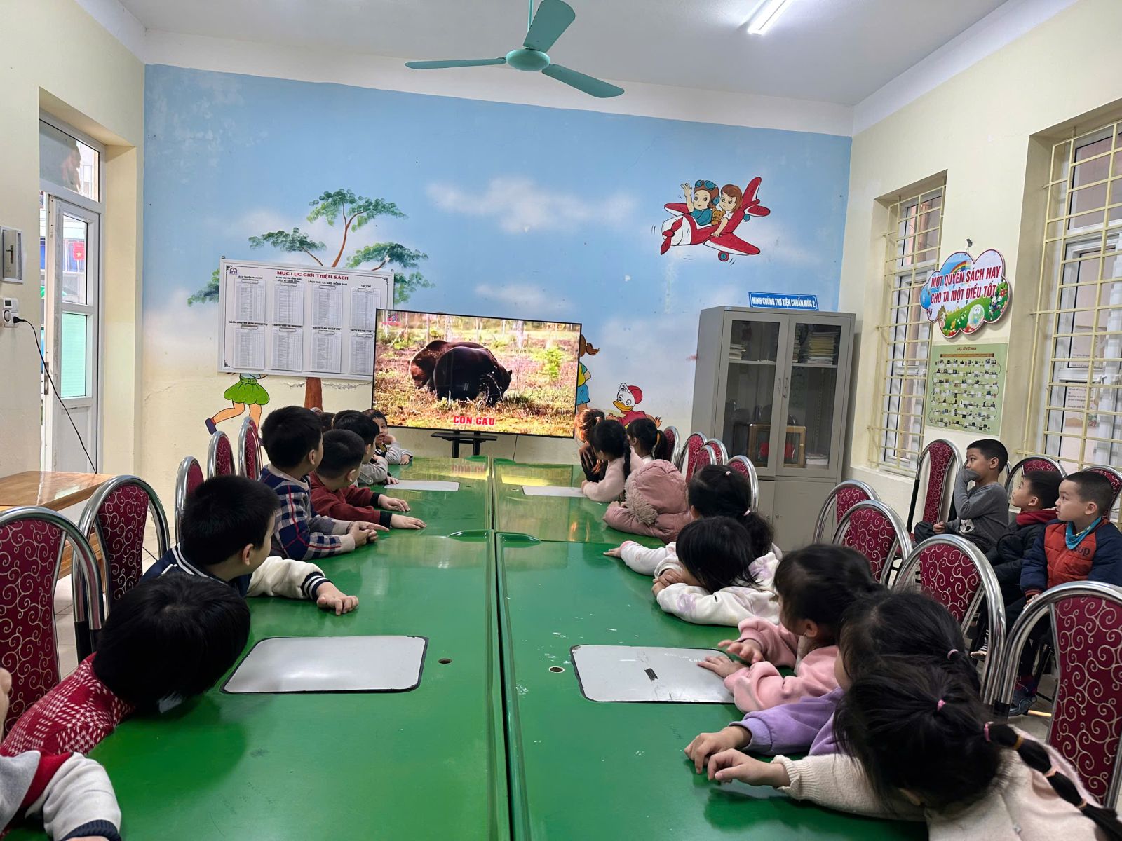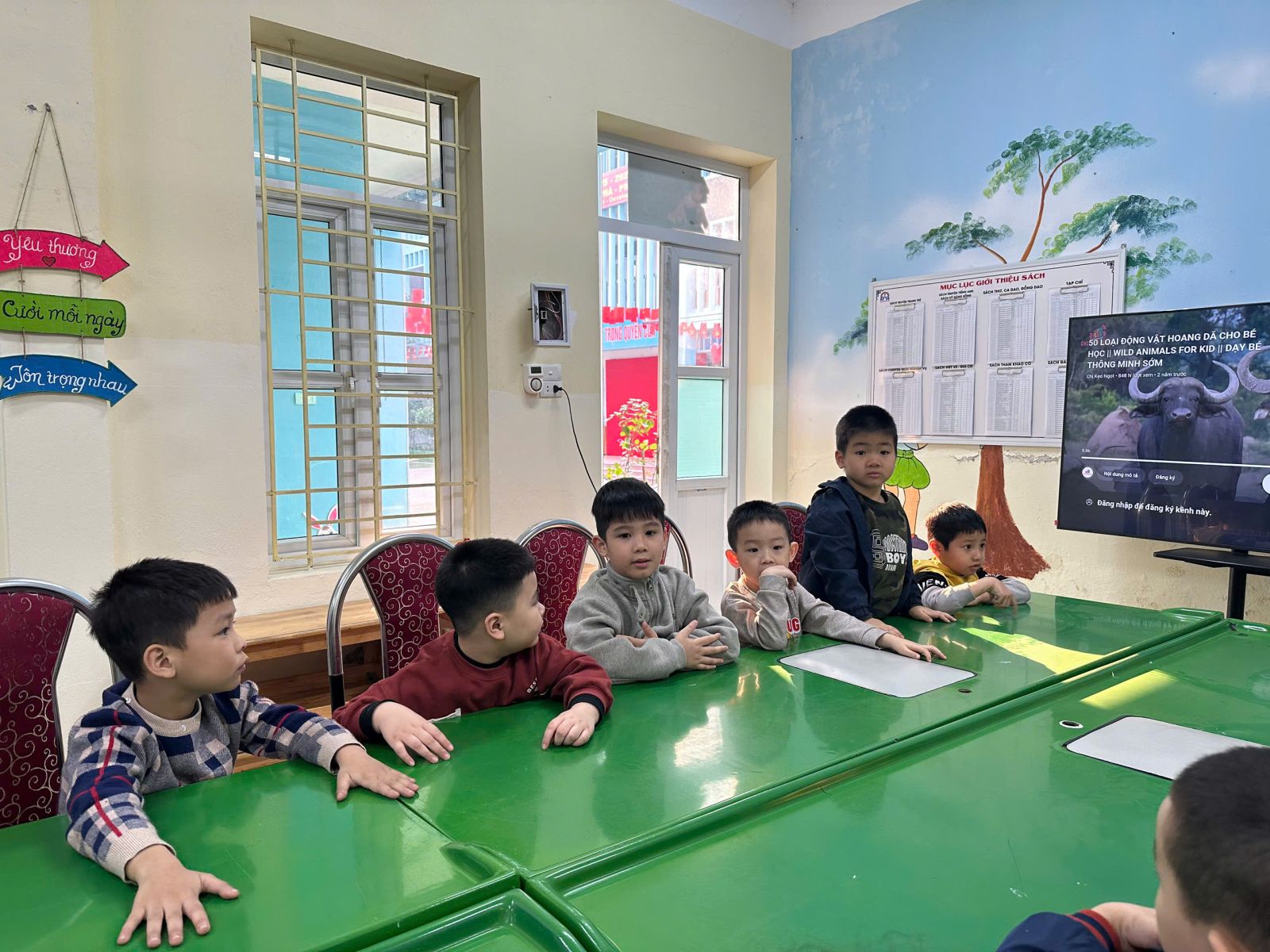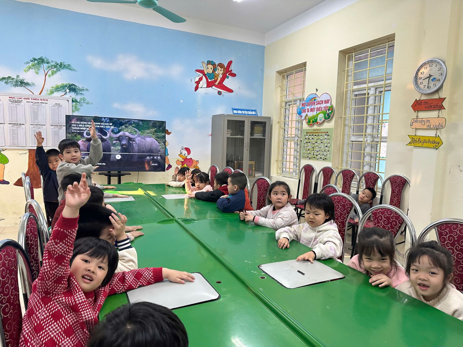 Hoạt động khám phá môi trường xung quanh với chủ đề Động vật sống trong rừng giúp trẻ 5–6 tuổi phát triển toàn diện về nhận thức, ngôn ngữ, tình cảm – xã hội, tư duy và thẩm mỹ, đồng thời nuôi dưỡng tình yêu thiên nhiên và ý thức bảo vệ môi trường ngay từ những năm đầu đời. Và ngày hôm nay các con lớp B5 đã được học làm quen với các con vật sống trong rừng thông qua màn hình nhỏ, các con đã được biết tên, biết các đặc điểm nhận dạng, được trò chuyện và trao đổi với nhau thông