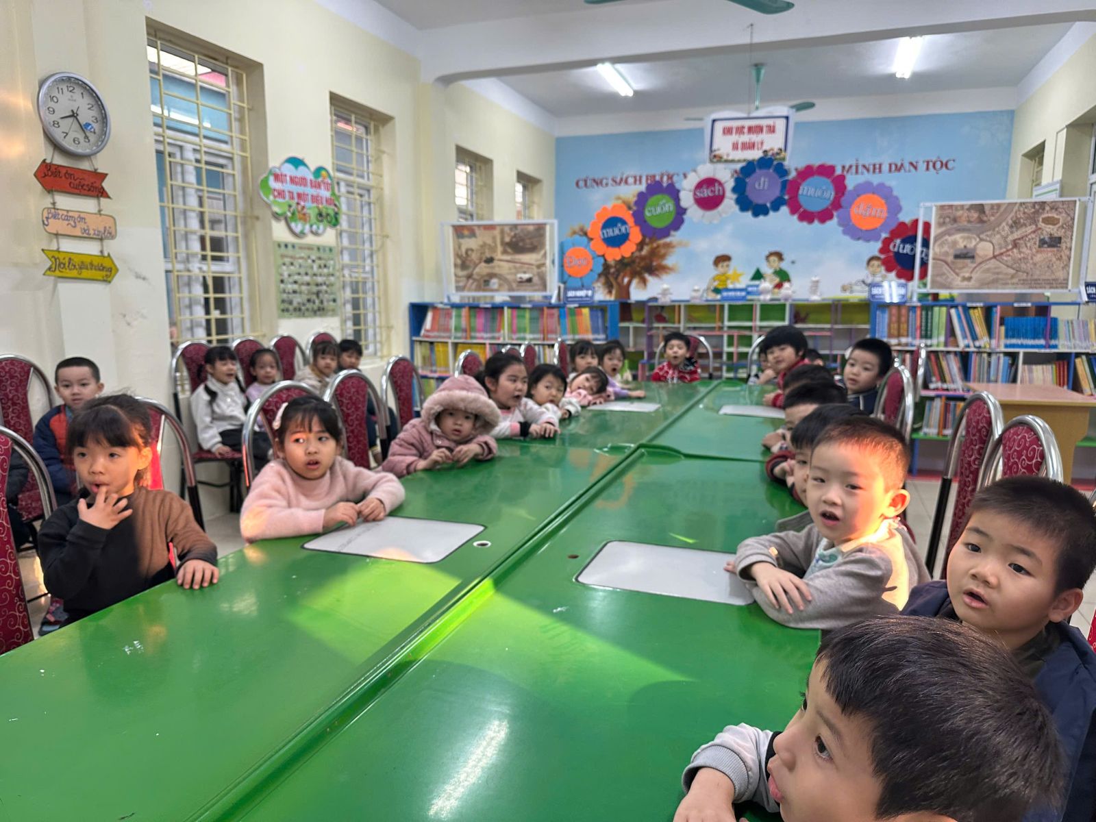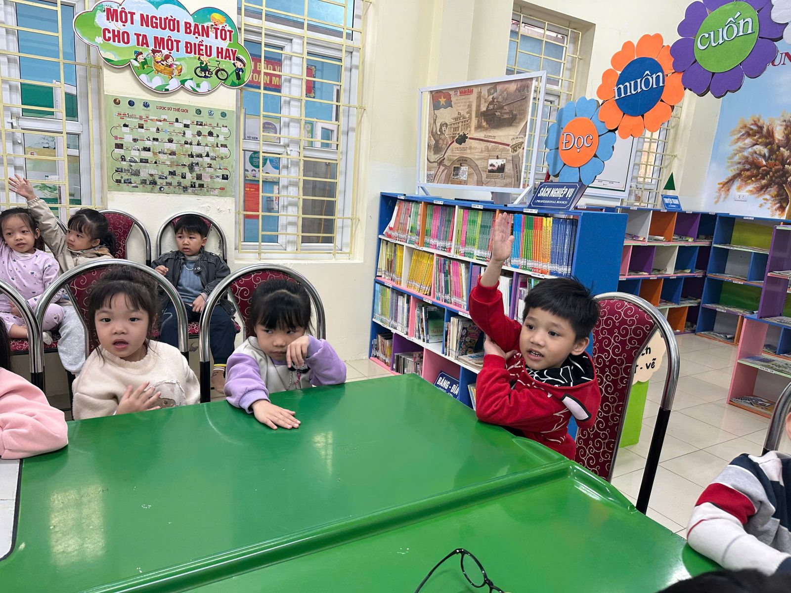 Hoạt động khám phá môi trường xung quanh với chủ đề Động vật sống trong rừng tại phòng học thư viện Lớp B5