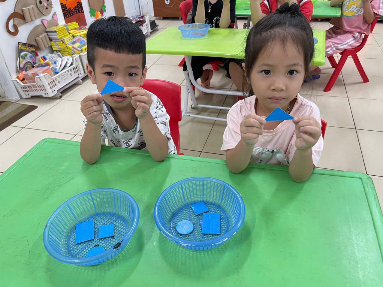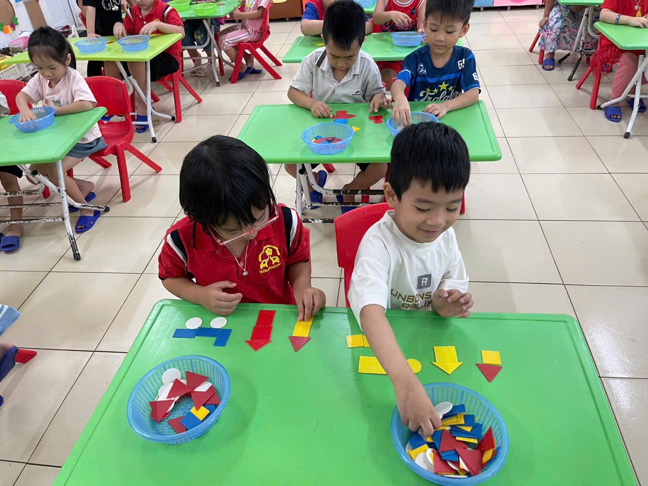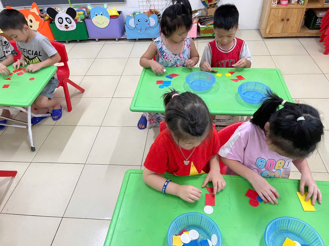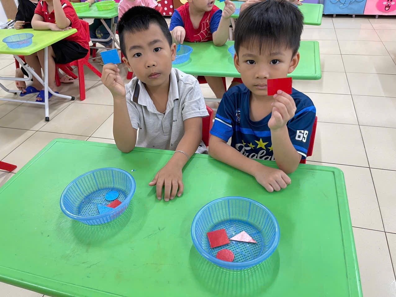 Thông qua hoạt động không chỉ giúp trẻ nhận biết và gọi đúng tên, biết đặc điểm của các hình cơ bản, biết phân biệt và so sánh các hình khác nhau theo đặc điểm, kích thước, màu sắc… mà còn giúp trẻ có kỹ năng