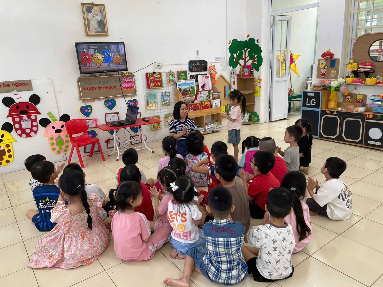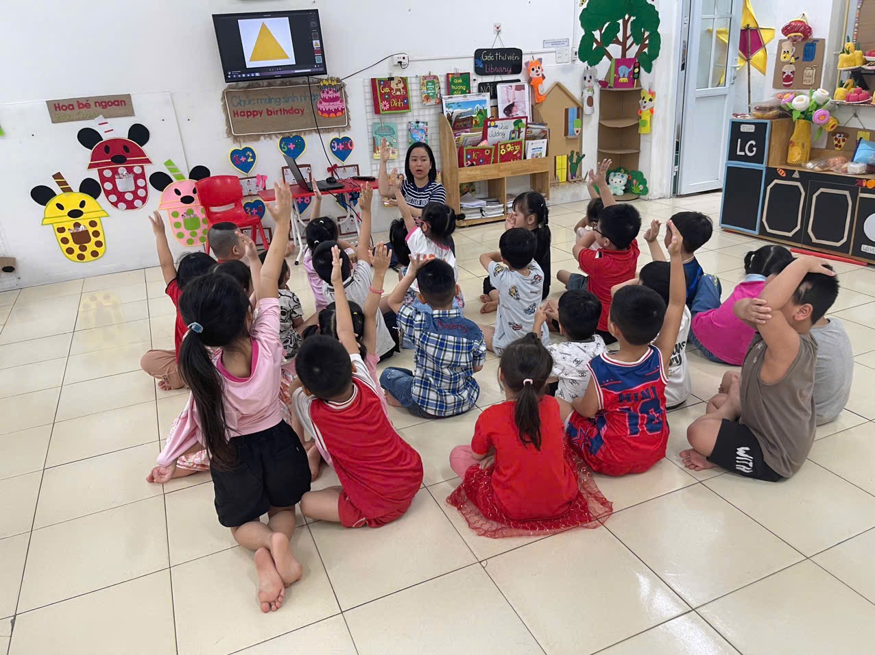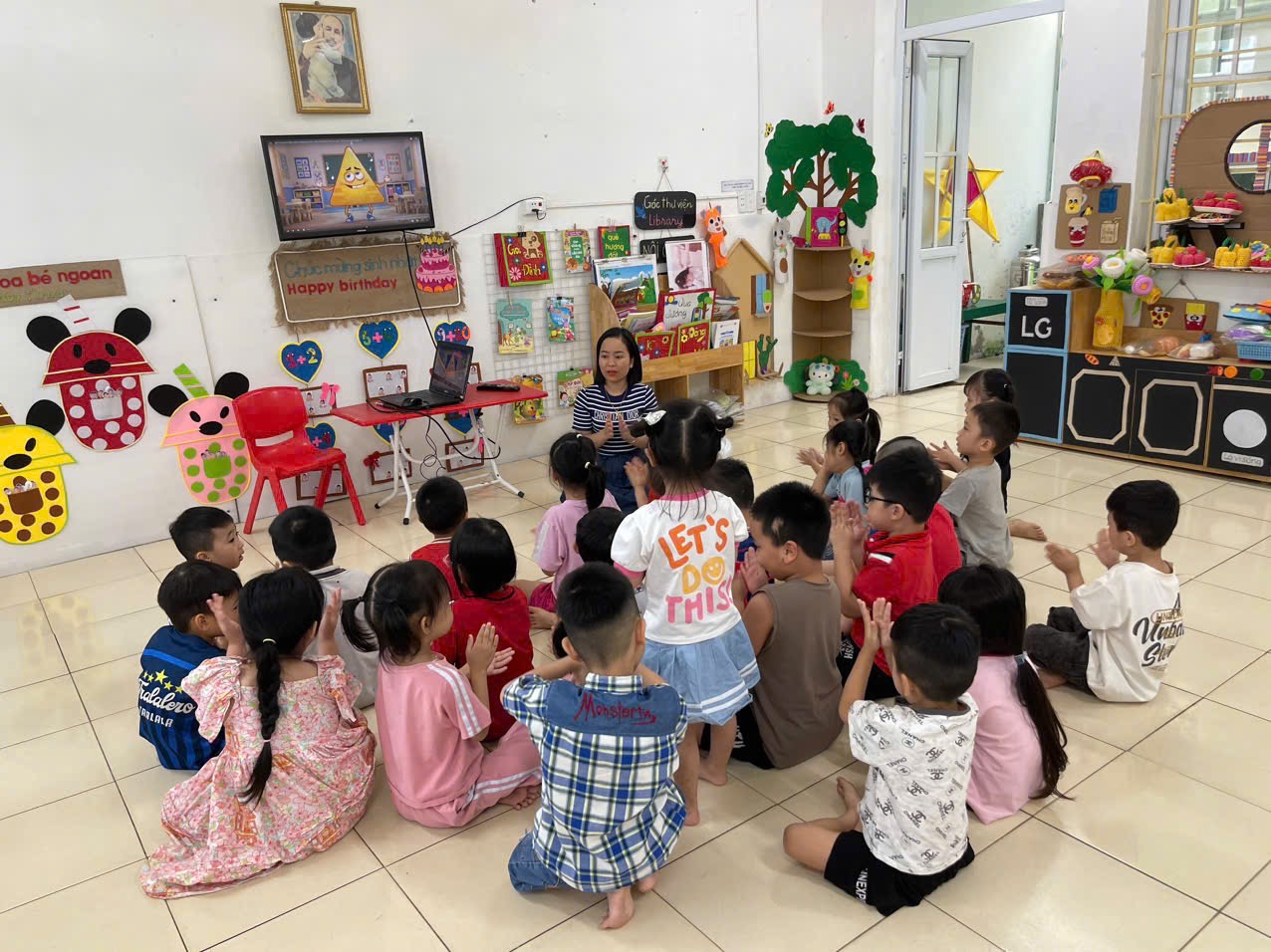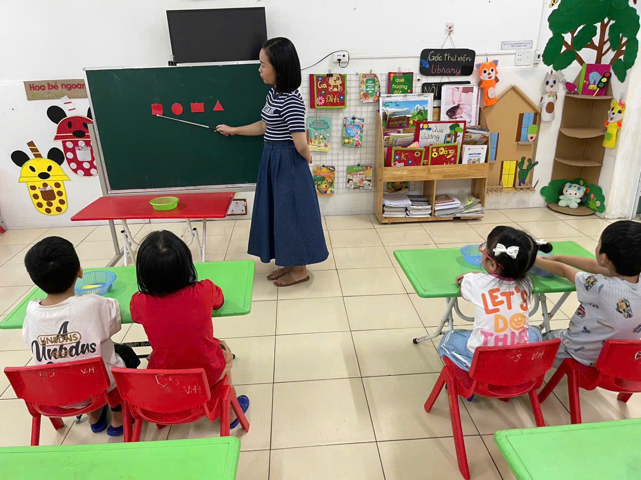 Hoạt động LQVT: Nhận biết, phân loại các hình: hình tròn, hình vuông, hình chữ nhật, hình tam giác. Thông qua hoạt động không chỉ giúp trẻ nhận biết và gọi đúng tên, biết đặc điểm của các hình cơ bản, biết phân biệt và so sánh các hình khác