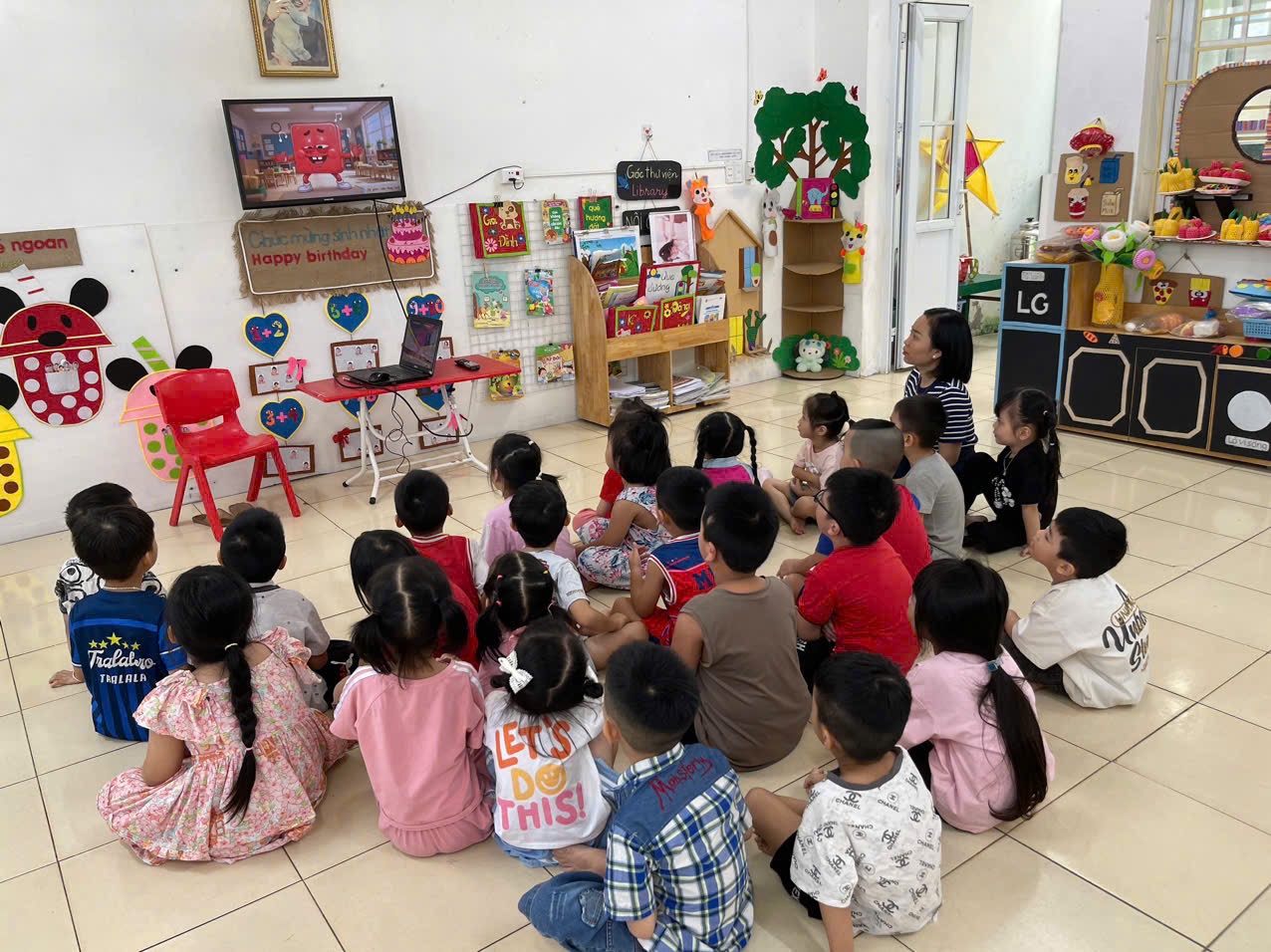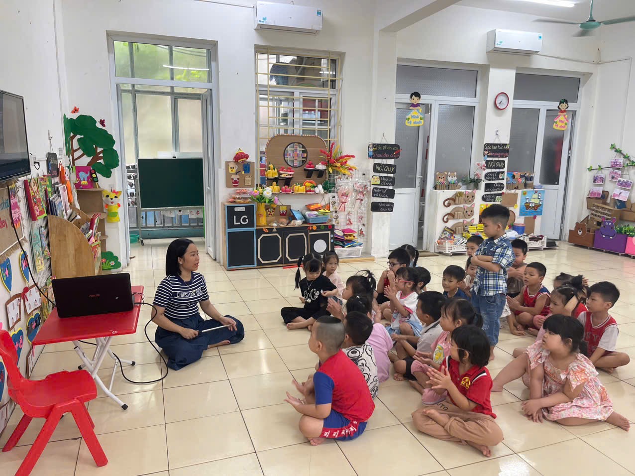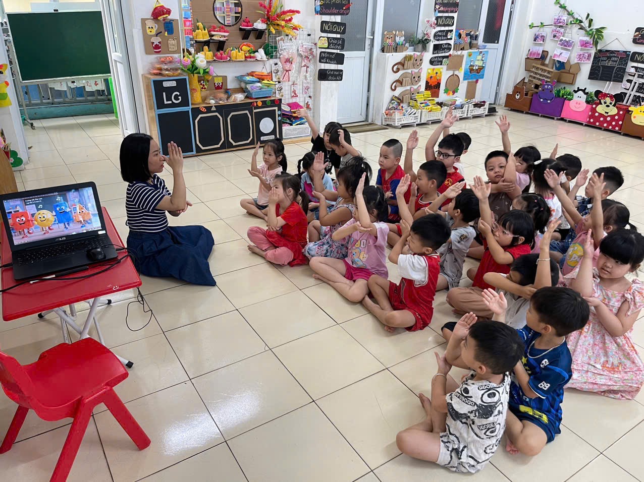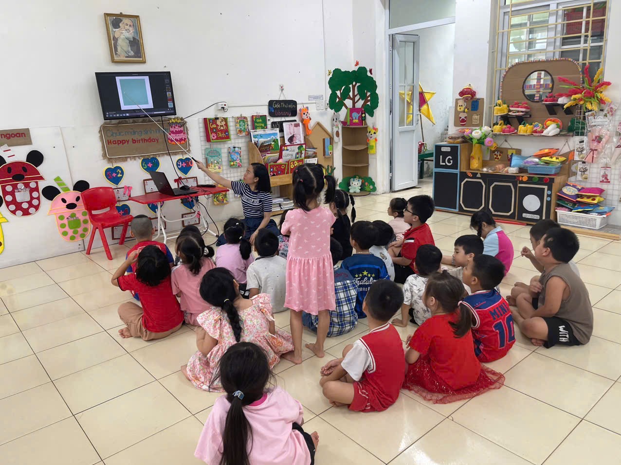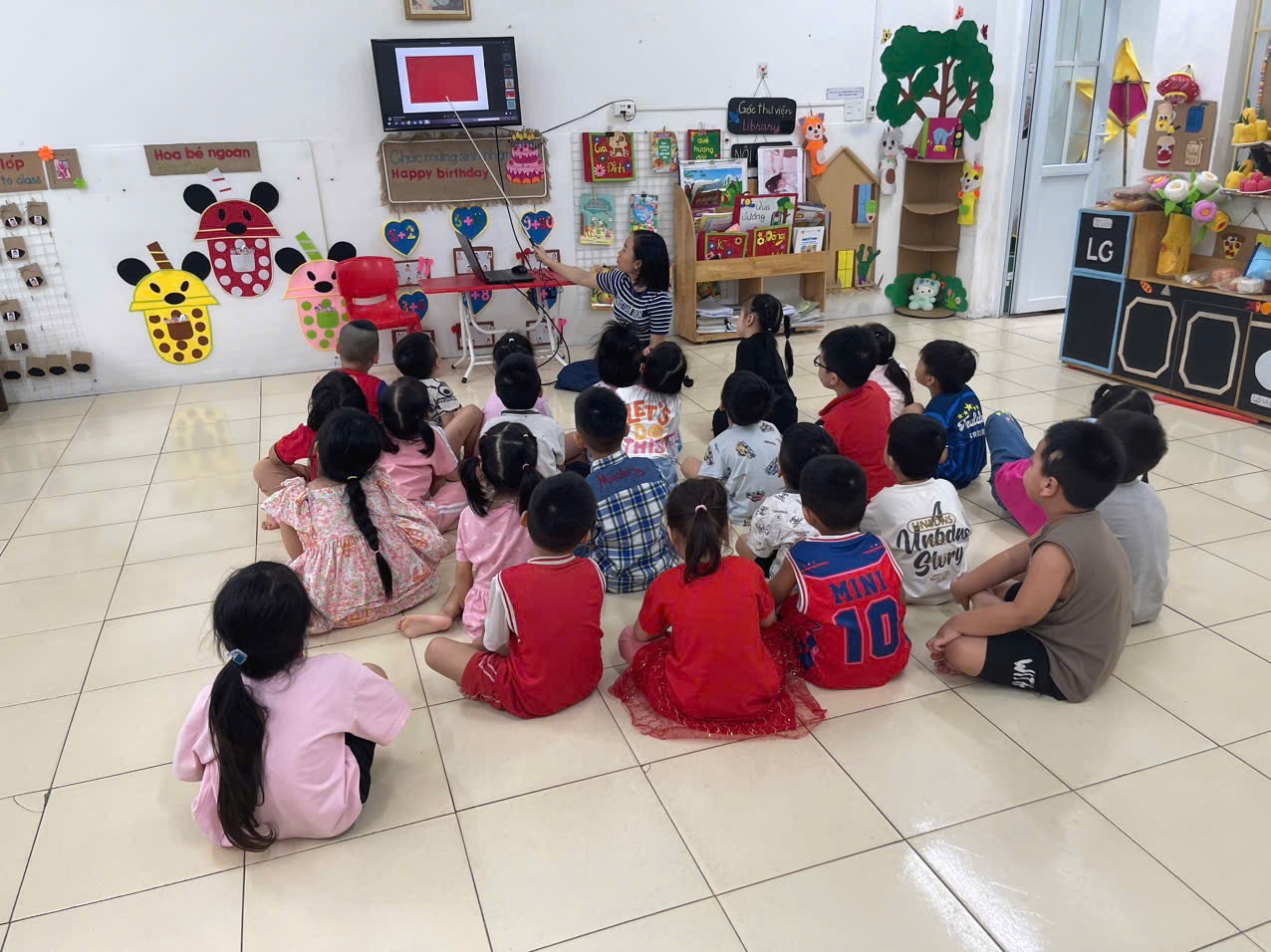 Hoạt động LQVT: Nhận biết, phân loại các hình: hình tròn, hình vuông, hình chữ nhật, hình tam giác. Thông qua hoạt động không chỉ giúp trẻ nhận biết và gọi đúng tên, biết đặc điểm của các hình cơ bản, biết phân biệt và so sánh các hình khác