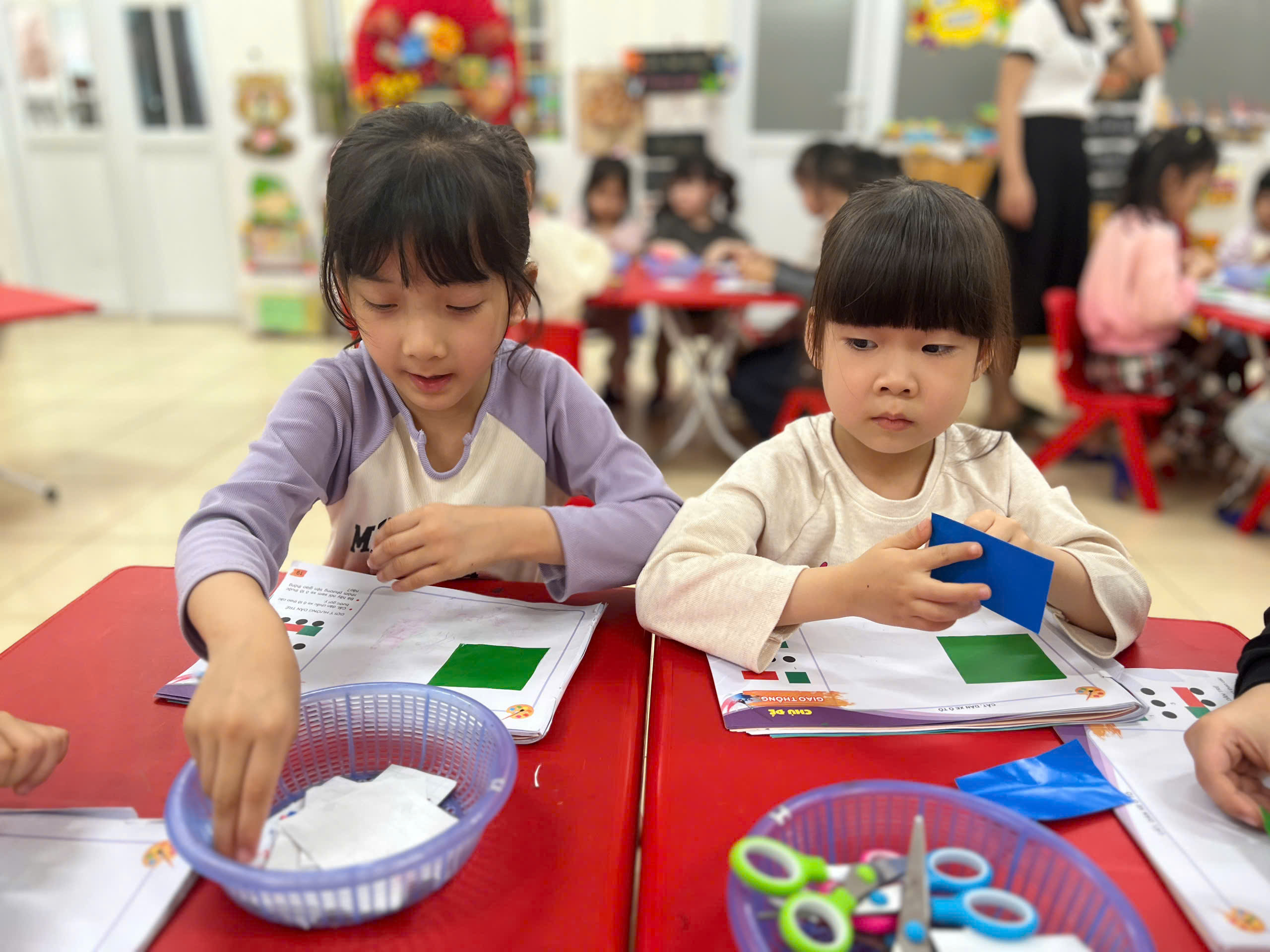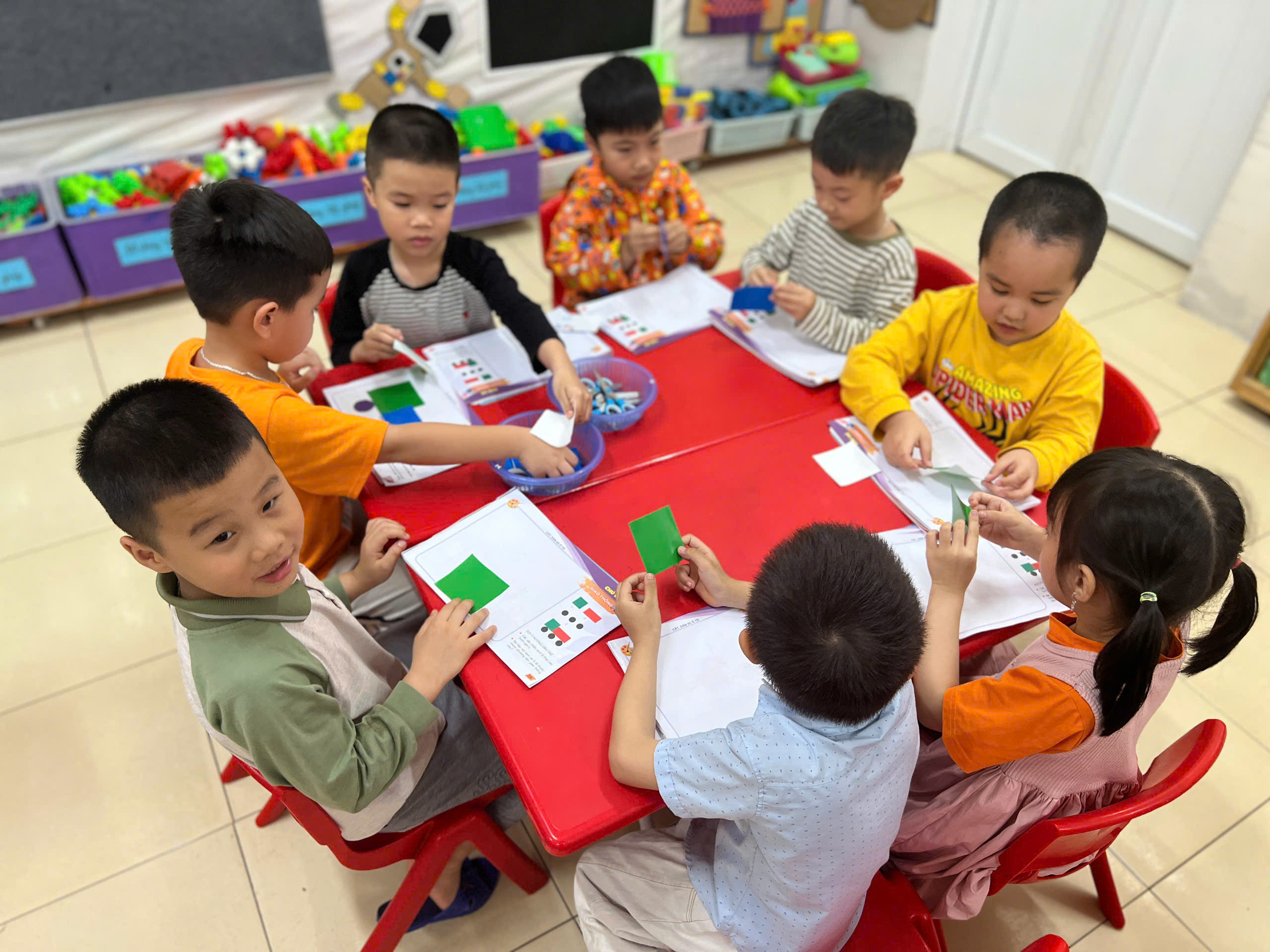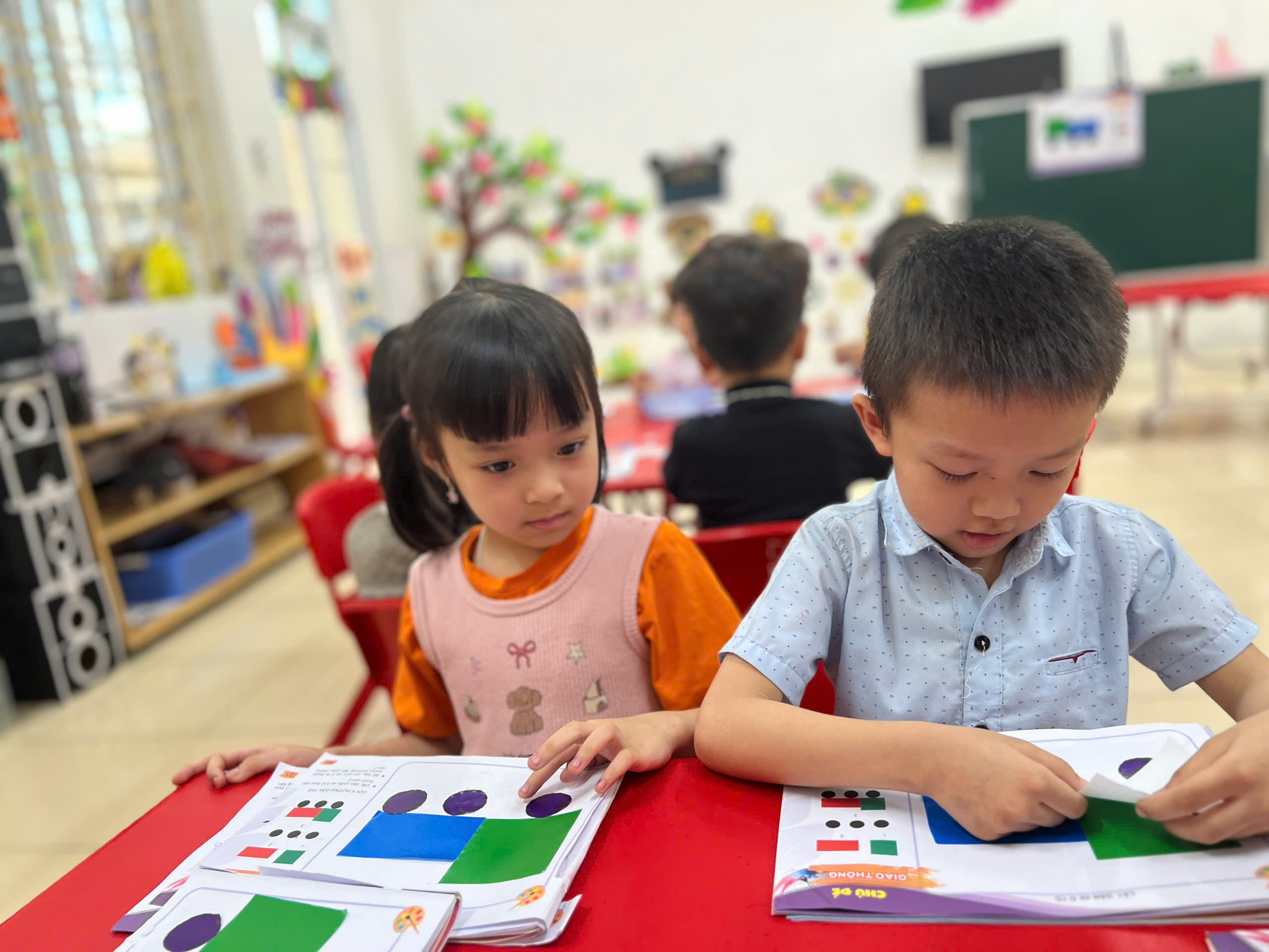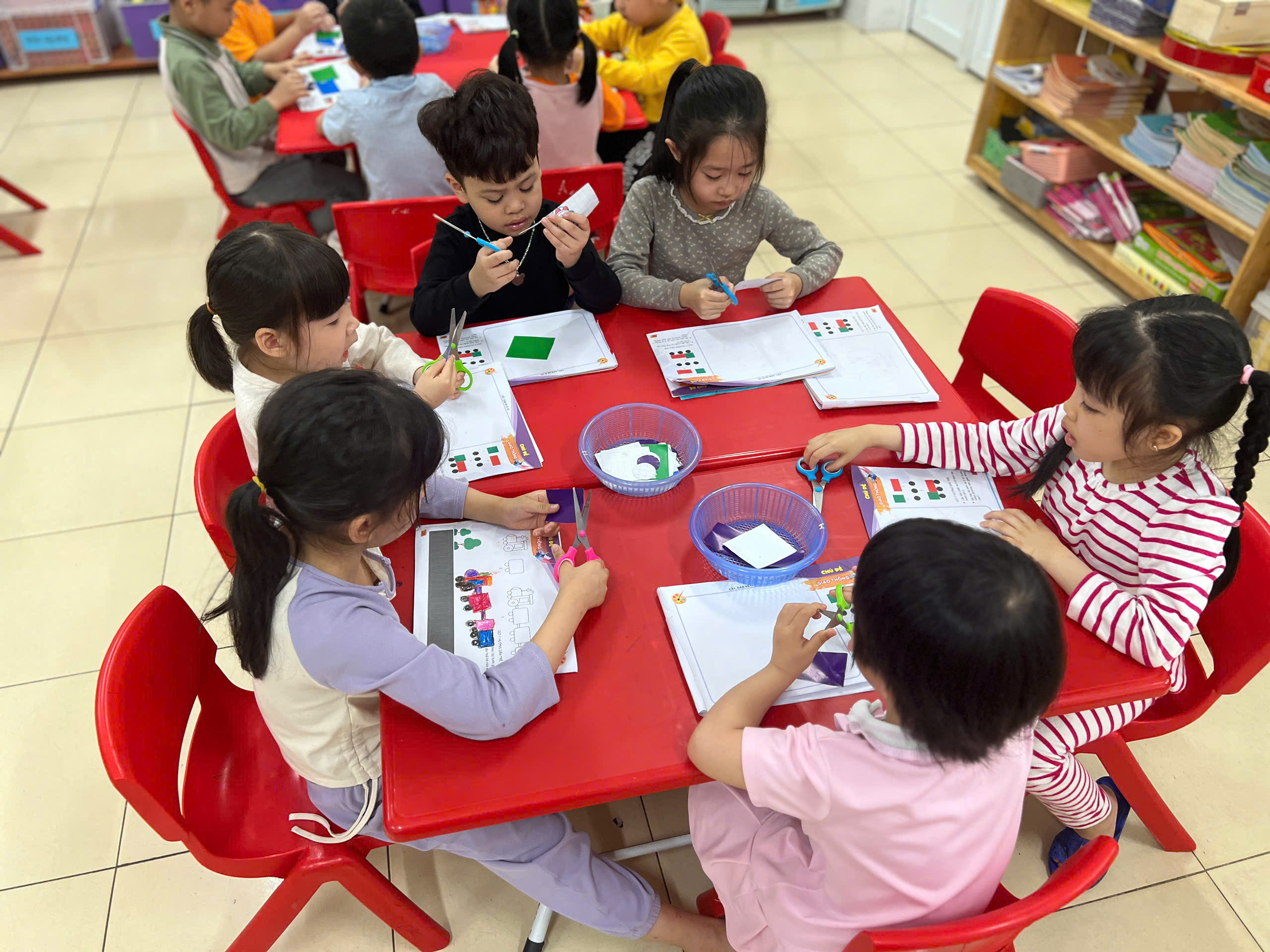 Với những đôi tay khéo léo và những hình đơn giản, các bạn nhỏ đã cắt🔴🟩🔶 dán chiếc ô tô của riêng mình!