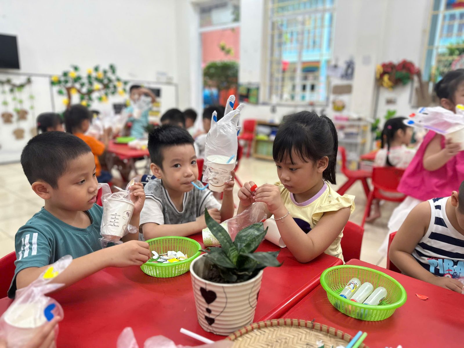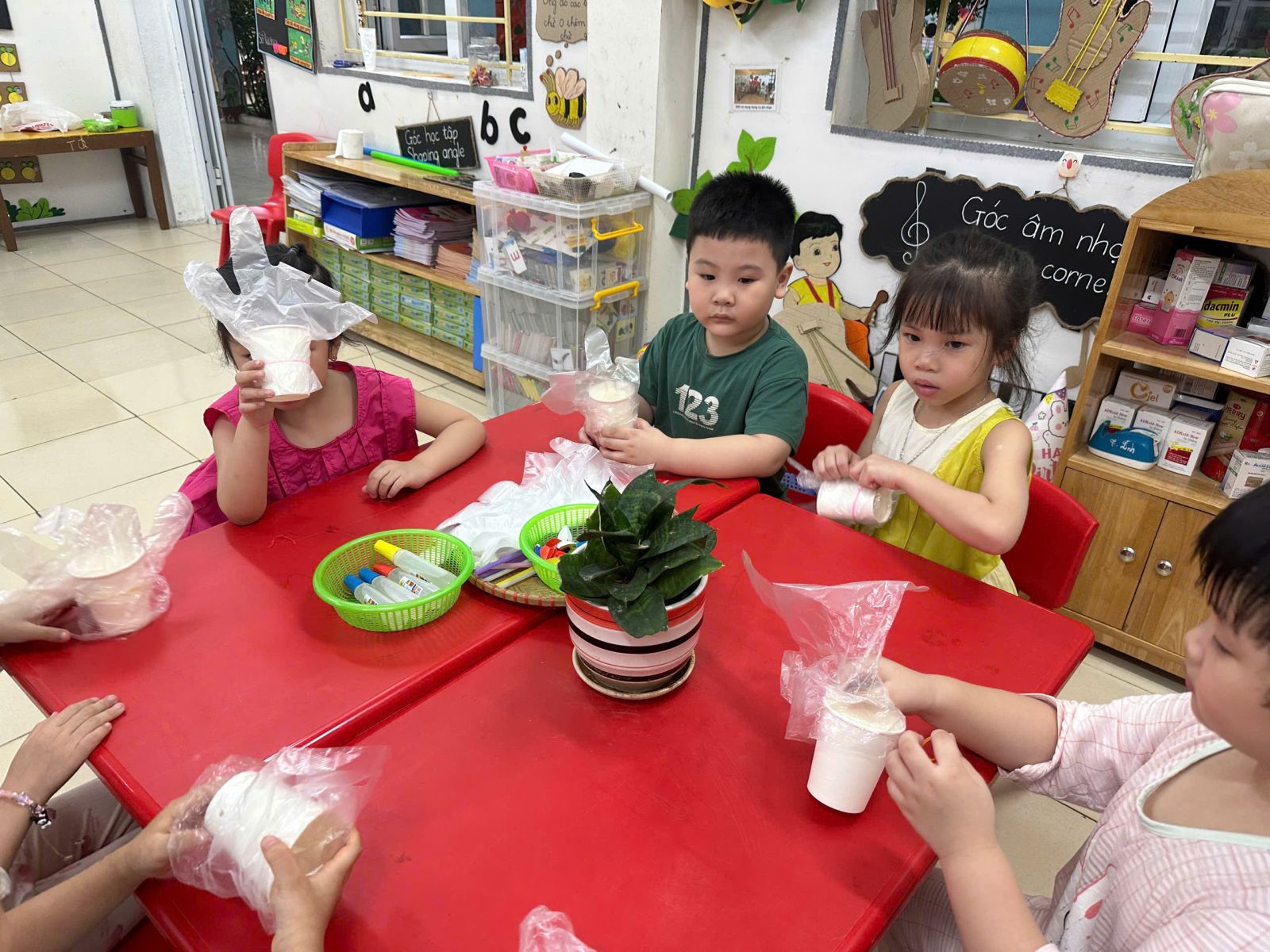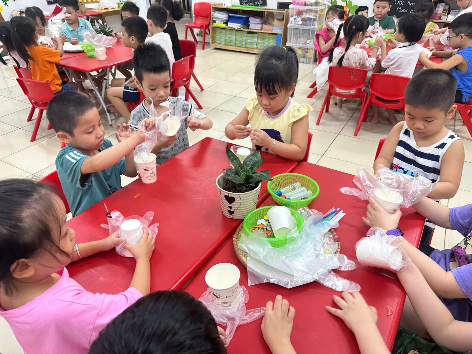 – Với những thao tác đơn giản như, cắt, dán, vẽ các con đã tạo nên 1 sản phẩm sáng tạo trong hoạt động “ tôi tay kì diệu”