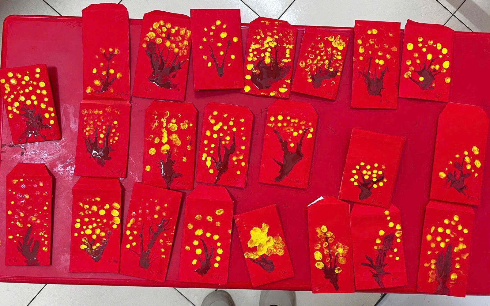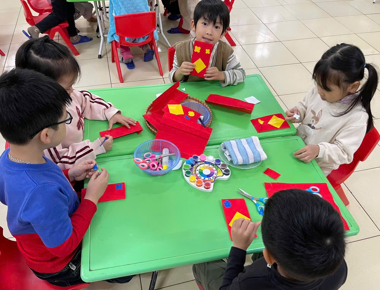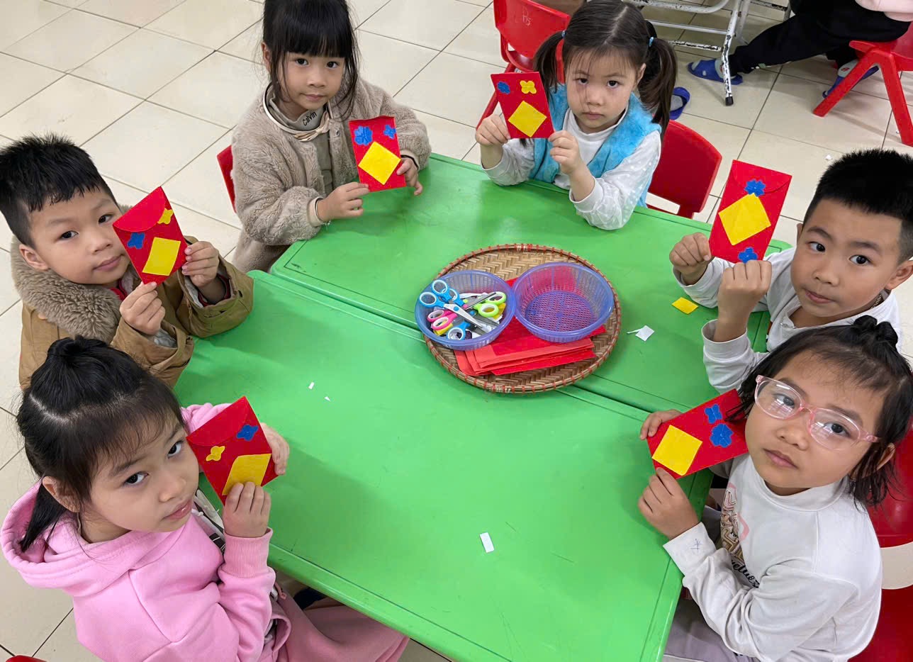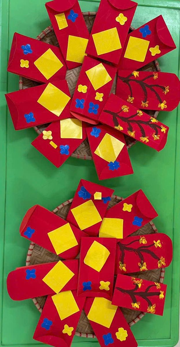 Với đôi bàn tay nhỏ xinh – sáng tạo hết mình các bạn nhỏ đã tạo ra những bao lì xì đỏ thắm mang theo