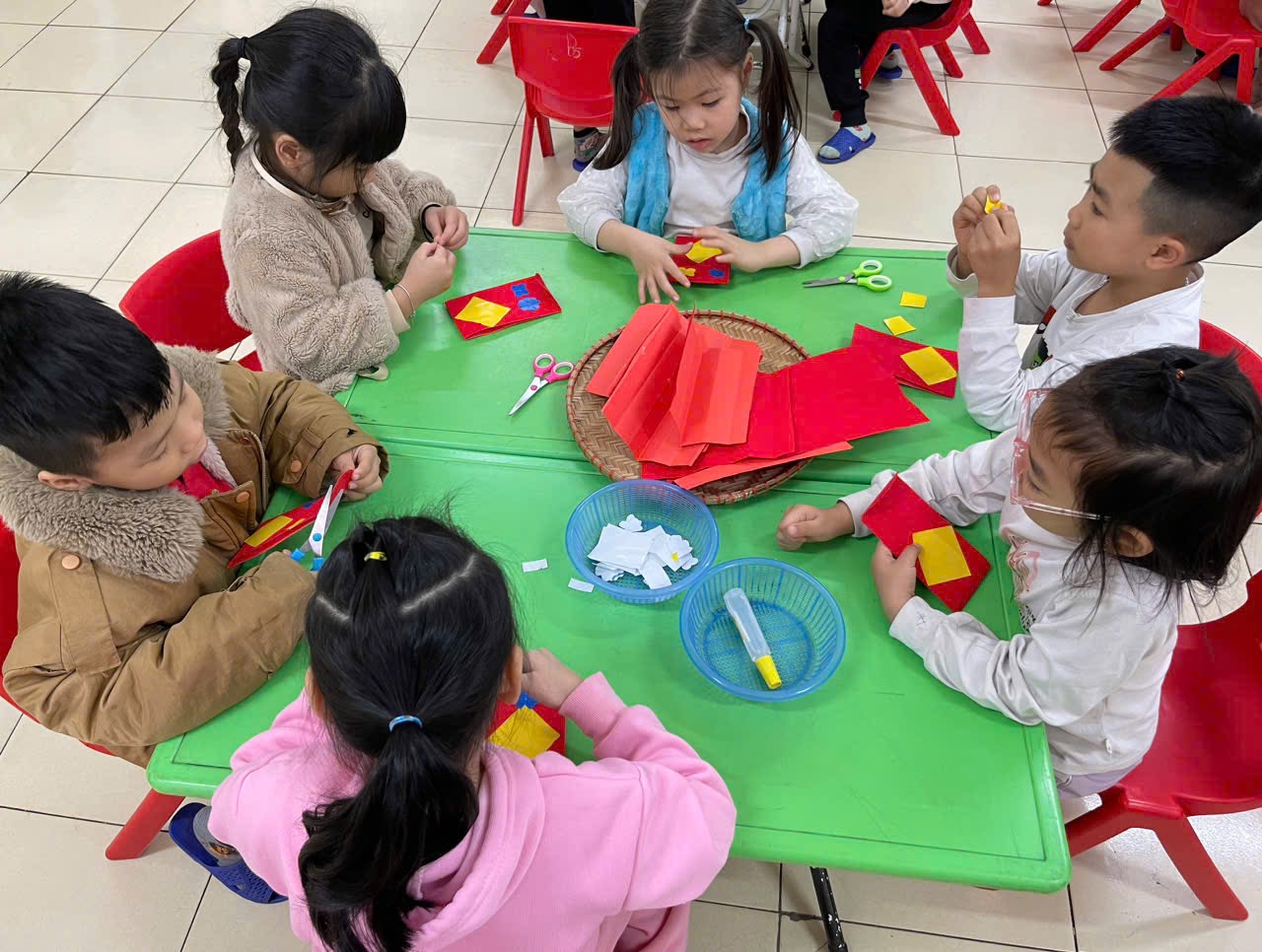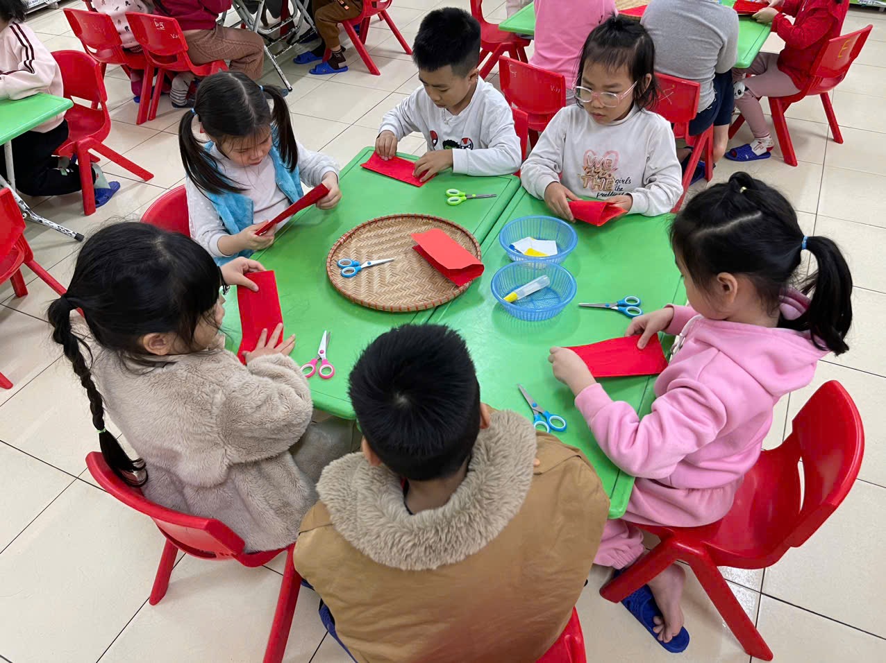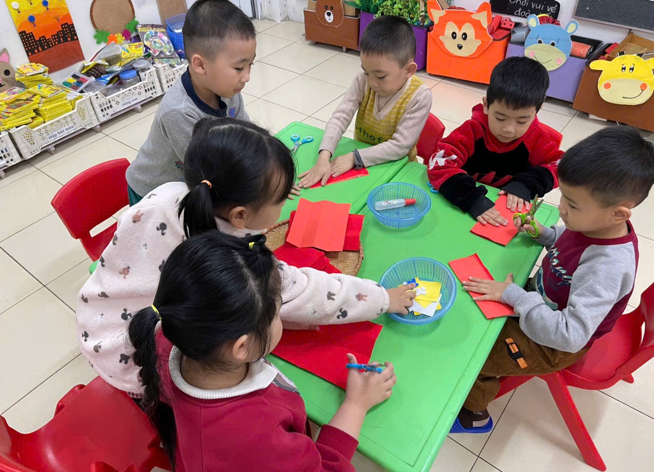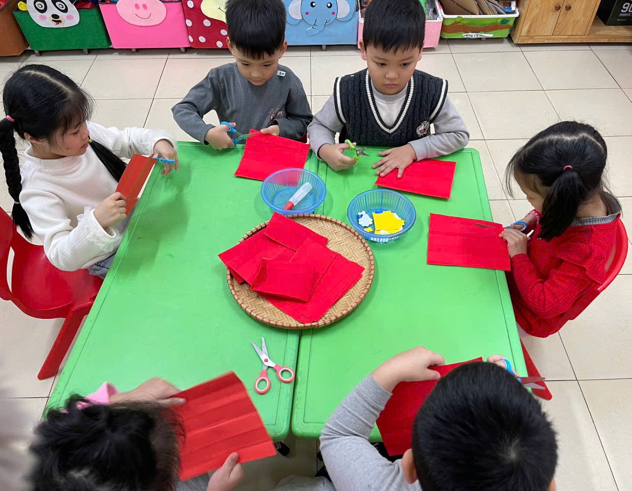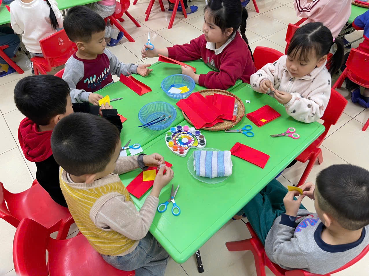 Hoạt động tạo hình: Làm bao lì xì của các bạn nhỏ lớp A5,C5., D5