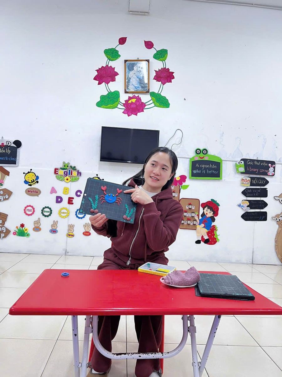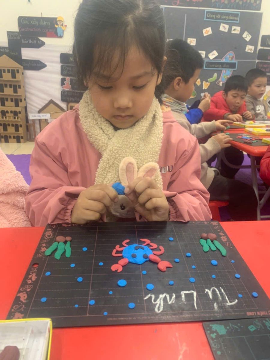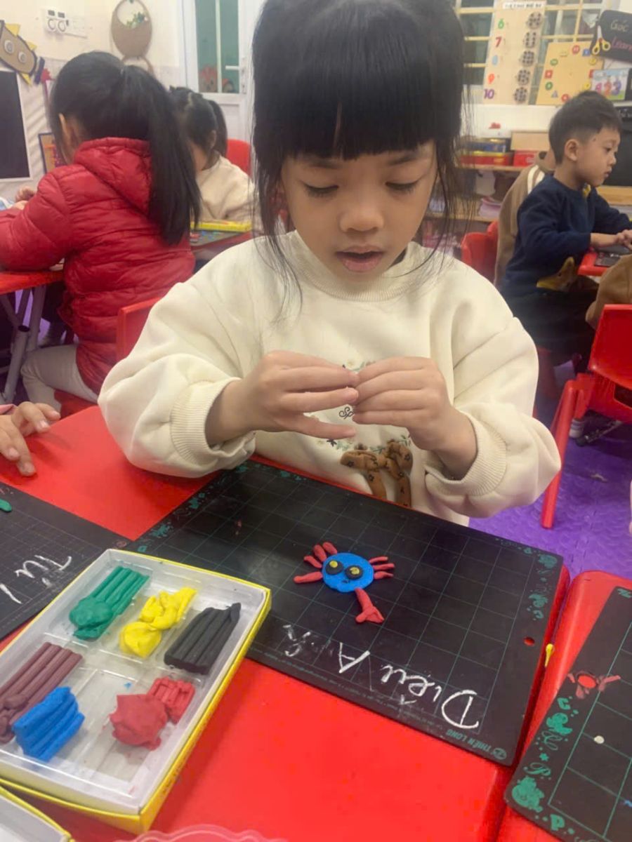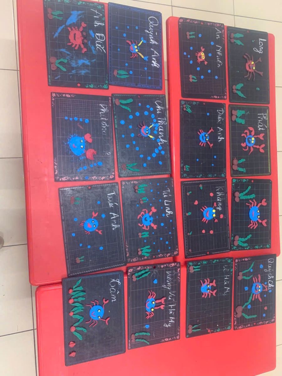 Hoạt động tạo hình: “Nặn con cua” của các bạn nhỏ lớp D5. Thông qua hoạt động này, các con đã biết được cấu tạo của con cua, rèn sự khéo léo của đôi bàn tay qua hoạt động nhào nặn đất nặn! Bạn nà