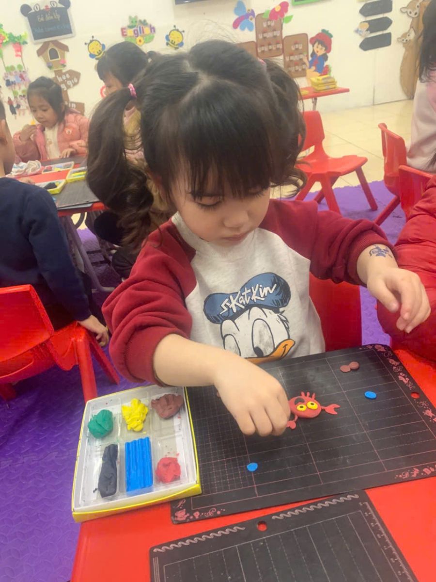 Hoạt động tạo hình: “Nặn con cua” của các bạn nhỏ lớp D5