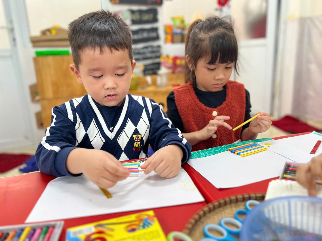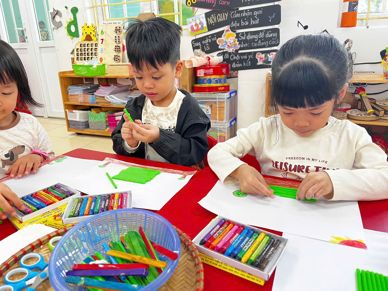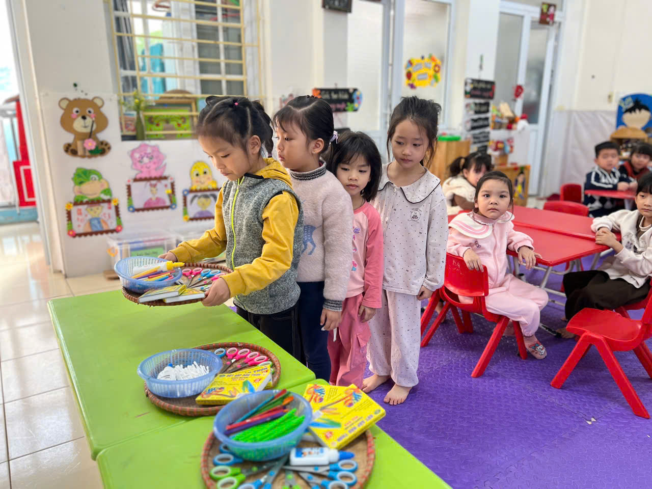 Qua hoạt động này, khơi gợi cho các con sáng tạo từ những vật dụng đơn giản nhất để phát triển trí tưởng tượng và vận dụng chúng vào cuộc sống.