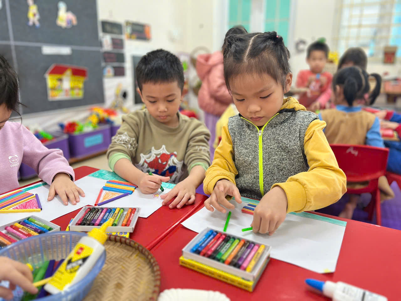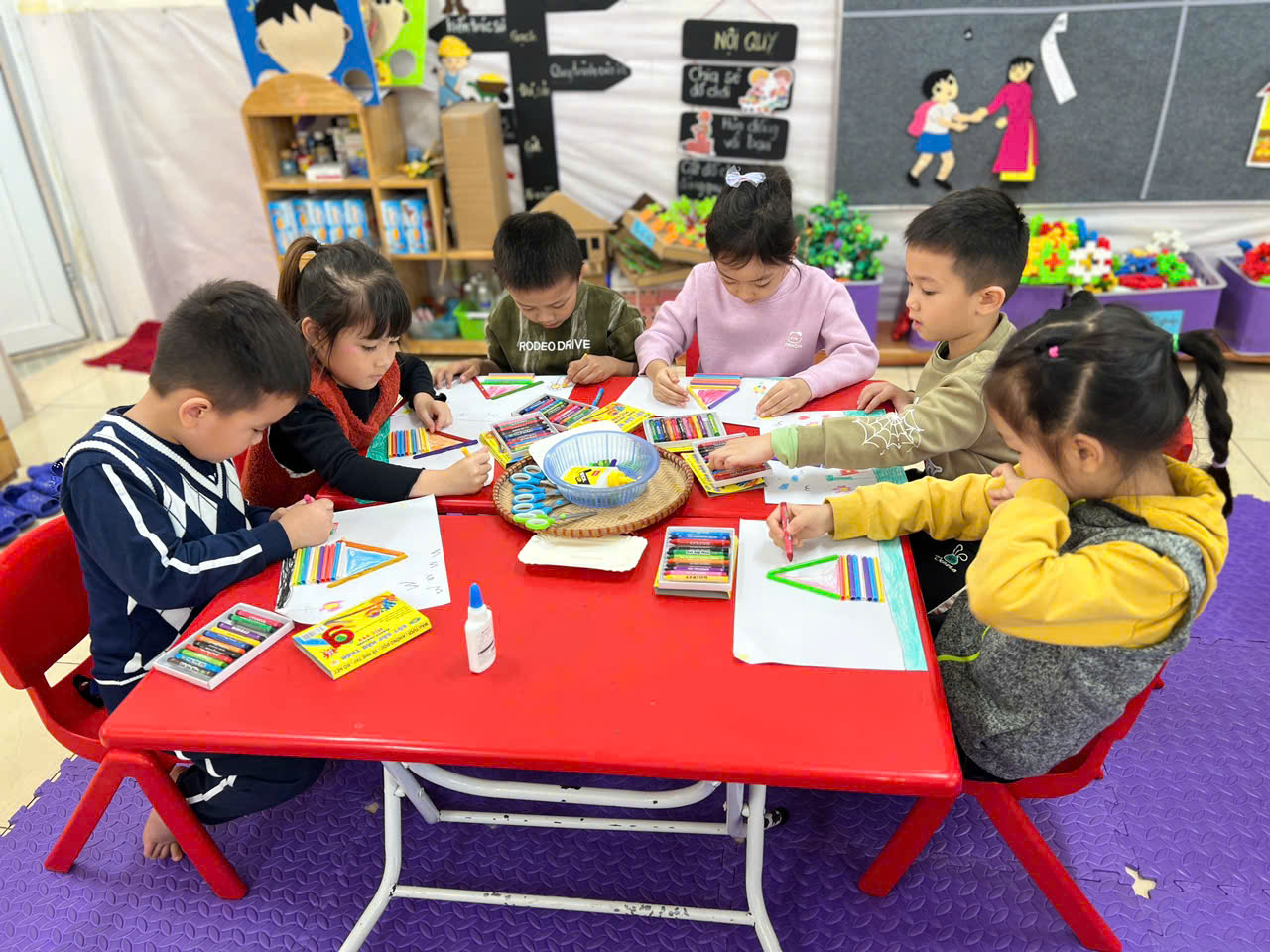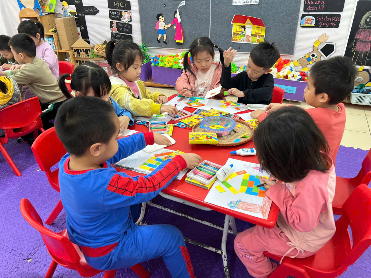 Hoạt động tạo hình: “Ngôi nhà của bé” của các bạn nhỏ lớp D5