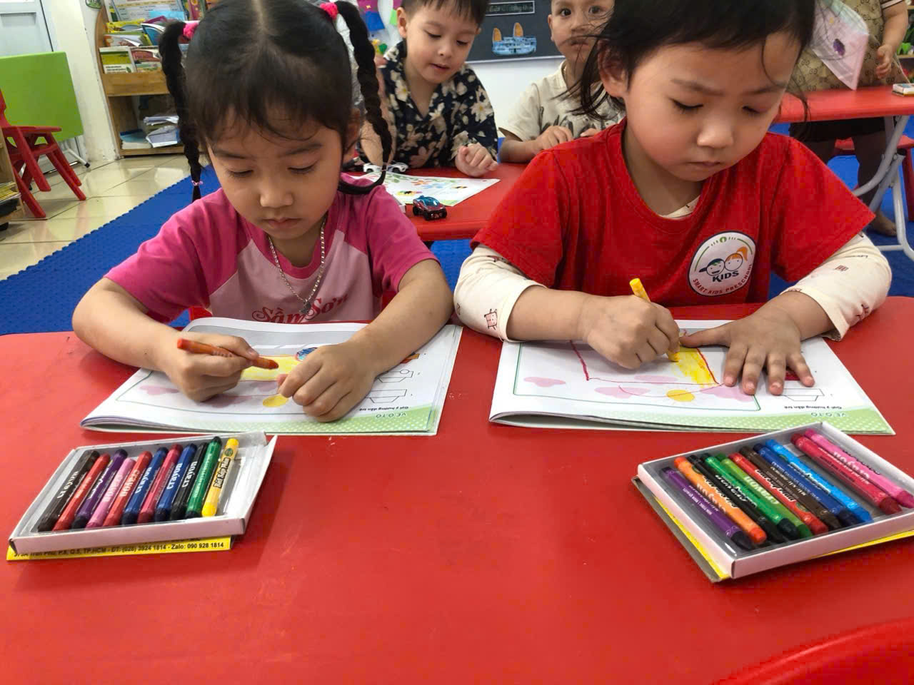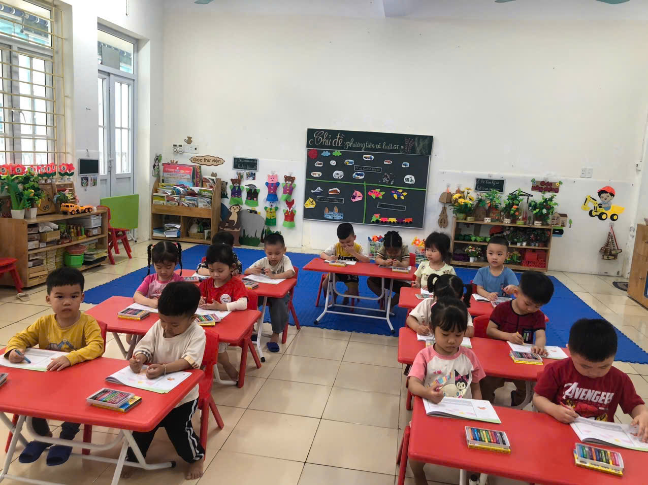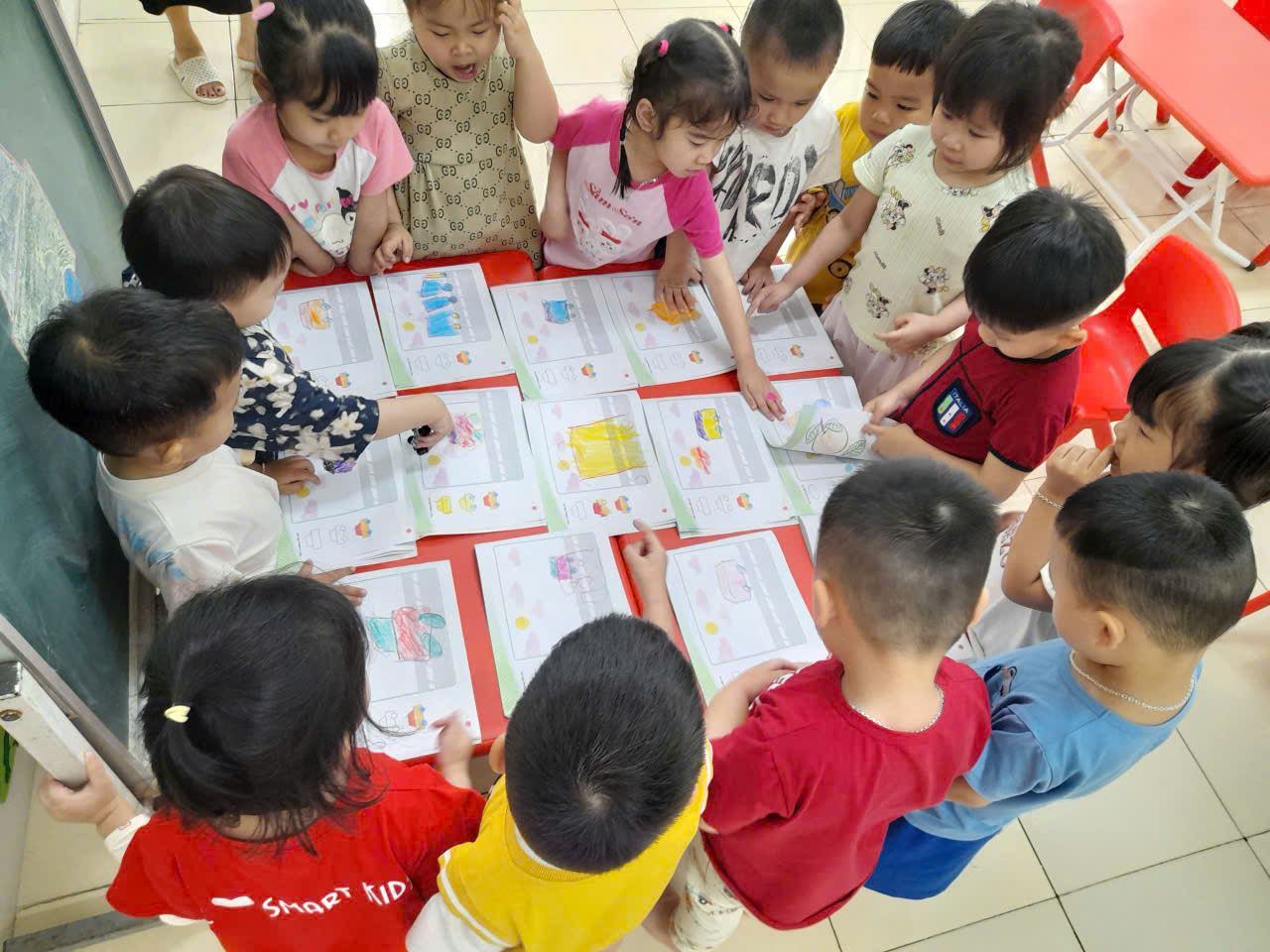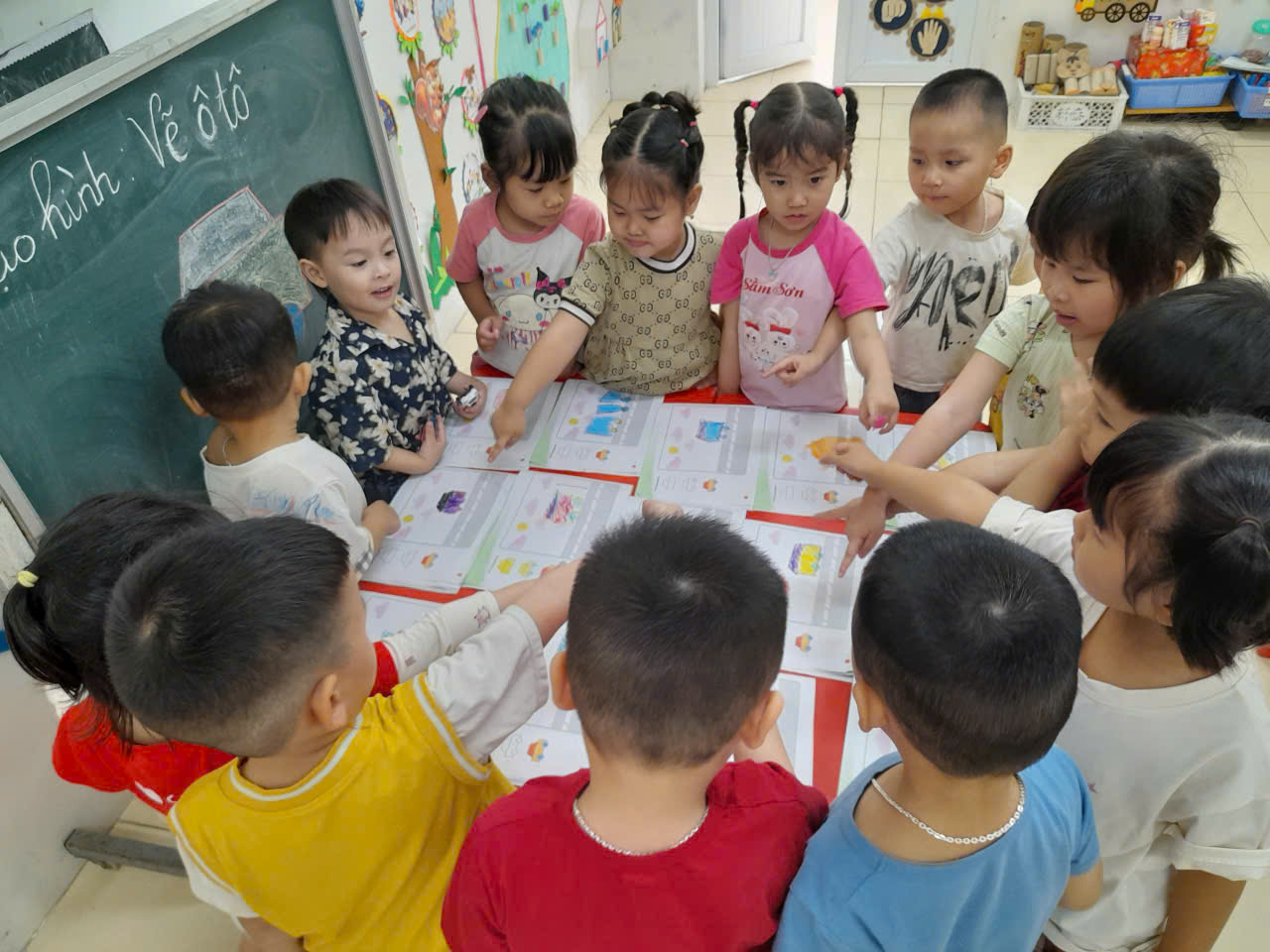ạ! Các con đã sử dụng đôi tay khéo léo của mình để vẽ, tô màu những hình đơn giản để tạo nên sản phẩm 🚗 của riêng mình. Bạn nào cũng rất hào hứng và sáng tạo ạ!