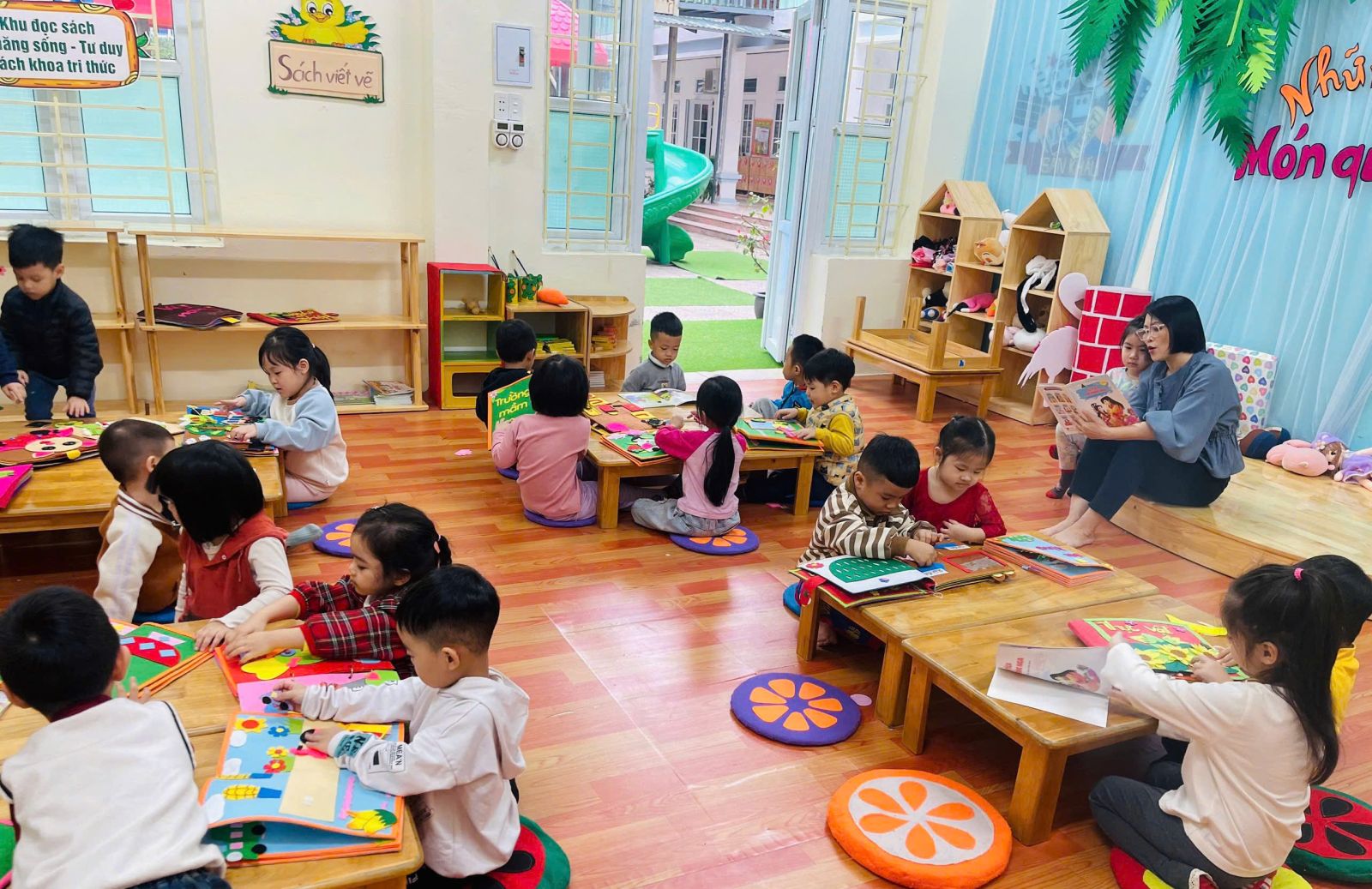 HOẠT ĐỘNG THƯ VIỆN LỚP B4 📚 Hôm nay, các bé lớp B4 được tham gia hoạt động tại phòng thư viện. Bé xem tranh, đọc sách cùng bạn và học cách giữ gìn sách. Buổi hoạt động diễn ra vui vẻ, giúp các c