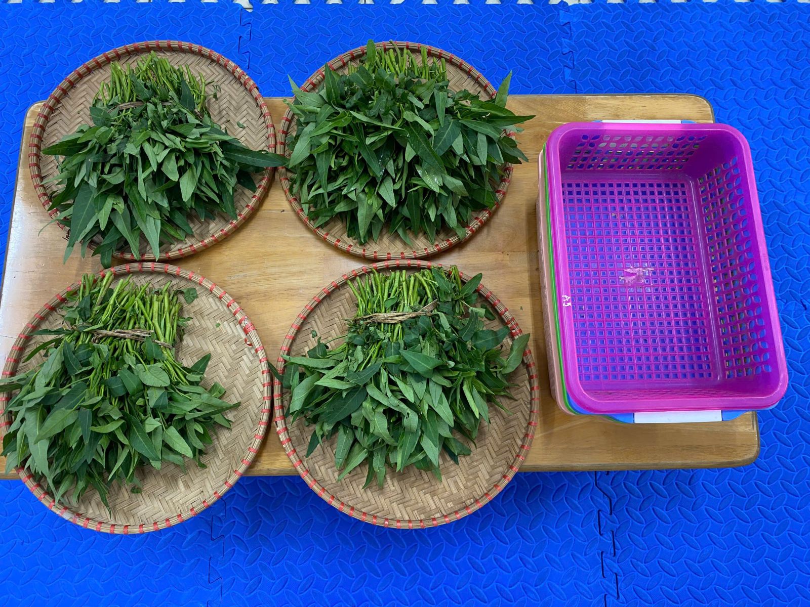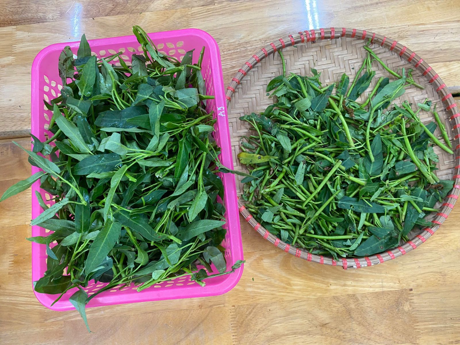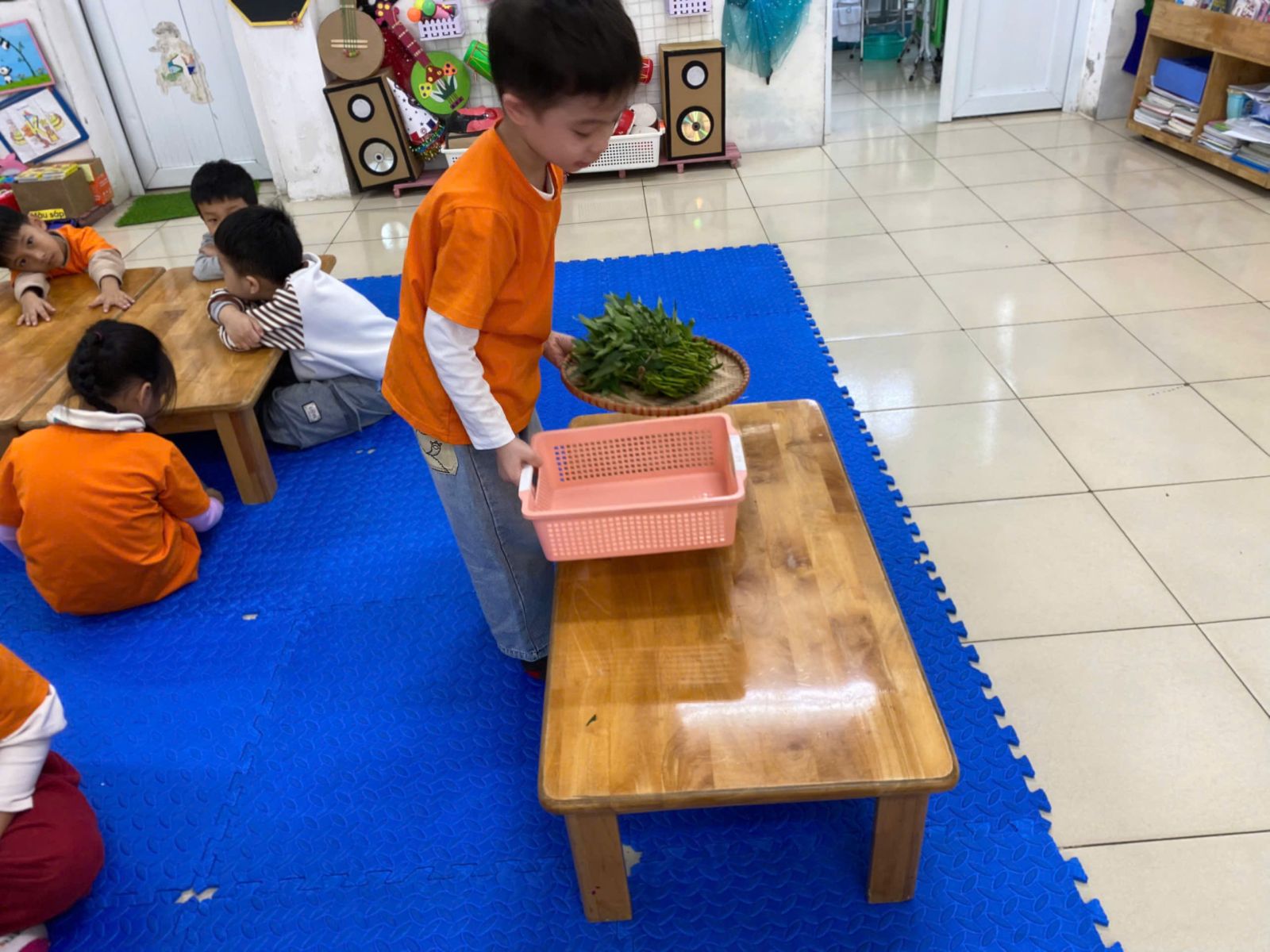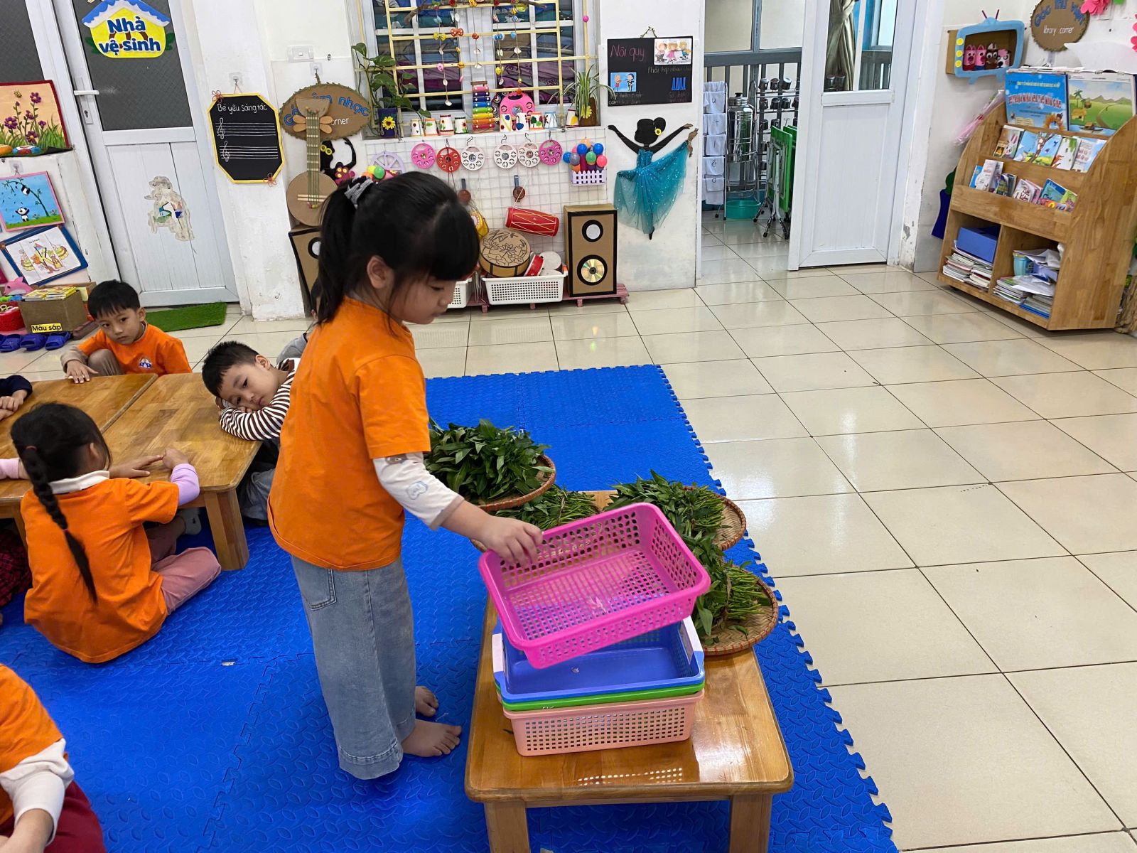 HOẠT ĐỘNG TRẢI NGHIỆM: NHẶT RAU MUỐNG. Hôm nay các con lớp A5 đã cùng nhau trải nghiệm nhặt rau muống vô cùng hào hứng. Thông qua hoạt động này các con nhận biết được đặc điểm của rau muống, biết rau muống chứa nhiều vitamin và muối khoáng rất tốt cho cơ thể. Dưới sự hướng dẫn của cô giáo, các con đã biết nhặt rau đúng cách, phân biệt được phần rau non ăn được và nhặt bỏ phần lá vàng úa, phần cuống già. Hoạt động này đã giáo dục các con biết chia
