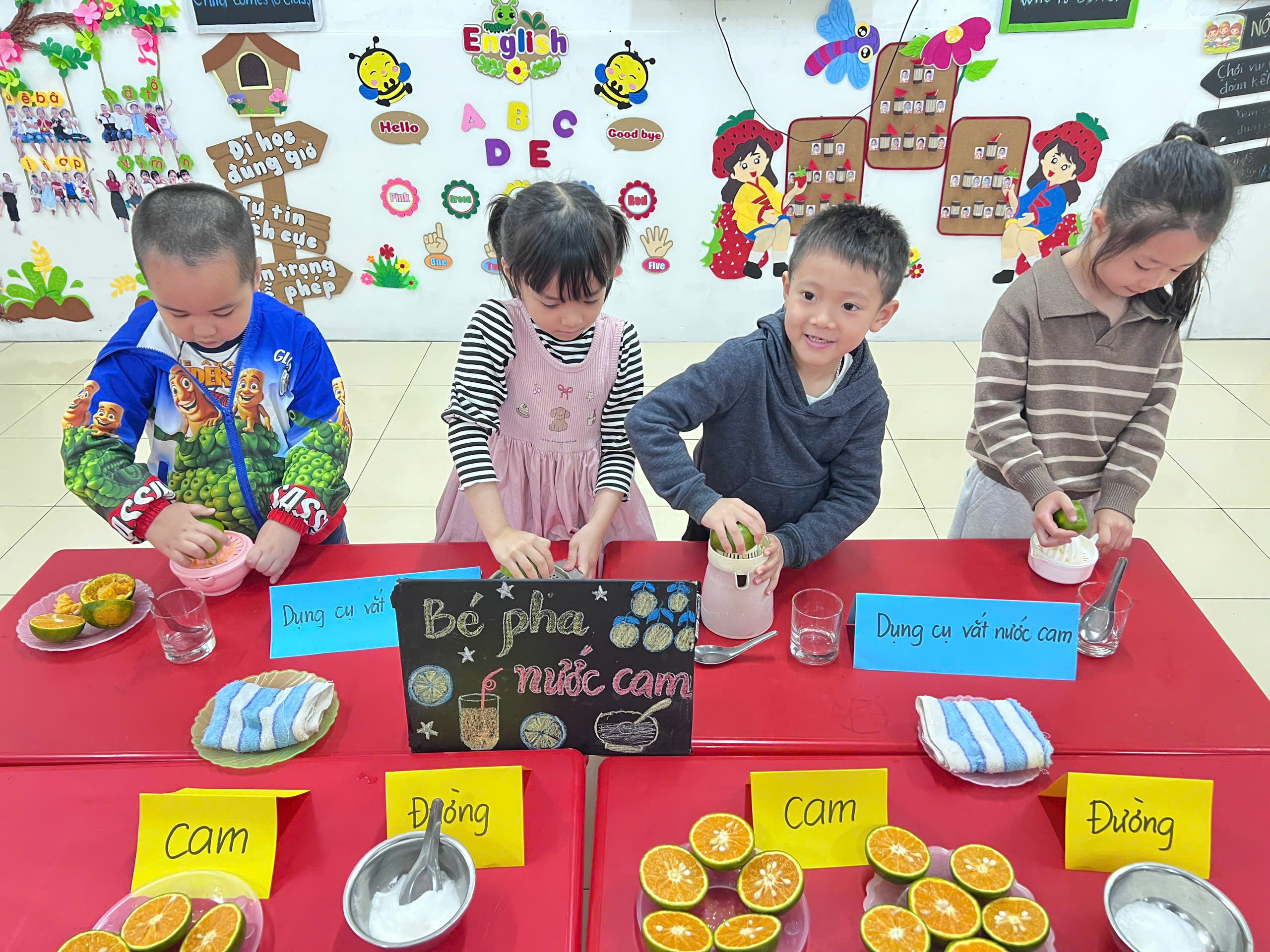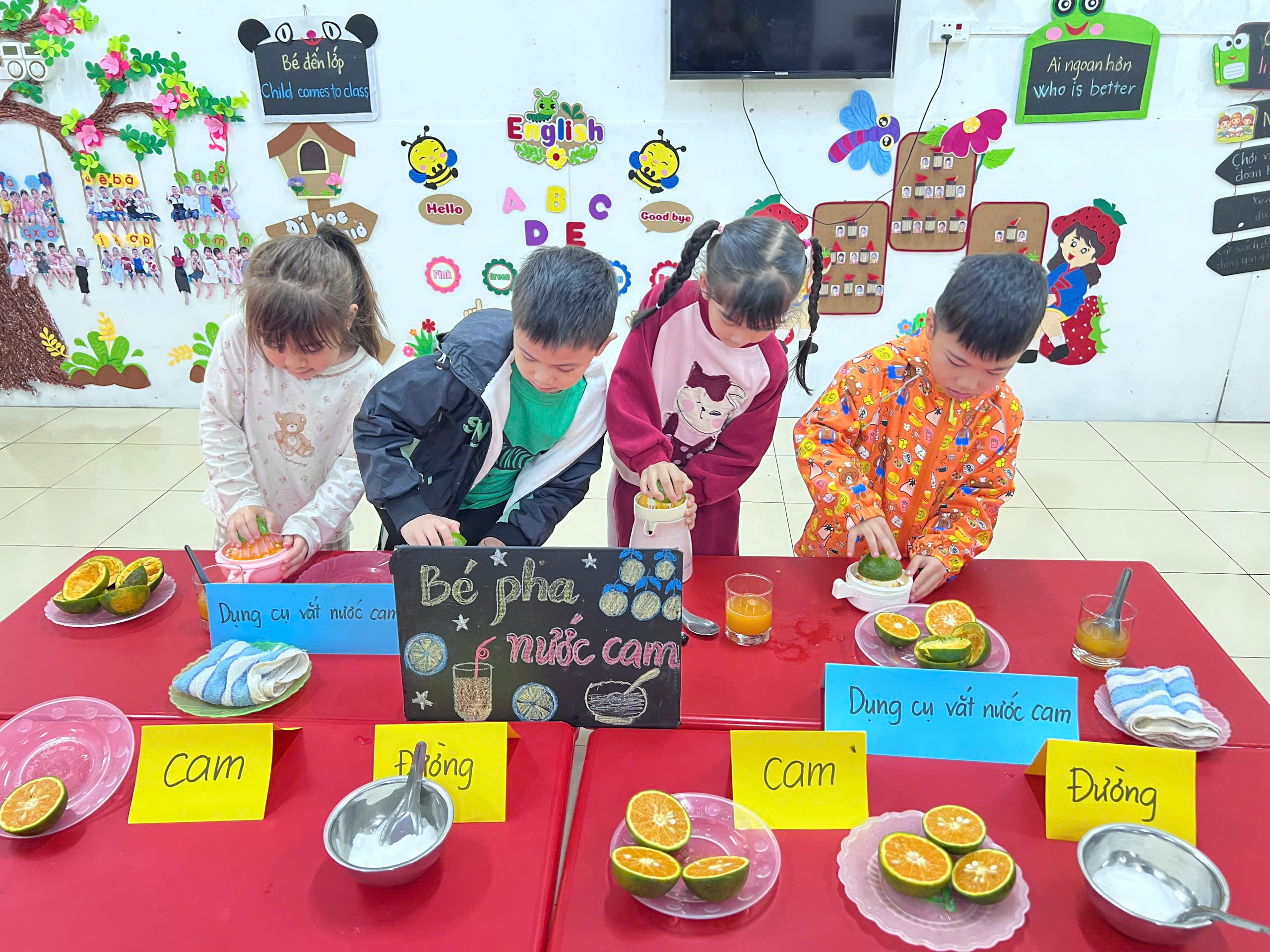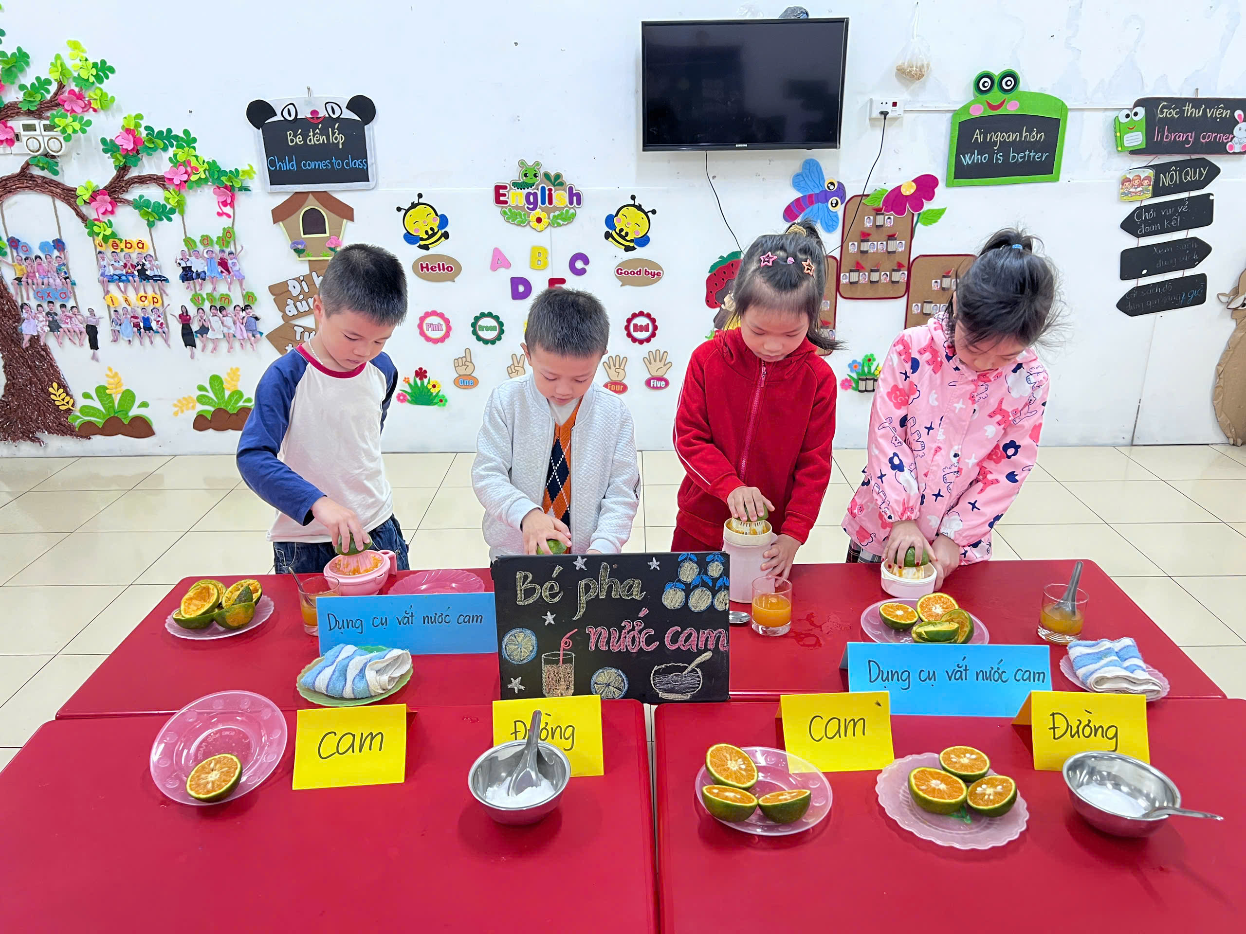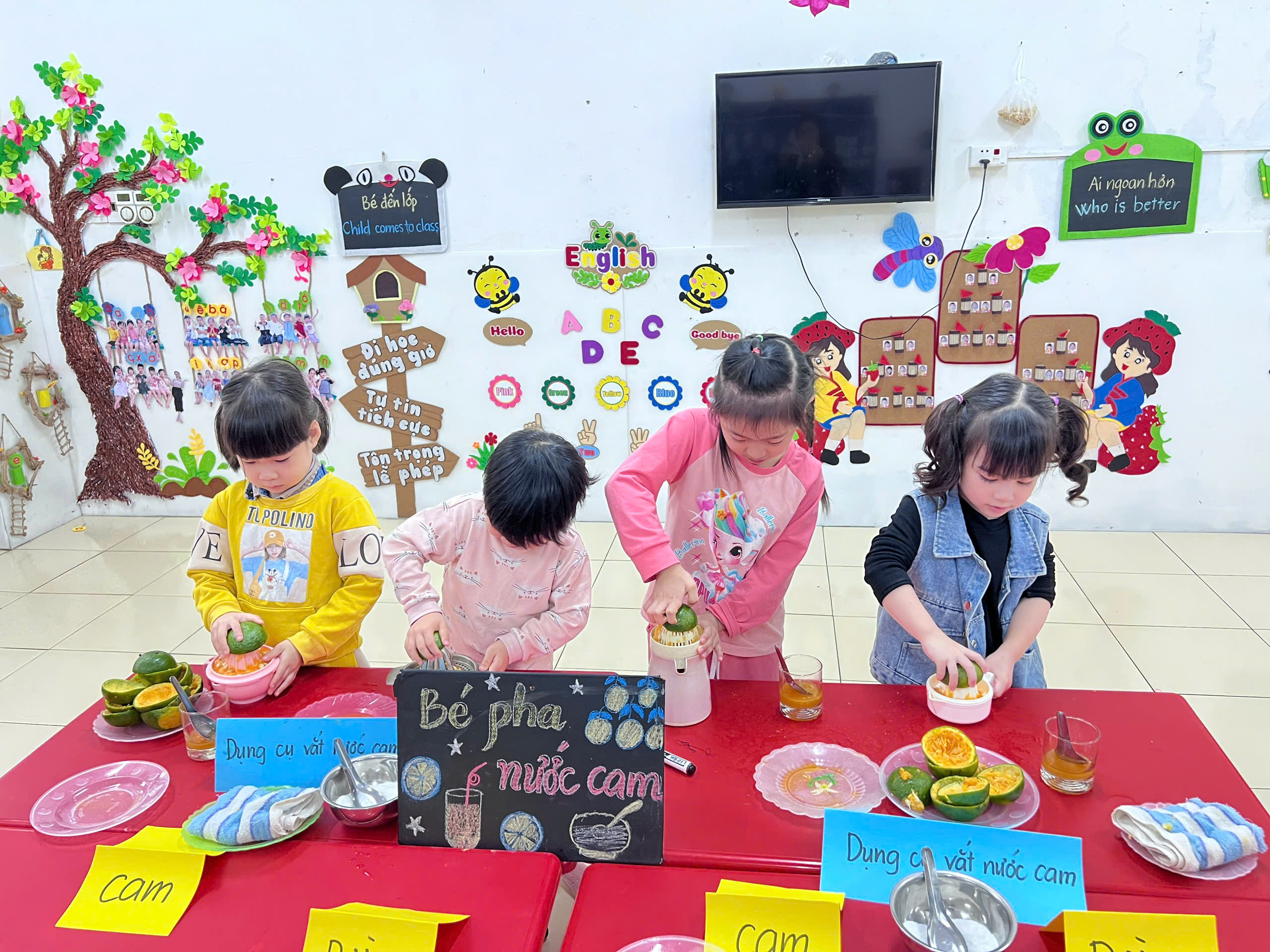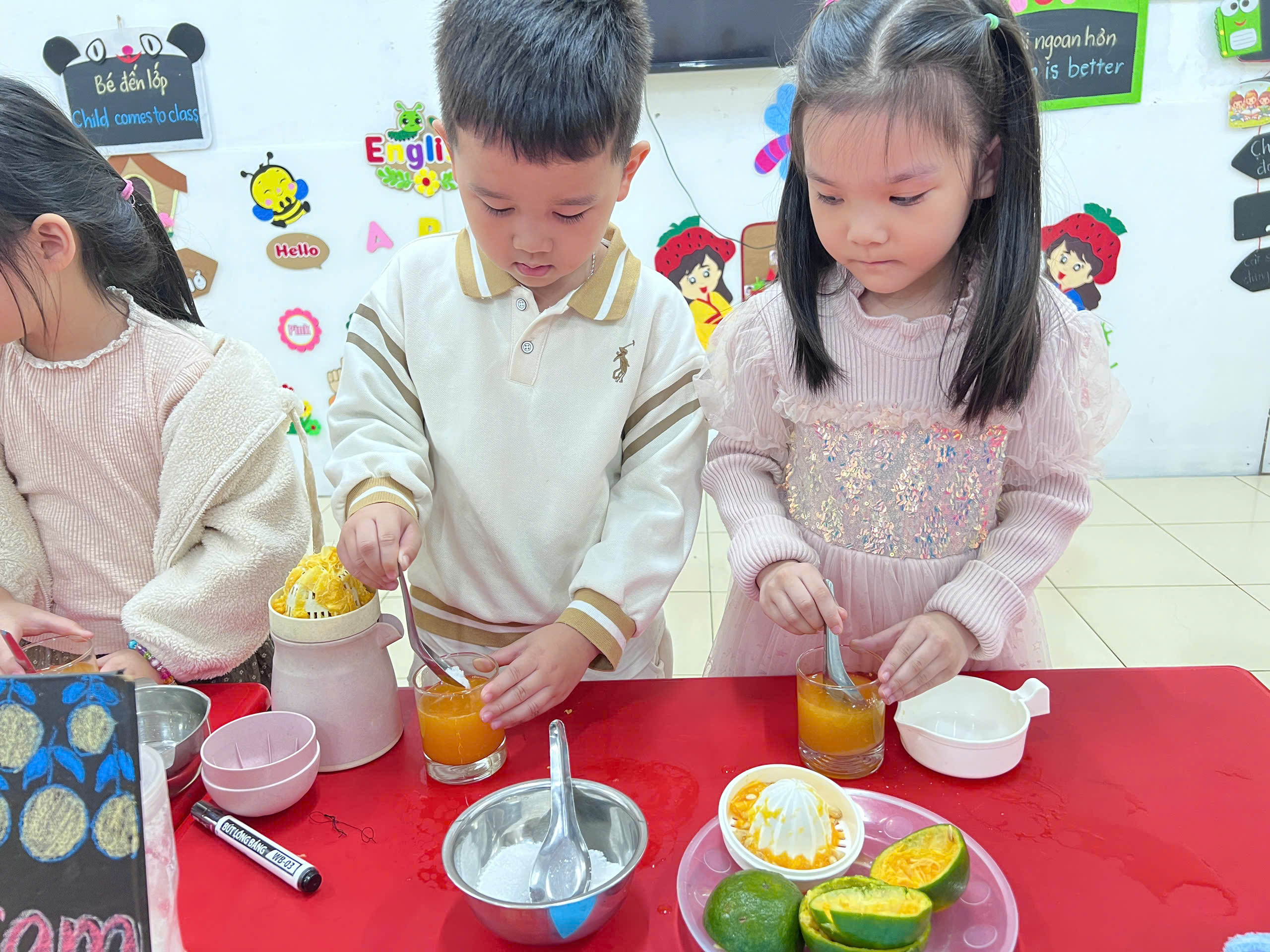 Các bạn nhỏ lớp D5 vừa hào hứng vừa thích thú khi tự tay vắt và uống cốc nước cam do chính mình là ra. Qua hoạt động này giúp các con thêm hiểu biết về quả cam và giúp đôi bàn tay khéo léo hơn và có những trải nghiệm vô cùng thú vị đó ạ! Các bạn cùng nhìn lại một số hình ảnh của lớp D5 nhé ạ!!!