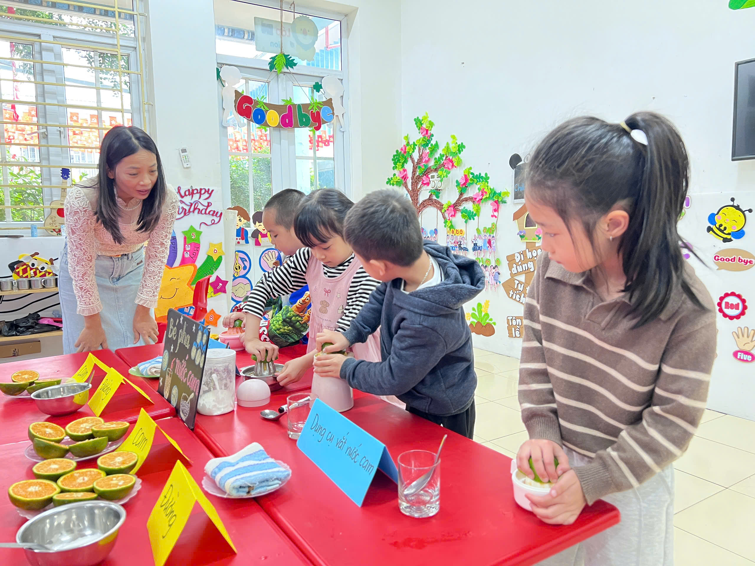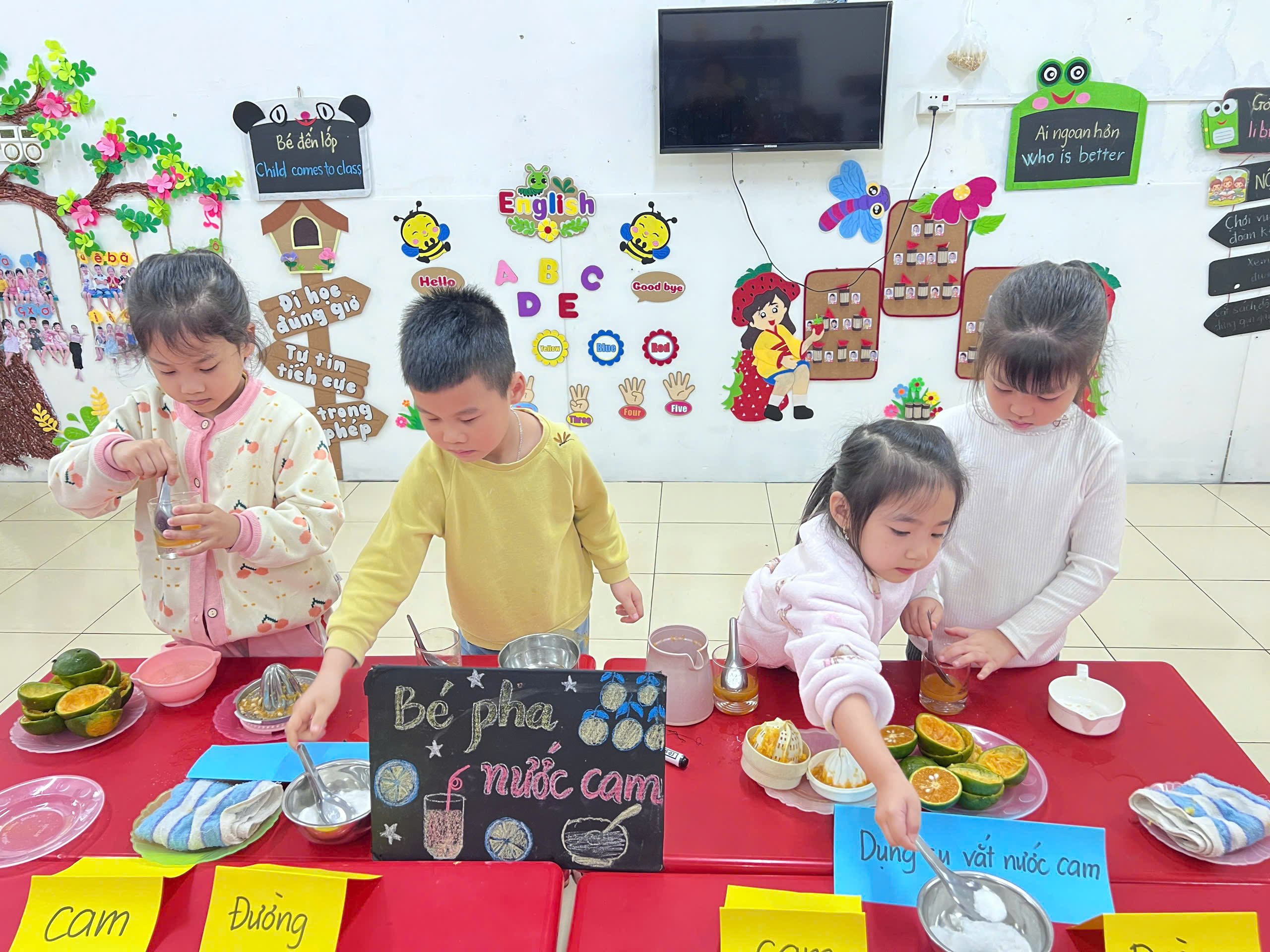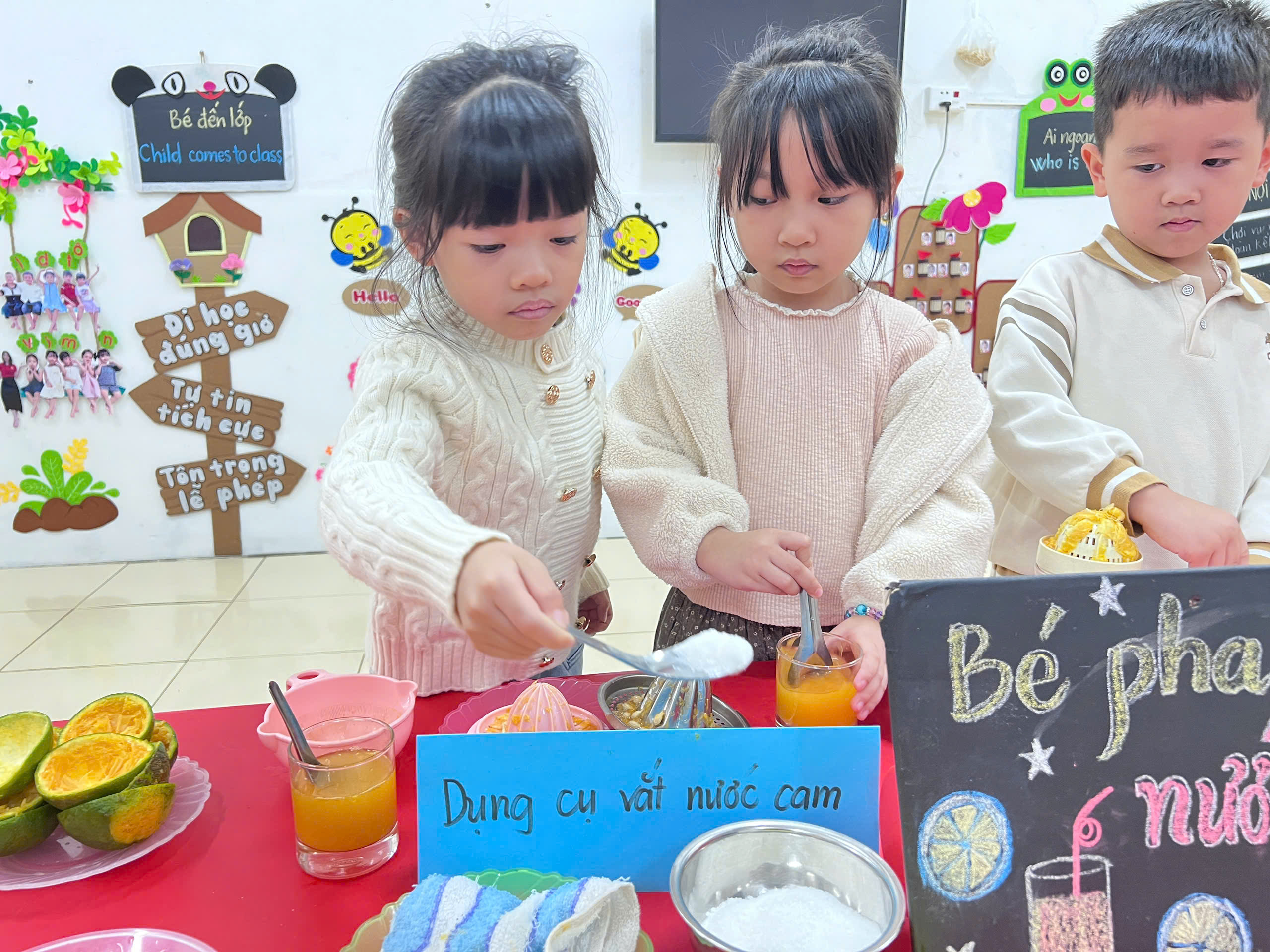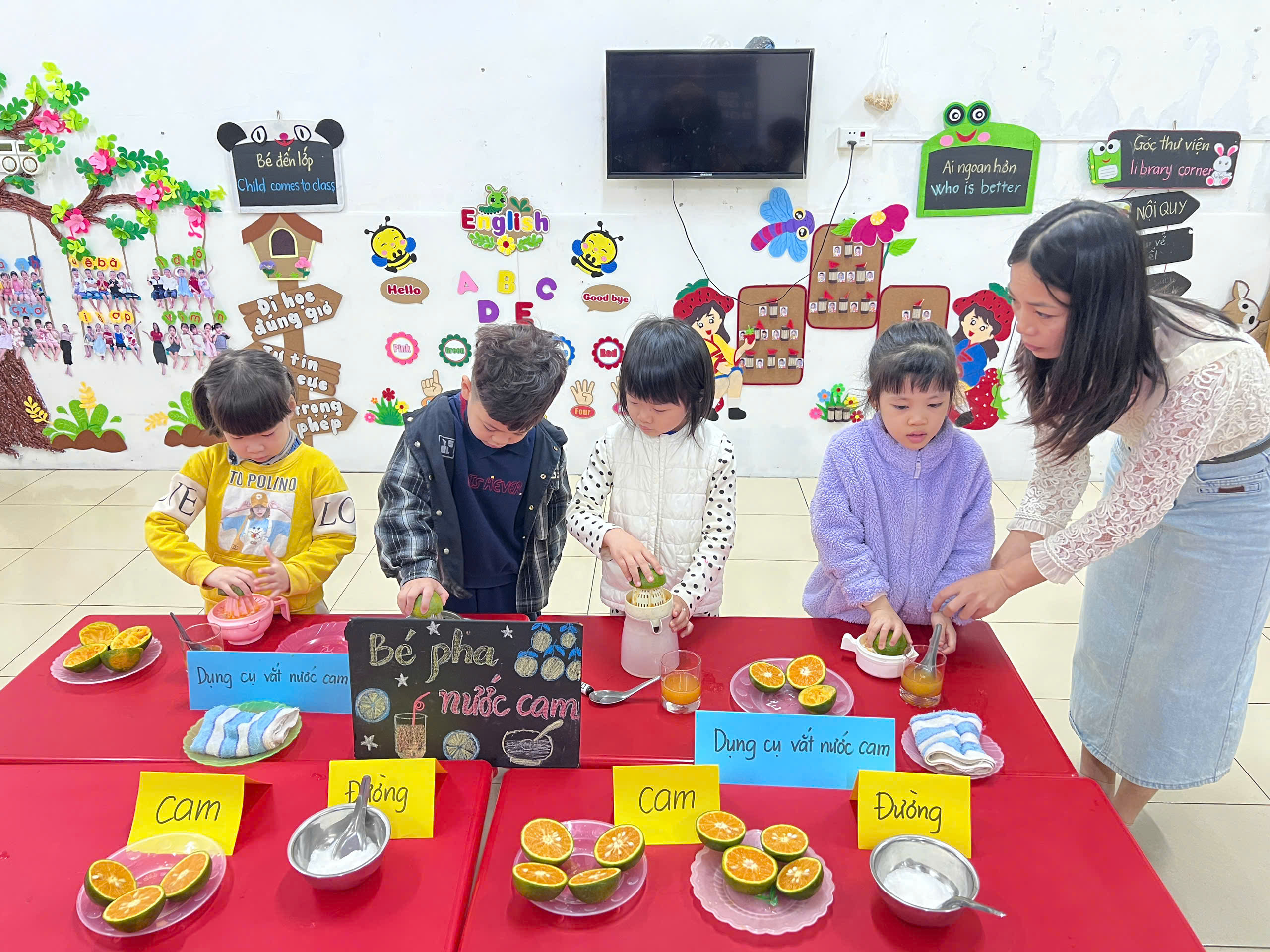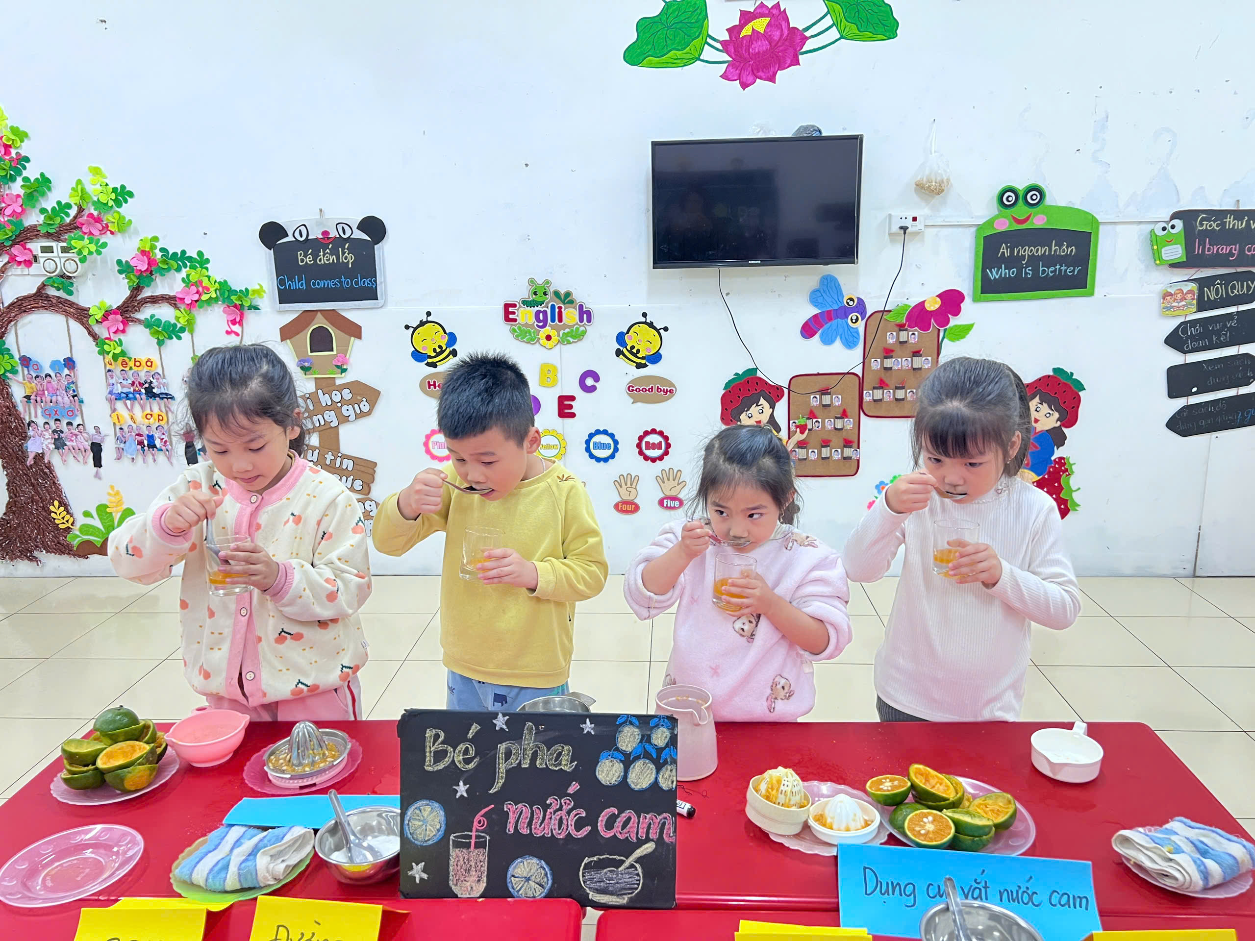 Các bạn nhỏ lớp D5 vừa hào hứng vừa thích thú khi tự tay vắt và uống cốc nước cam do chính mình là ra. Qua hoạt động này giúp các con thêm hiểu biết về quả cam và giúp đôi bàn tay khéo léo hơn và có những trải nghiệm vô cùng thú vị đó ạ! Các bạn cùng nhìn lại một số hình ảnh của lớp D5 nhé ạ!!!