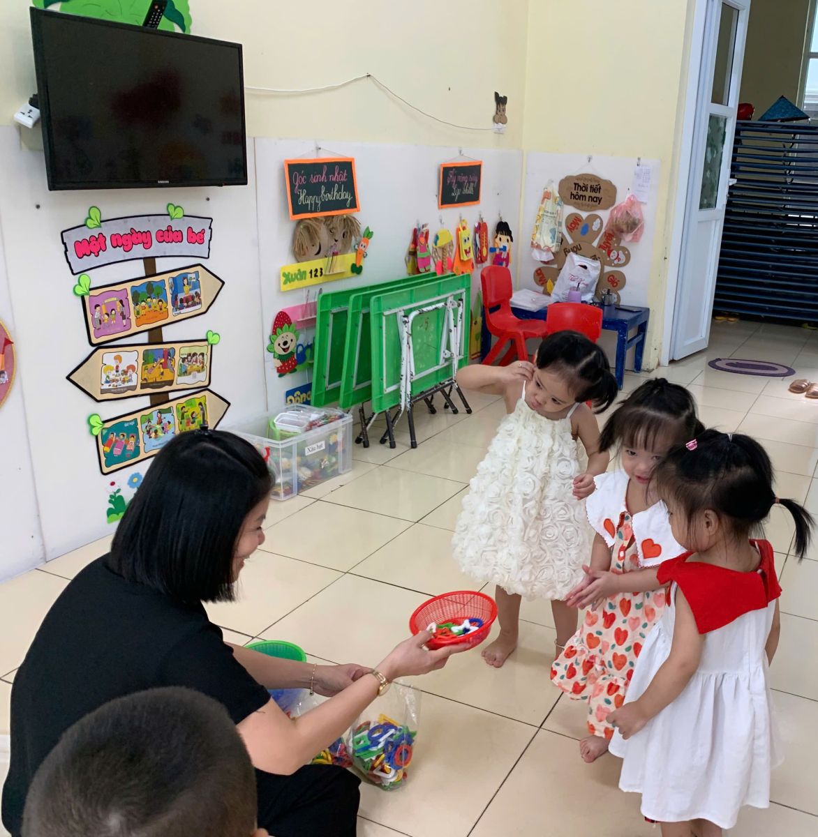 Hoạt động với đồ vật : dạy trẻ lắp ghép các hình thành vòng