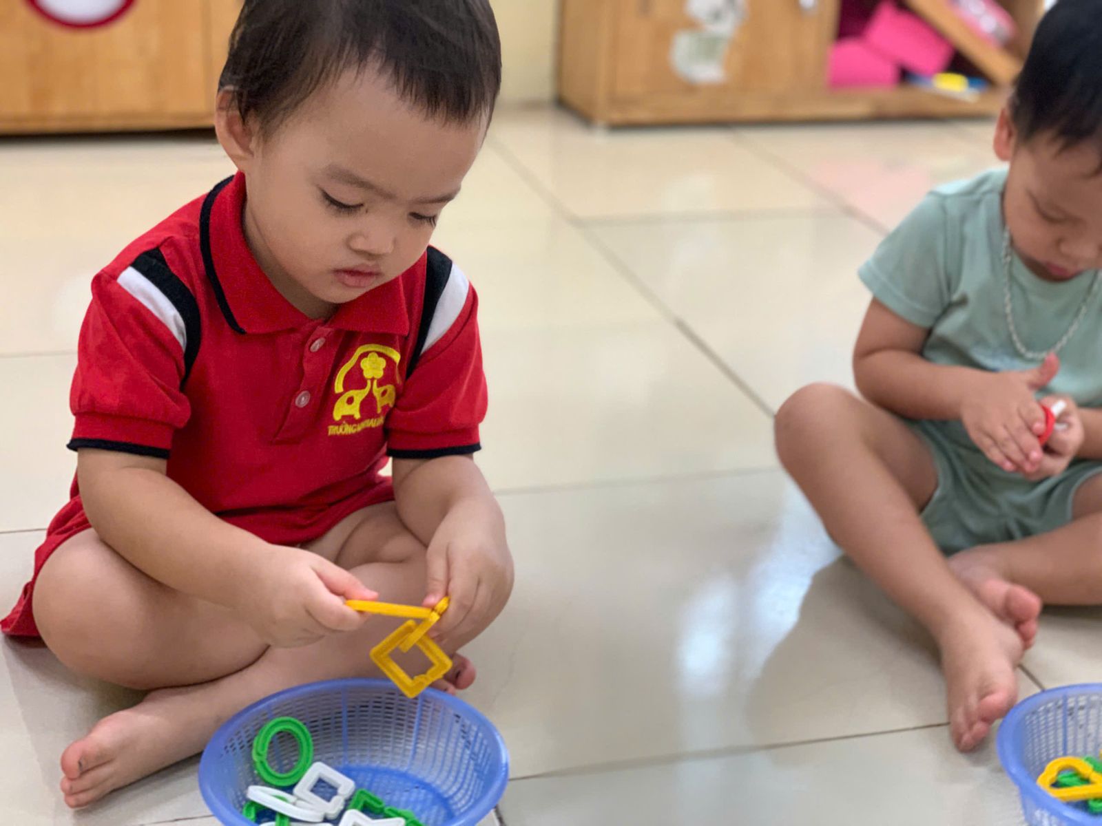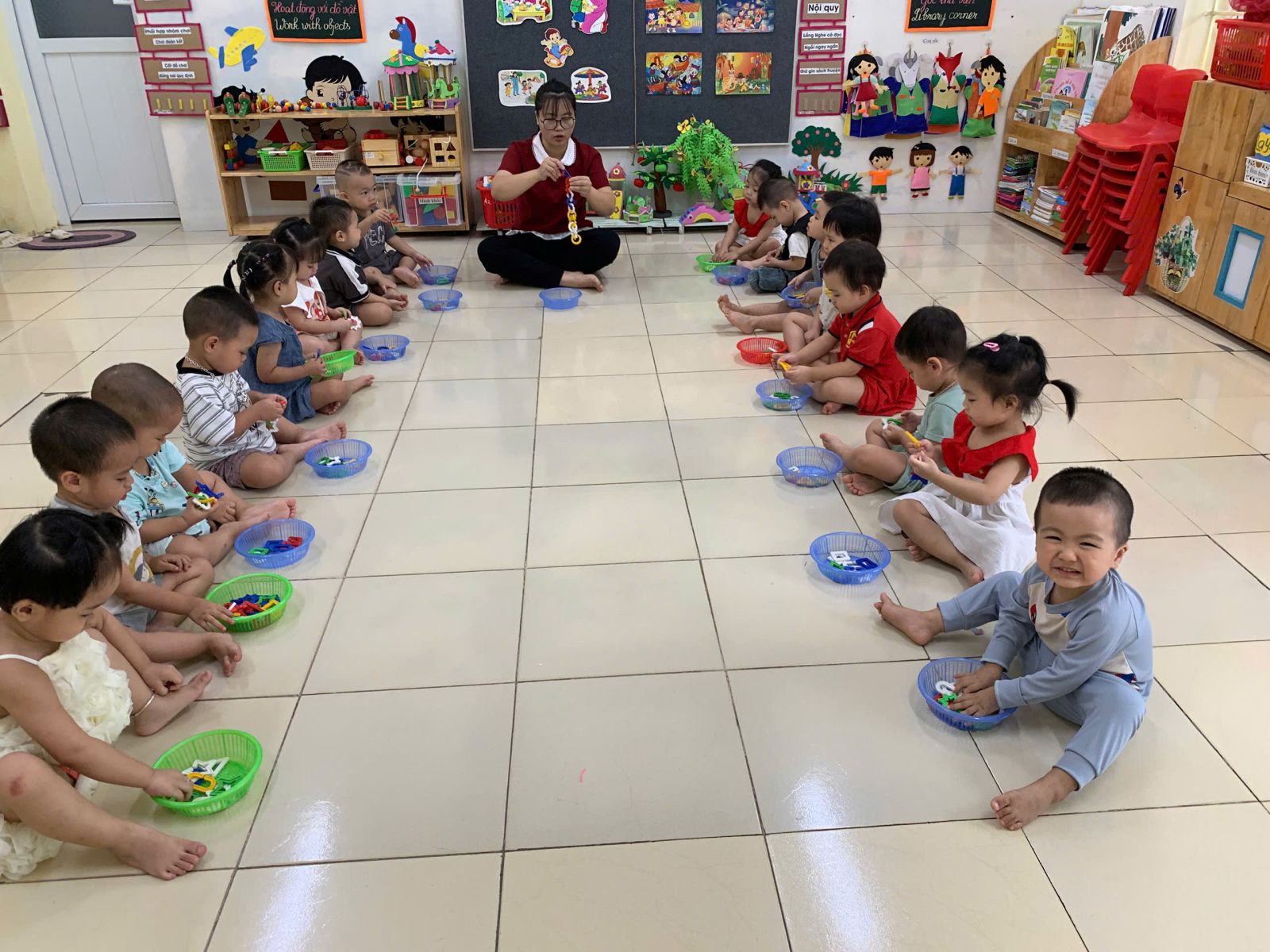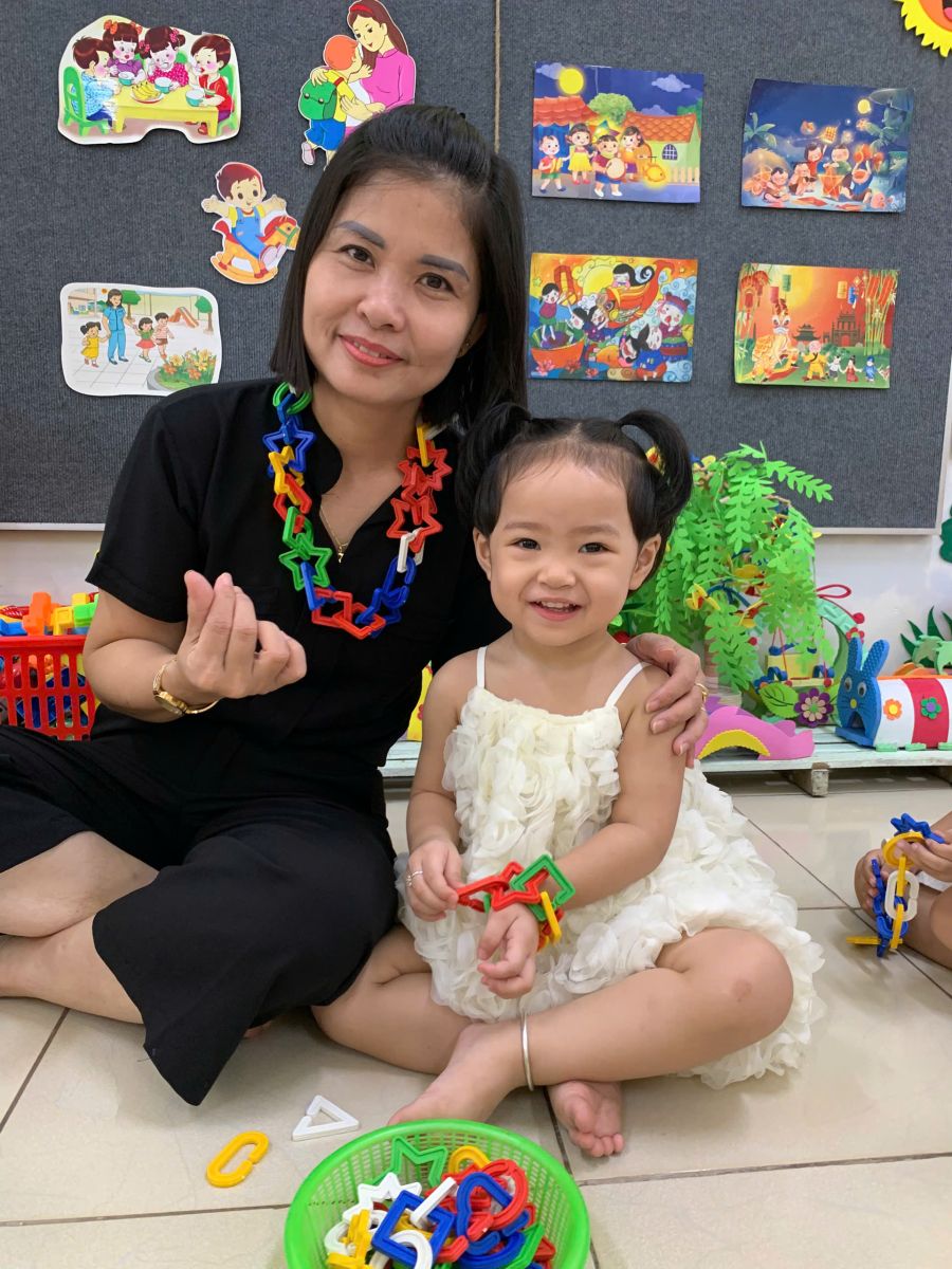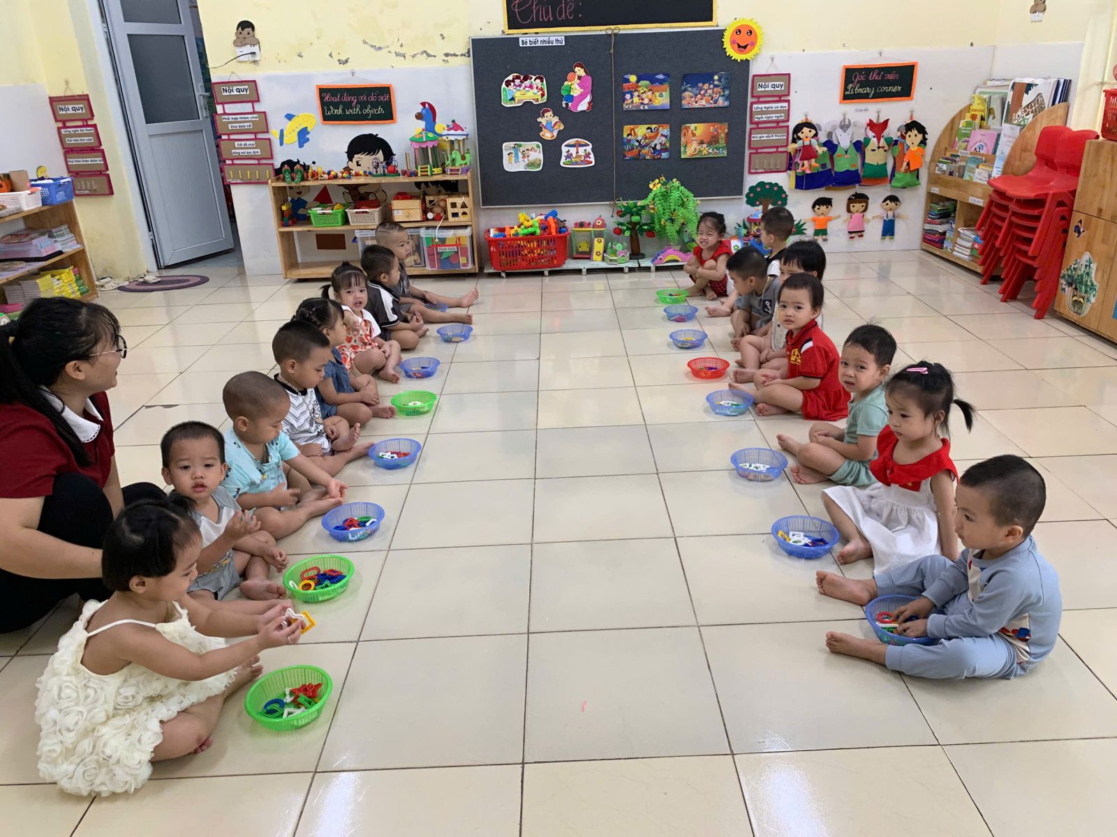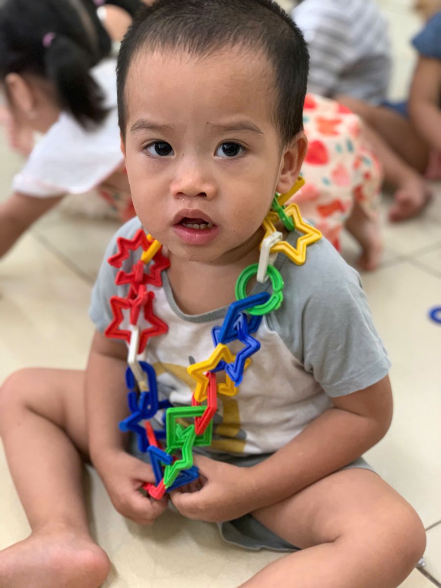 Hoạt động với đồ vật : dạy trẻ lắp ghép các hình thành vòng