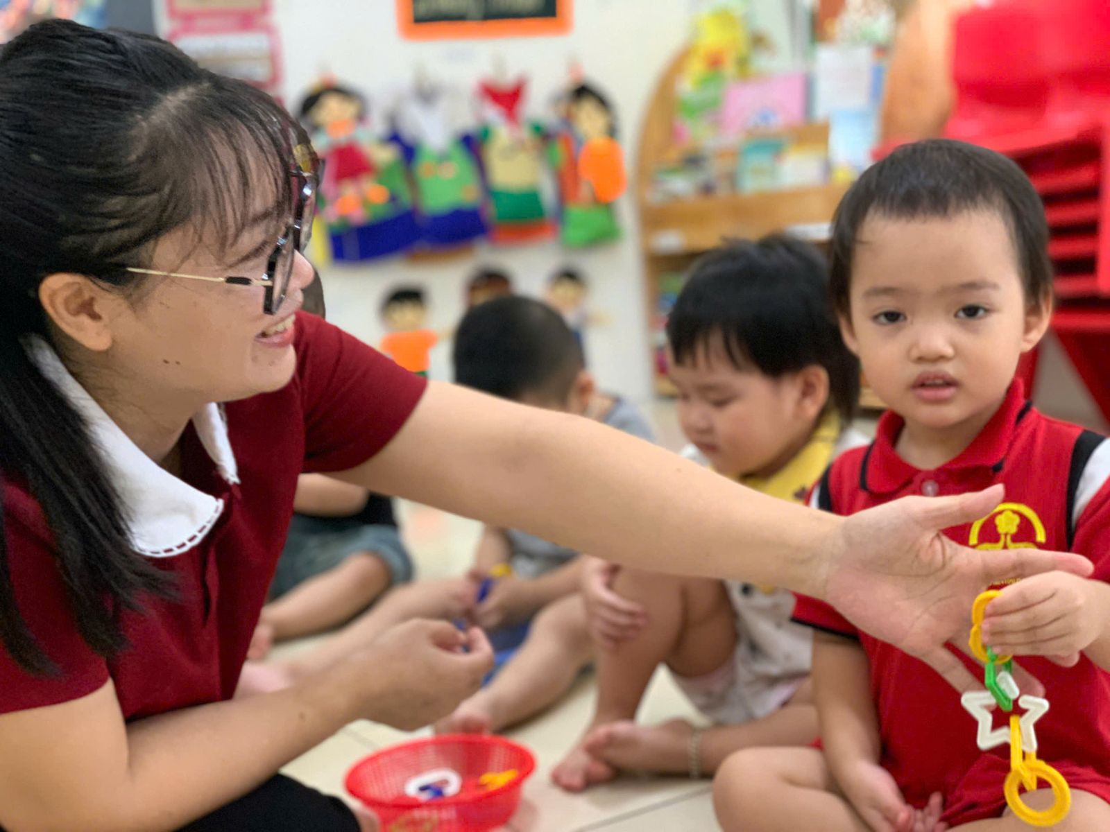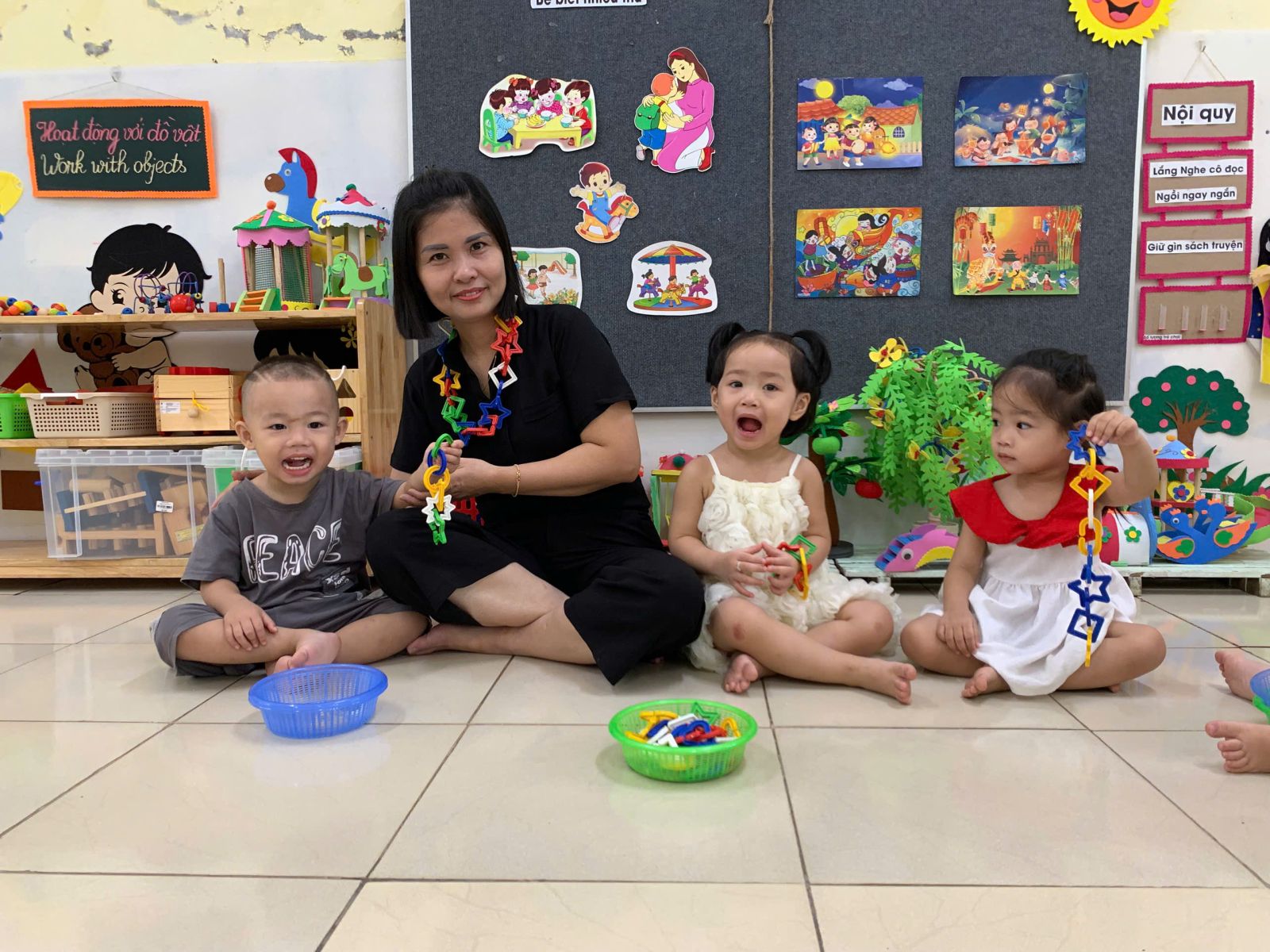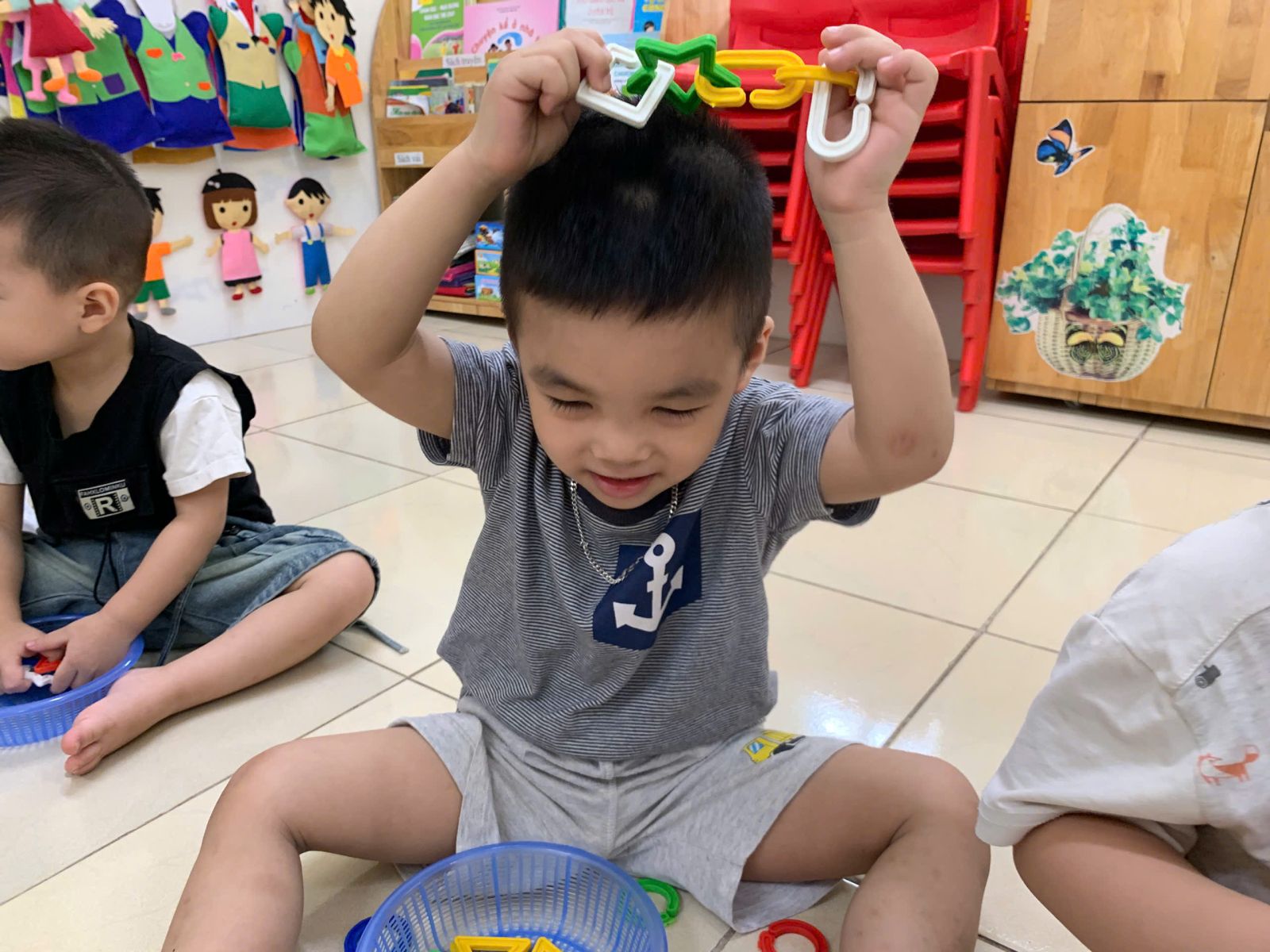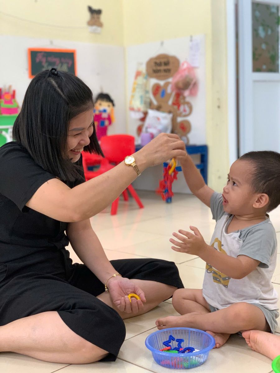 Hoạt động với đồ vật : dạy trẻ lắp ghép các hình thành vòng