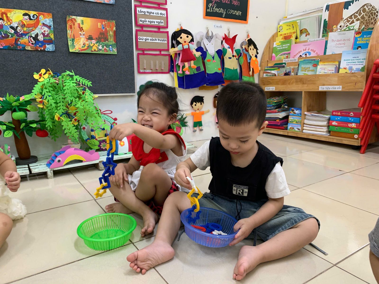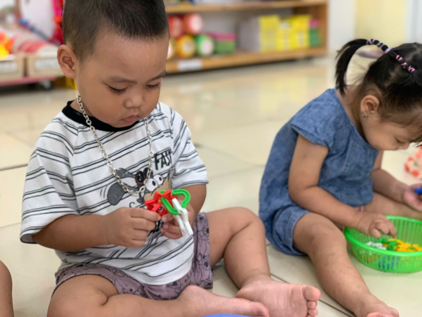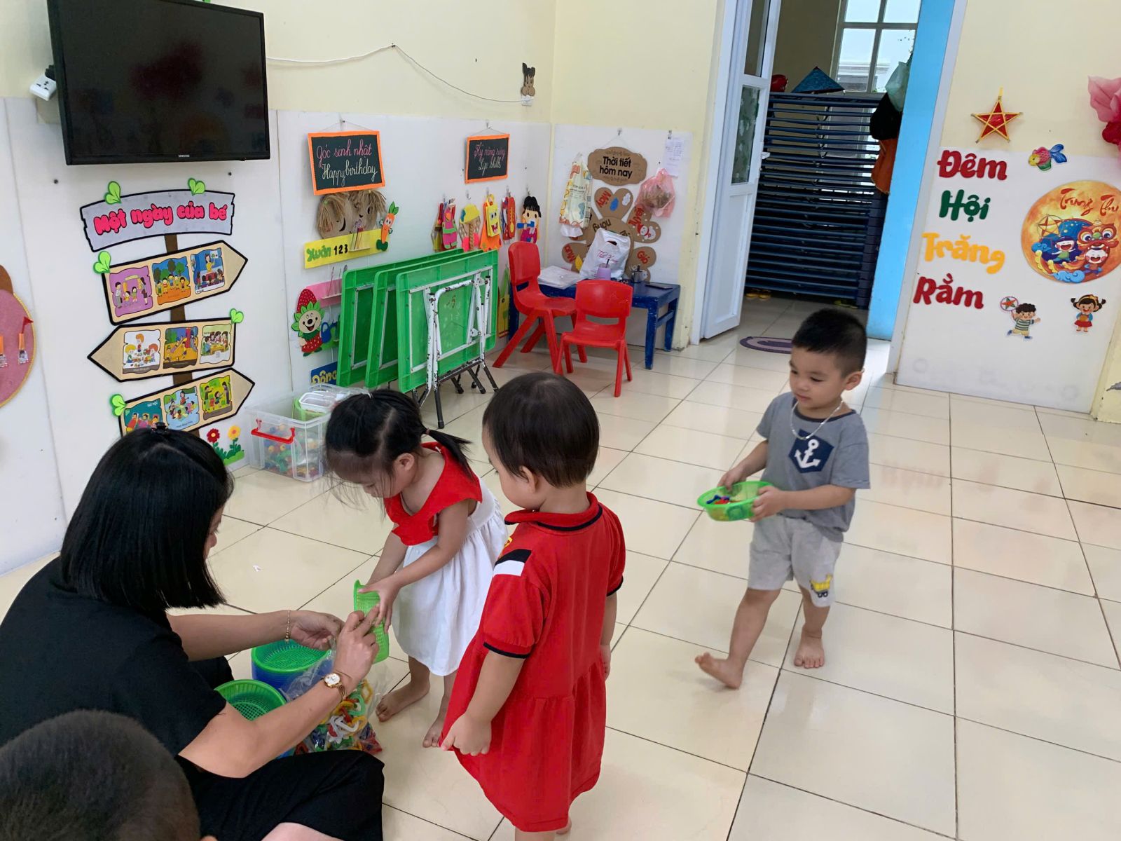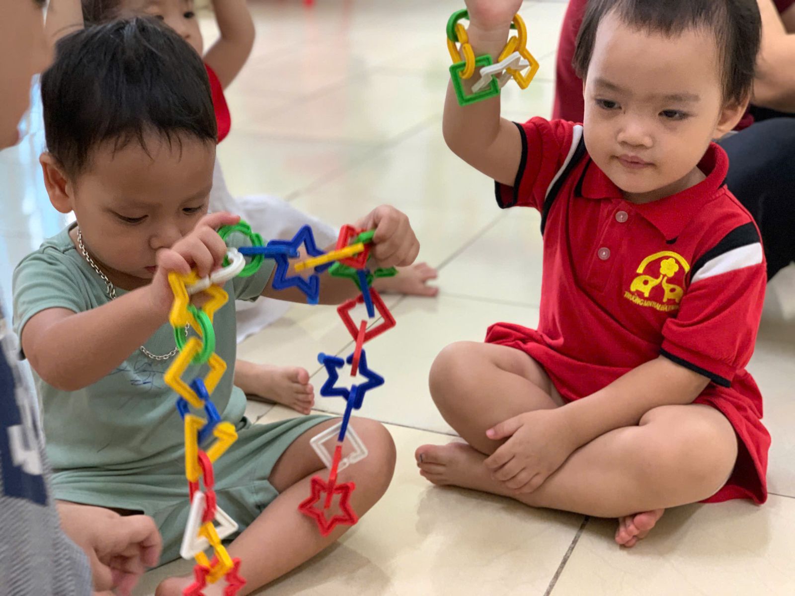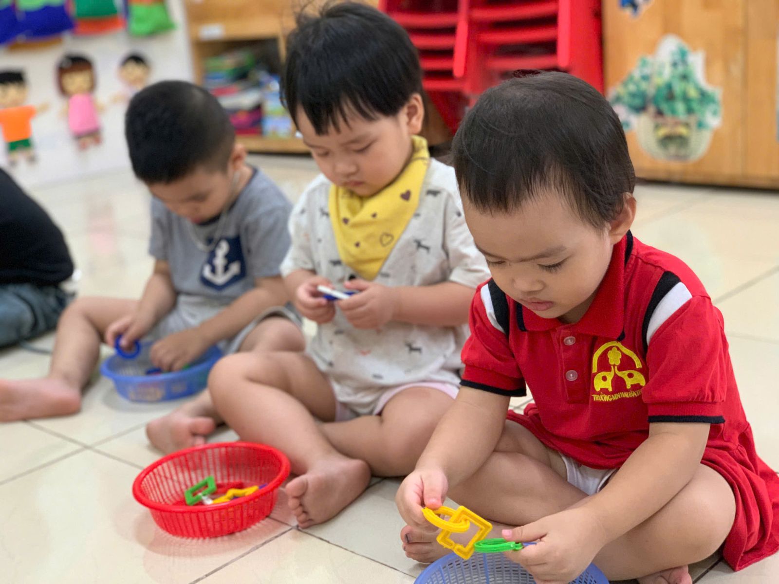 Hoạt động với đồ vật : dạy trẻ lắp ghép các hình thành vòng