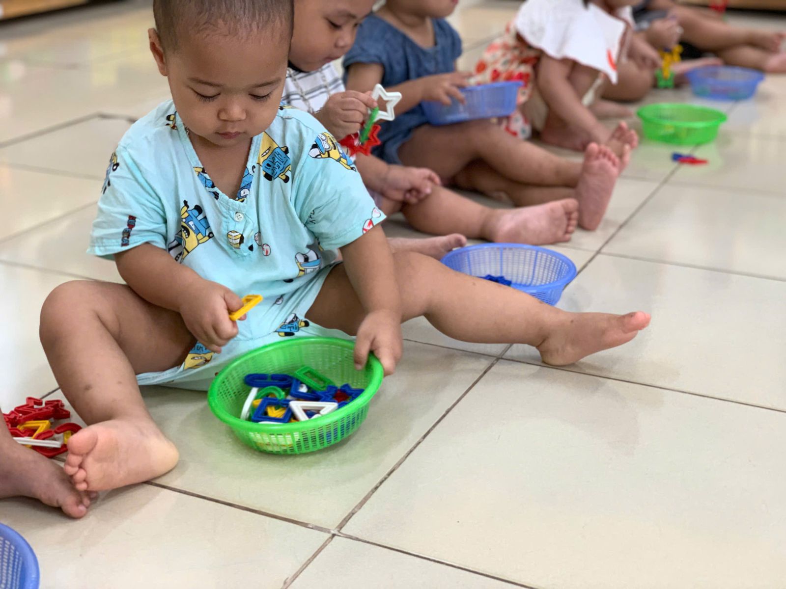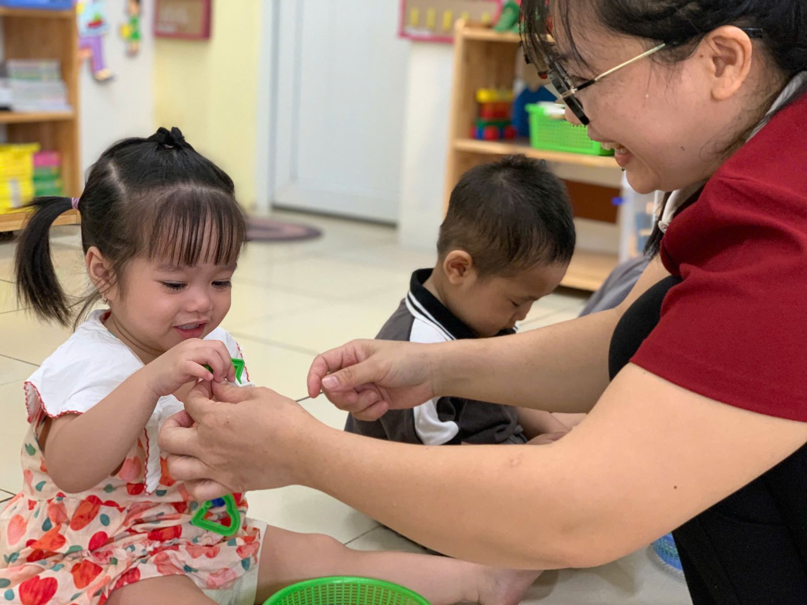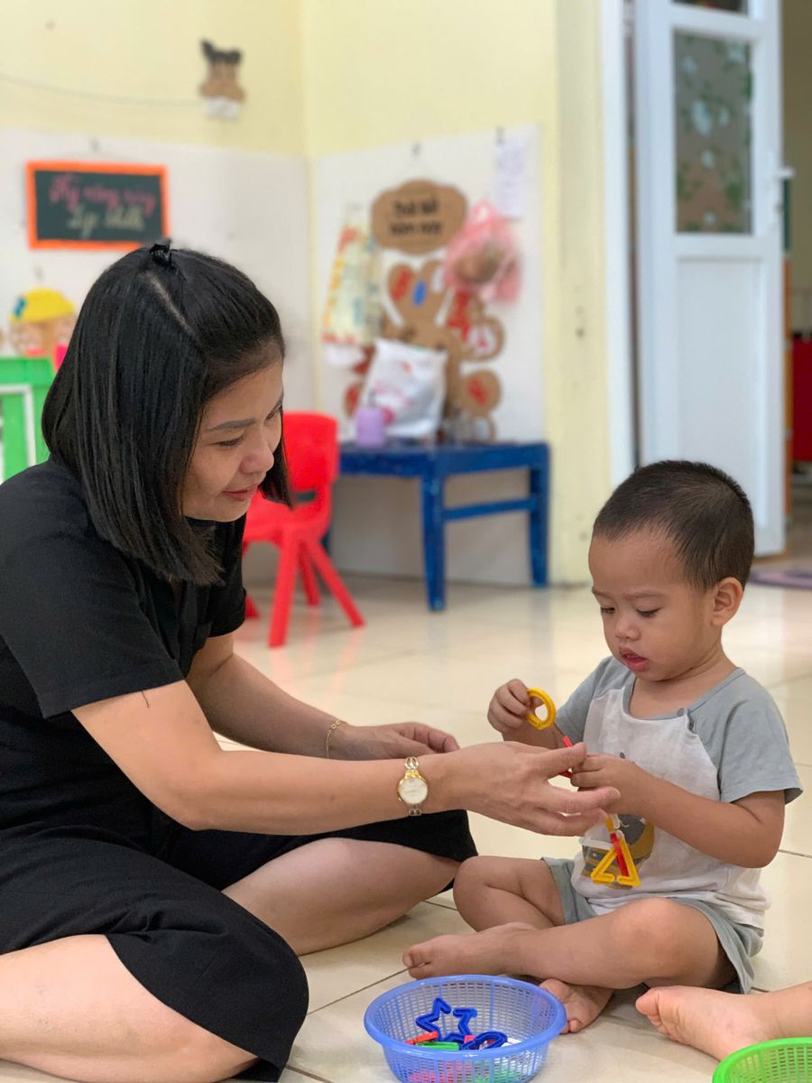 Hoạt động với đồ vật : dạy trẻ lắp ghép các hình thành vòn