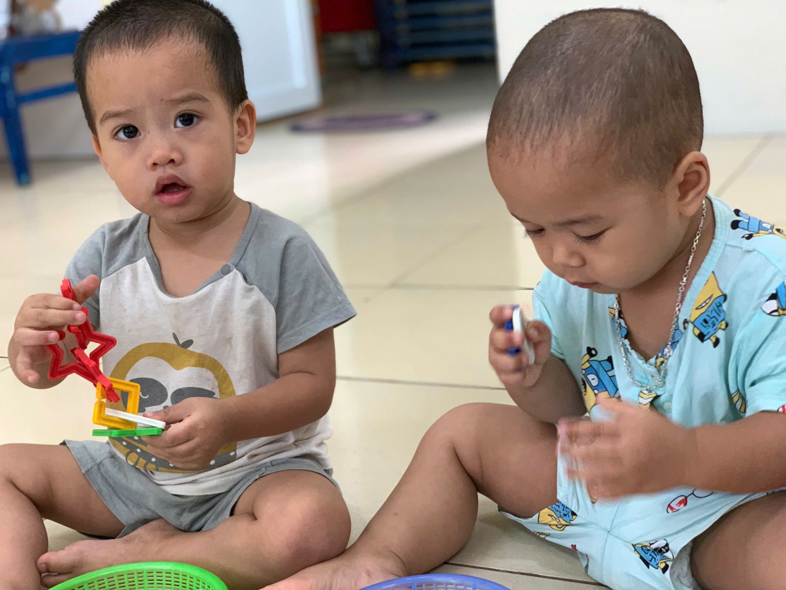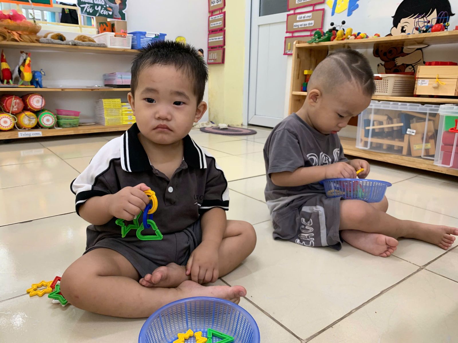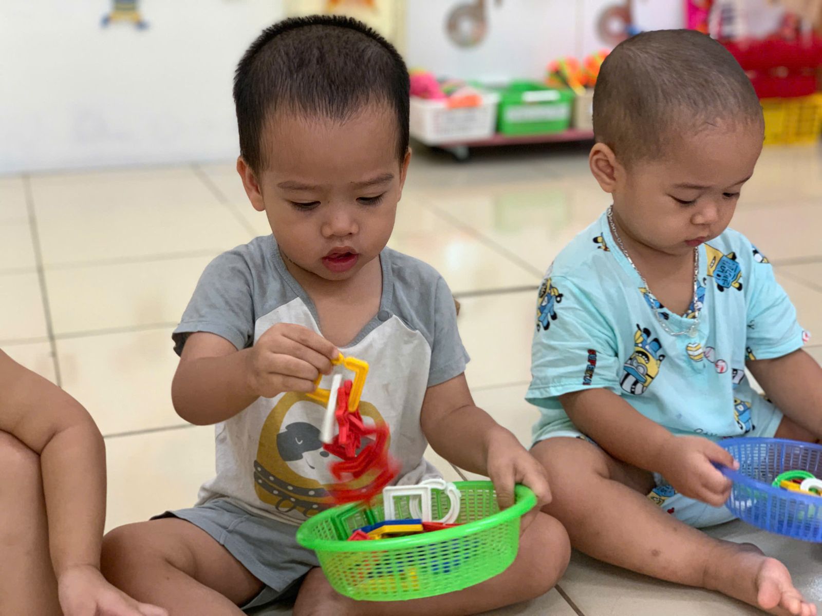Hoạt động với đồ vật : dạy trẻ lắp ghép các hình thành vòn