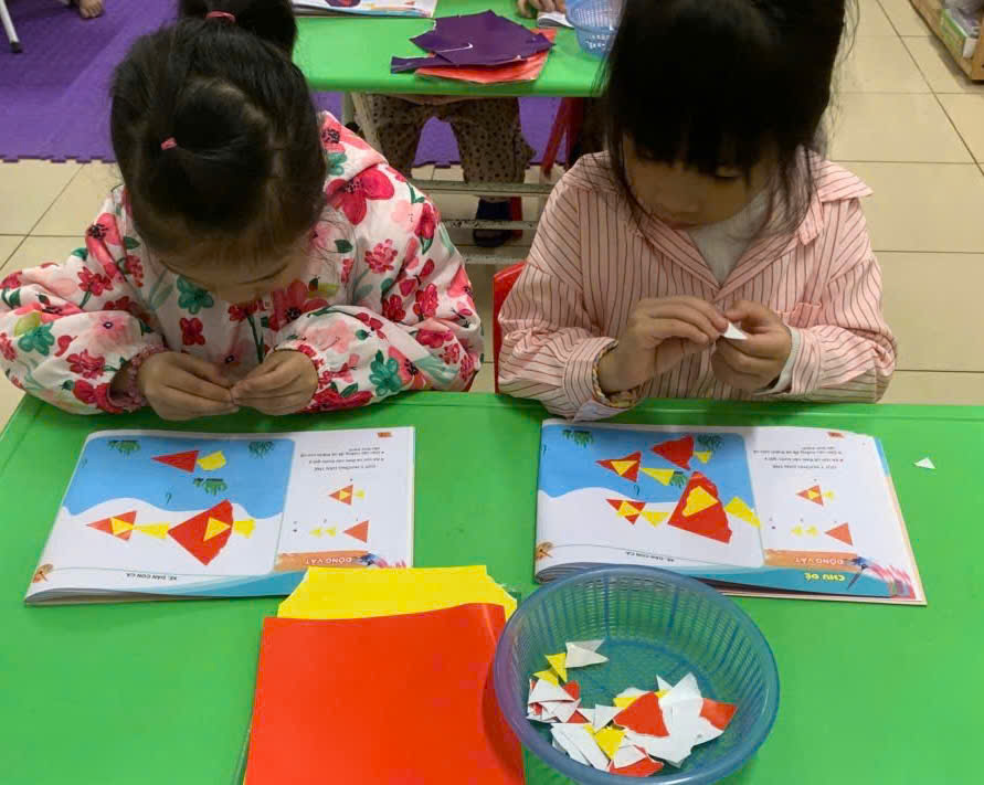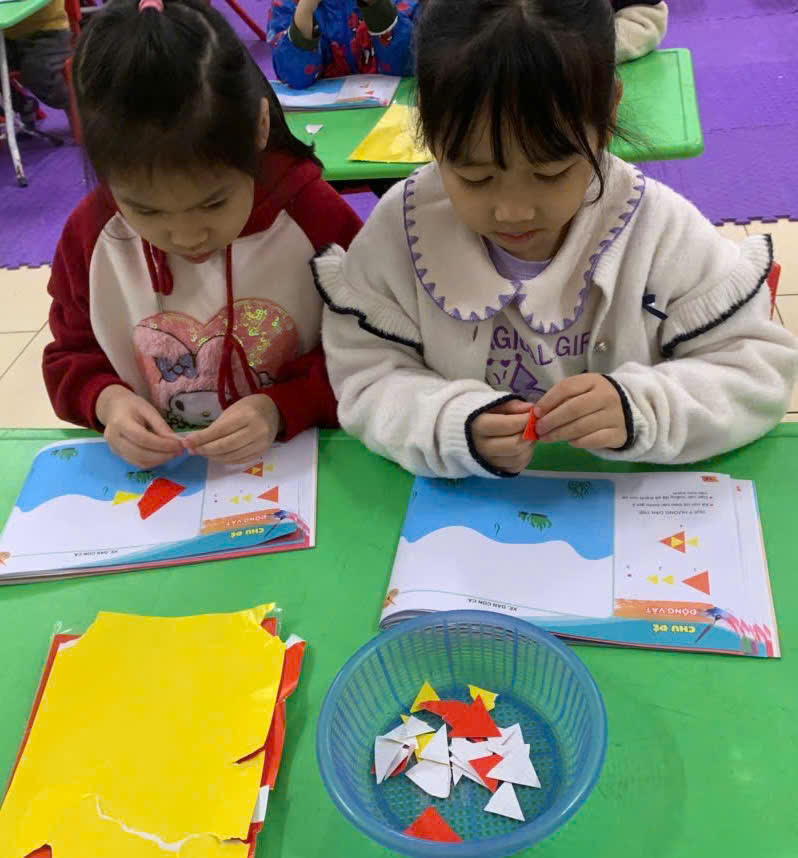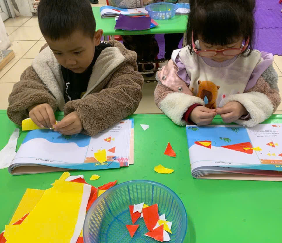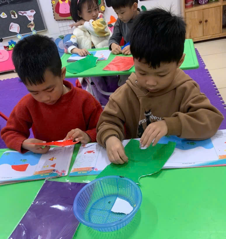 Hôm nay các bạn nhỏ lớp C5 đã dùng đôi bàn tay nhỏ xinh của mình để tạo nên những chú cá thật đáng yêu đấy ạ !!! Thông qua hoạt động: “Xé dán con cá“ đã giúp trẻ rèn luyện sự khéo léo và thỏa sức sáng tạo của mình. Mời mọi người cùng ngắm nhìn những hình ảnh của các bạn nhỏ tham gia vào hoạt động nhé !