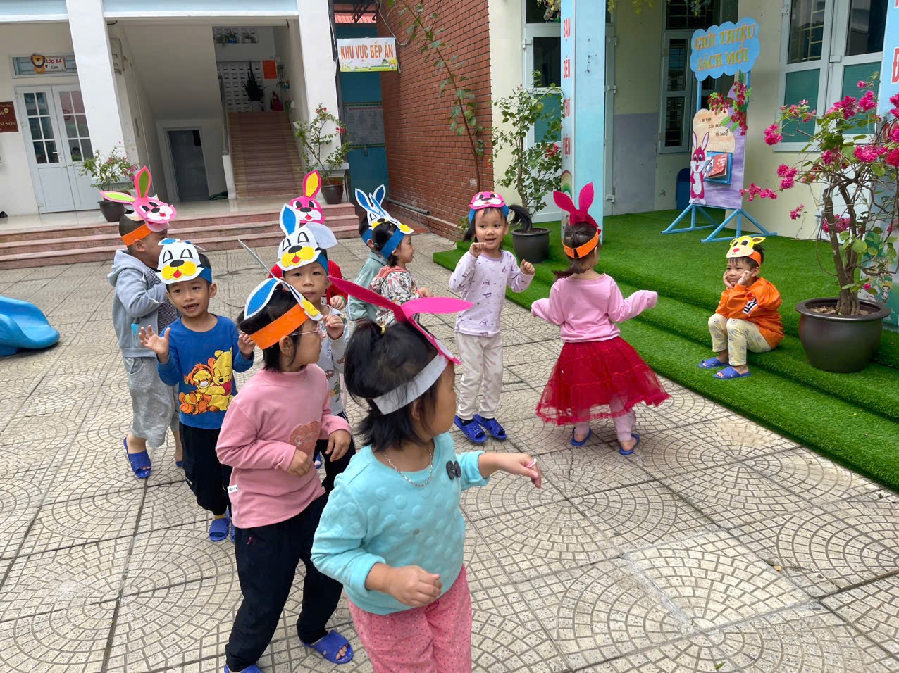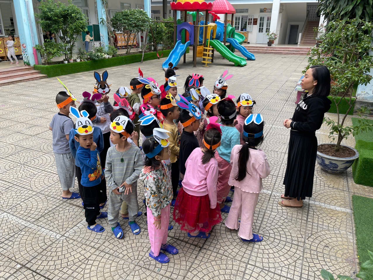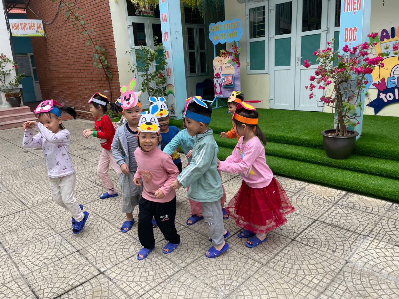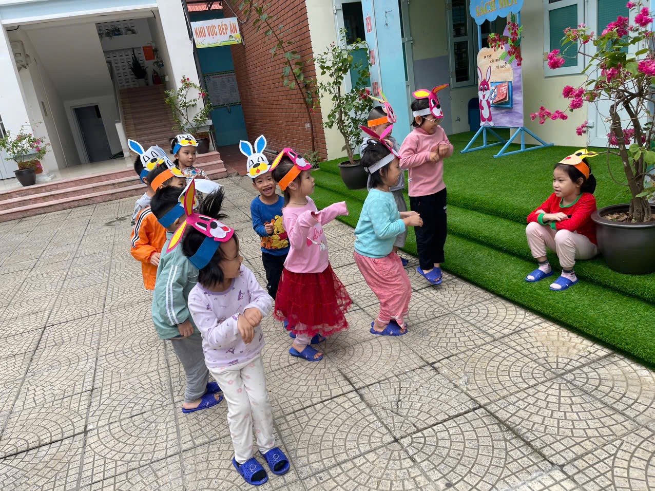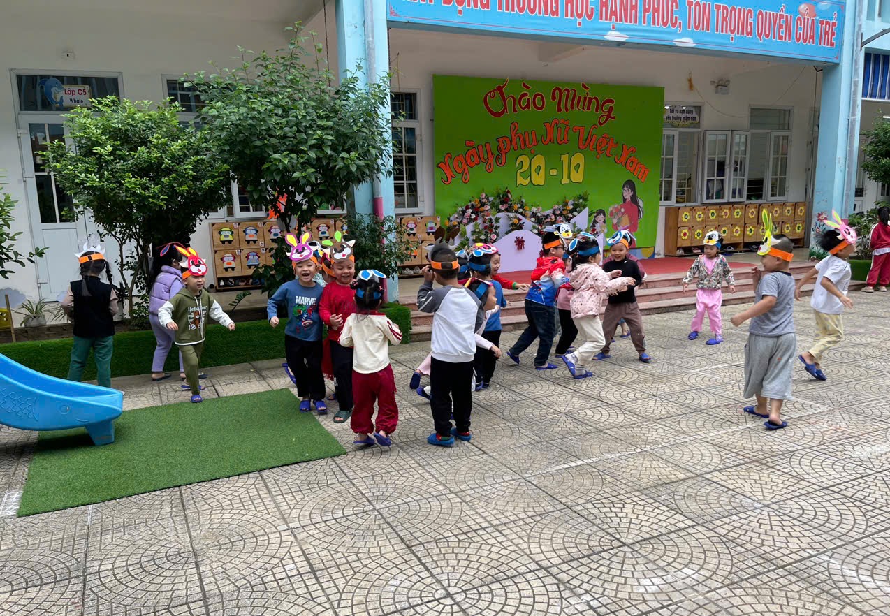 Hôm nay các bạn nhỏ lớp C5 được tham gia TCVĐ: “Cáo và Thỏ” trong hoạt động chơi ngoài trời.