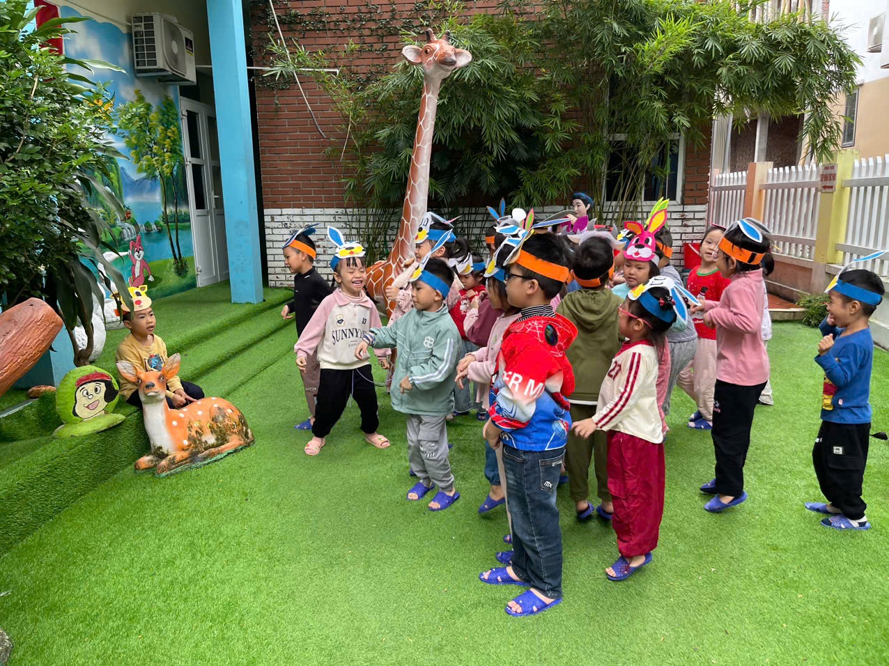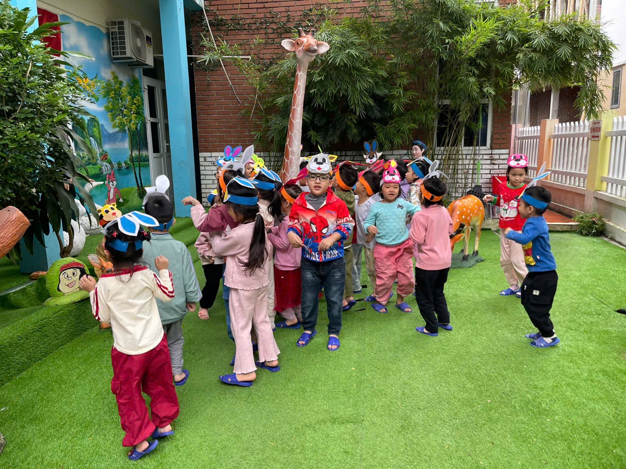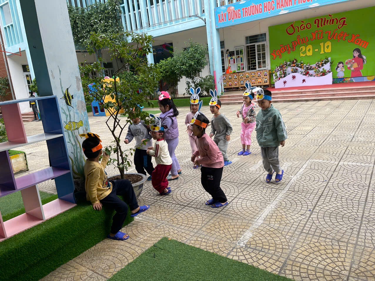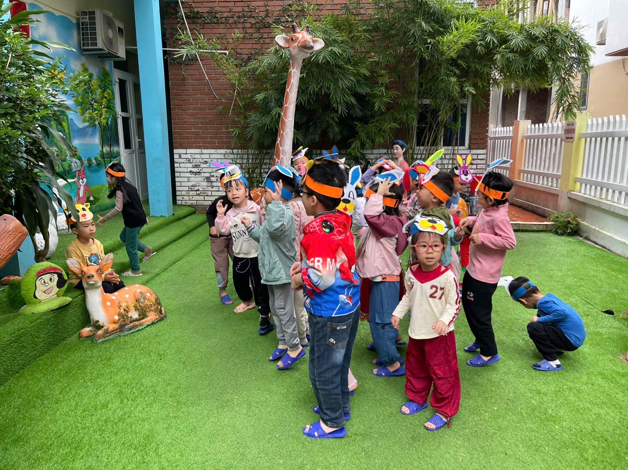 Hôm nay các bạn nhỏ lớp C5 được tham gia TCVĐ: “Cáo và Thỏ” trong hoạt động chơi ngoài trời.