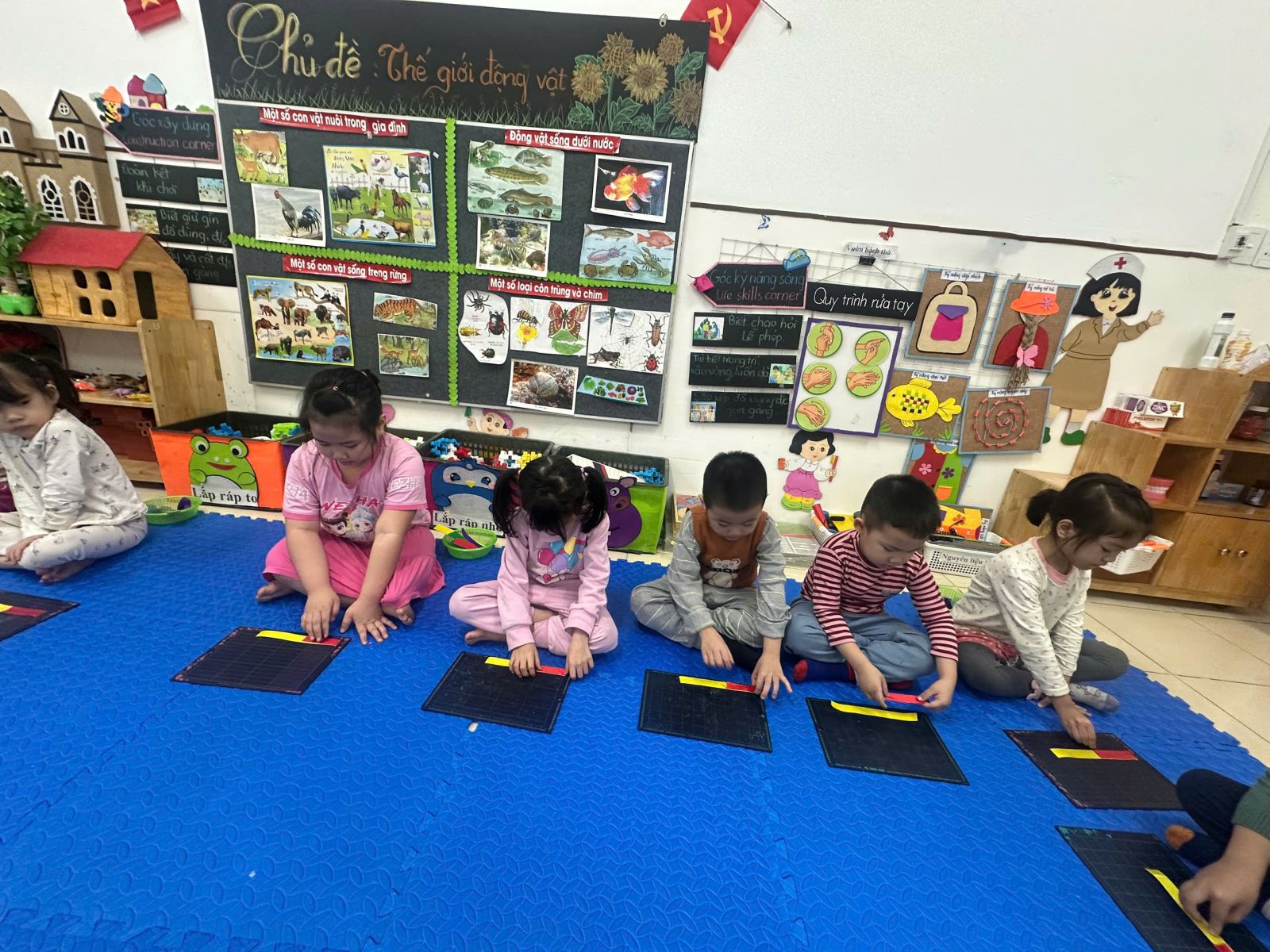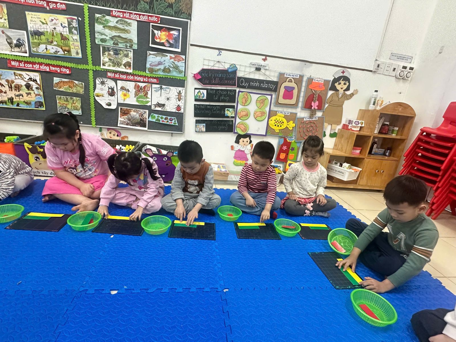 Hôm nay các bé lớp C5, E5 đã cùng nhau tham gia vào hoạt động LQVT: So sánh chiều dài 3 đối tượng