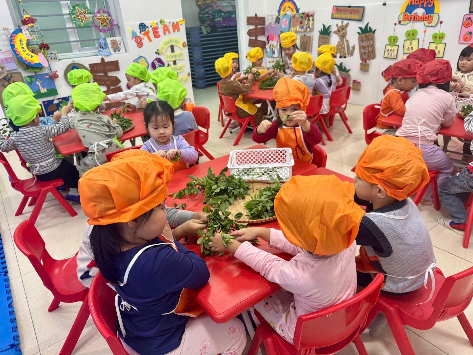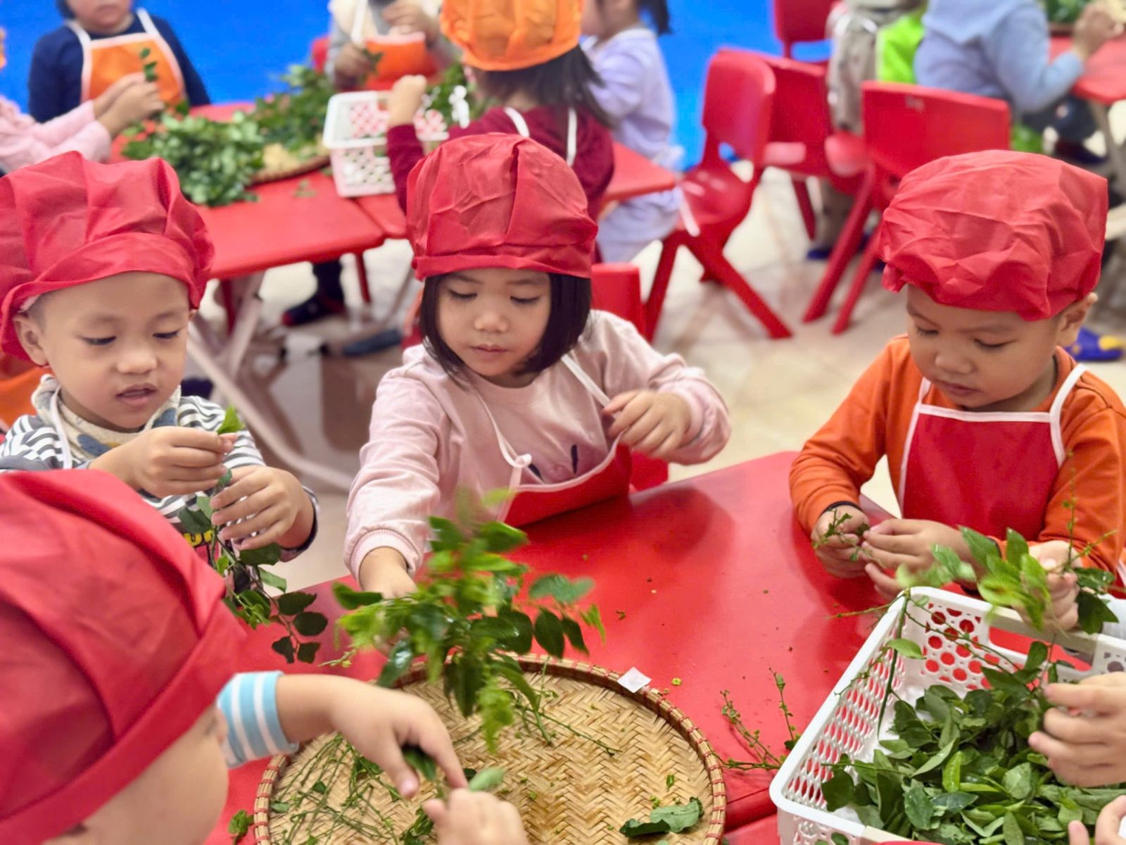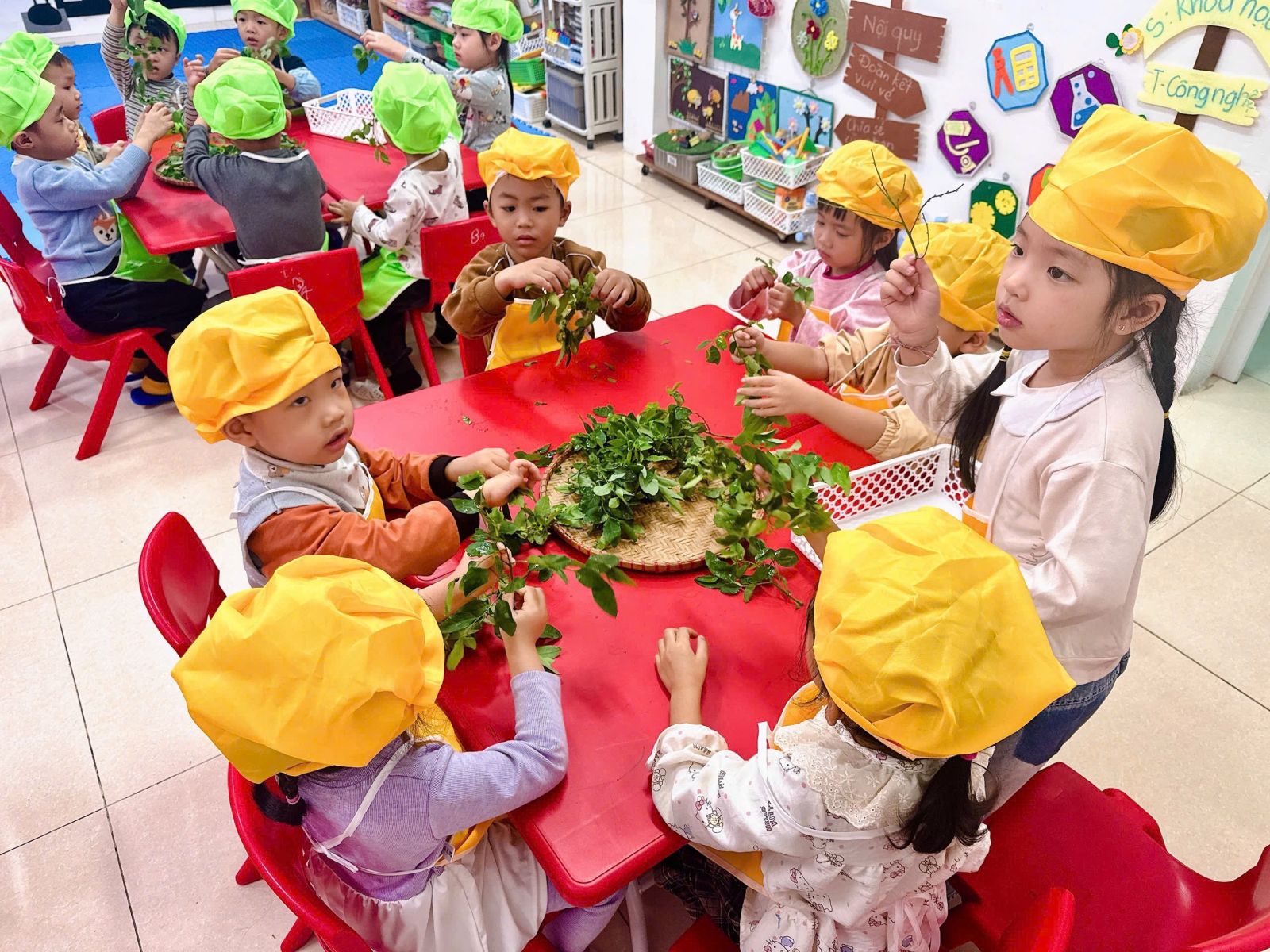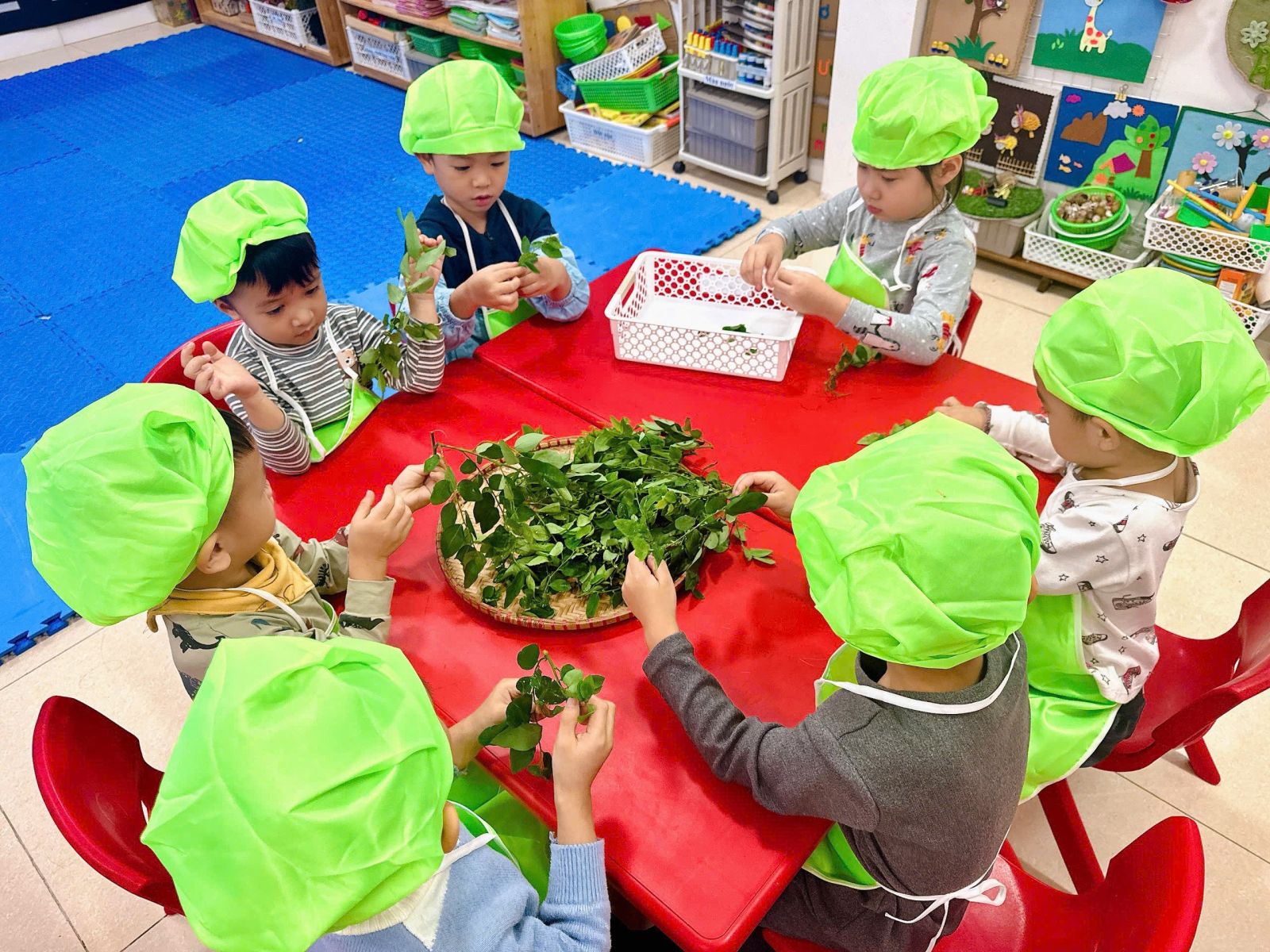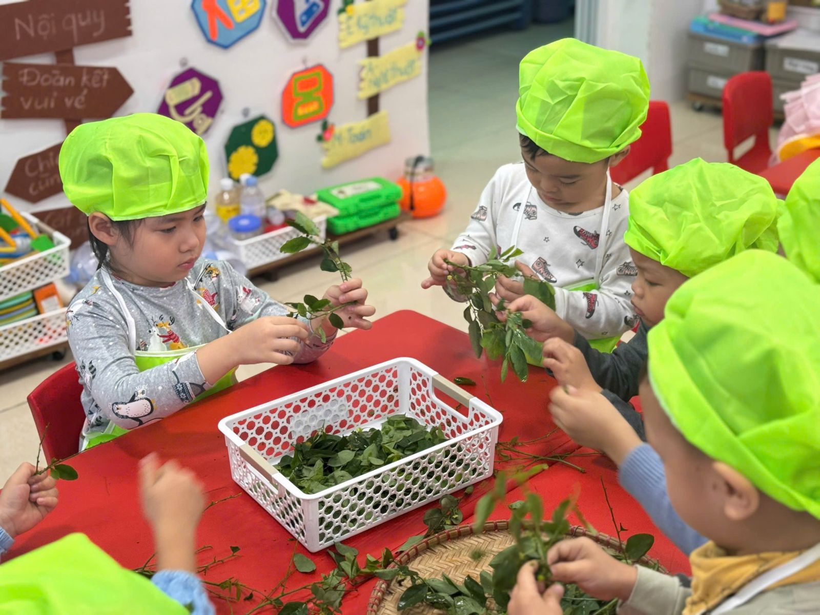 Mời các bạn đến với hoạt động: Tuốt rau ngót của các bạn nhỏ lớ B4, qua hoạt động