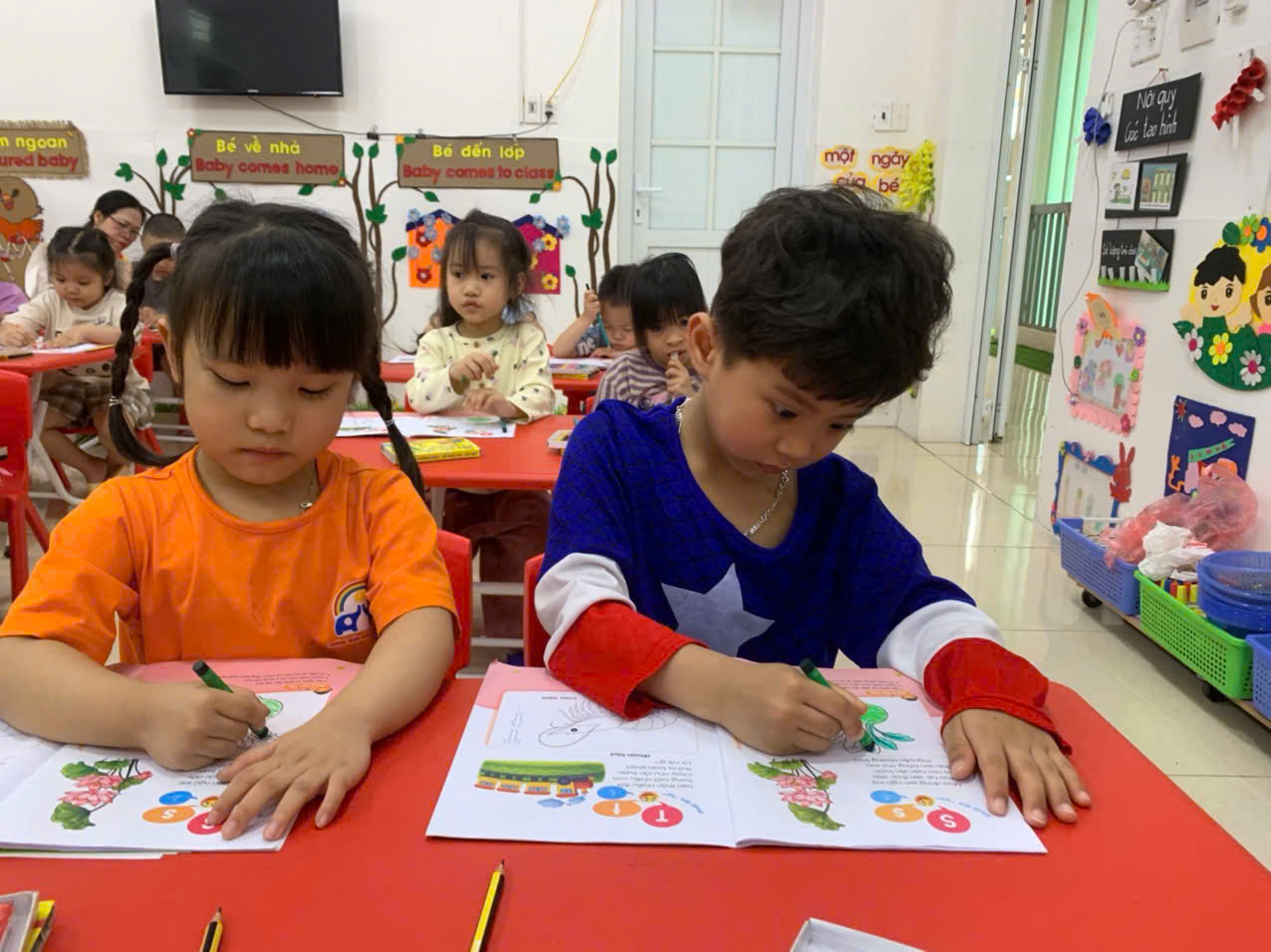 Các con rất hào hứng khi được tự tay hoàn thành bài học của mình