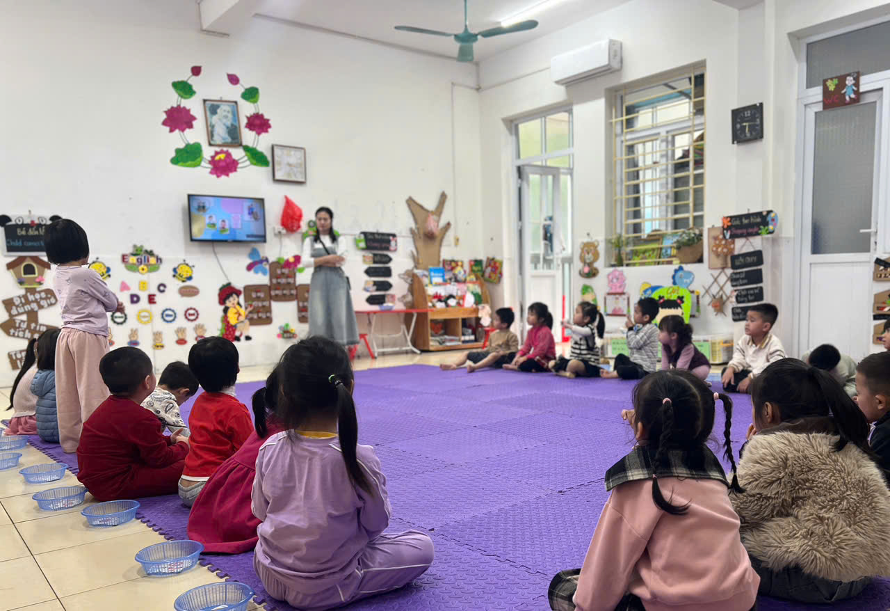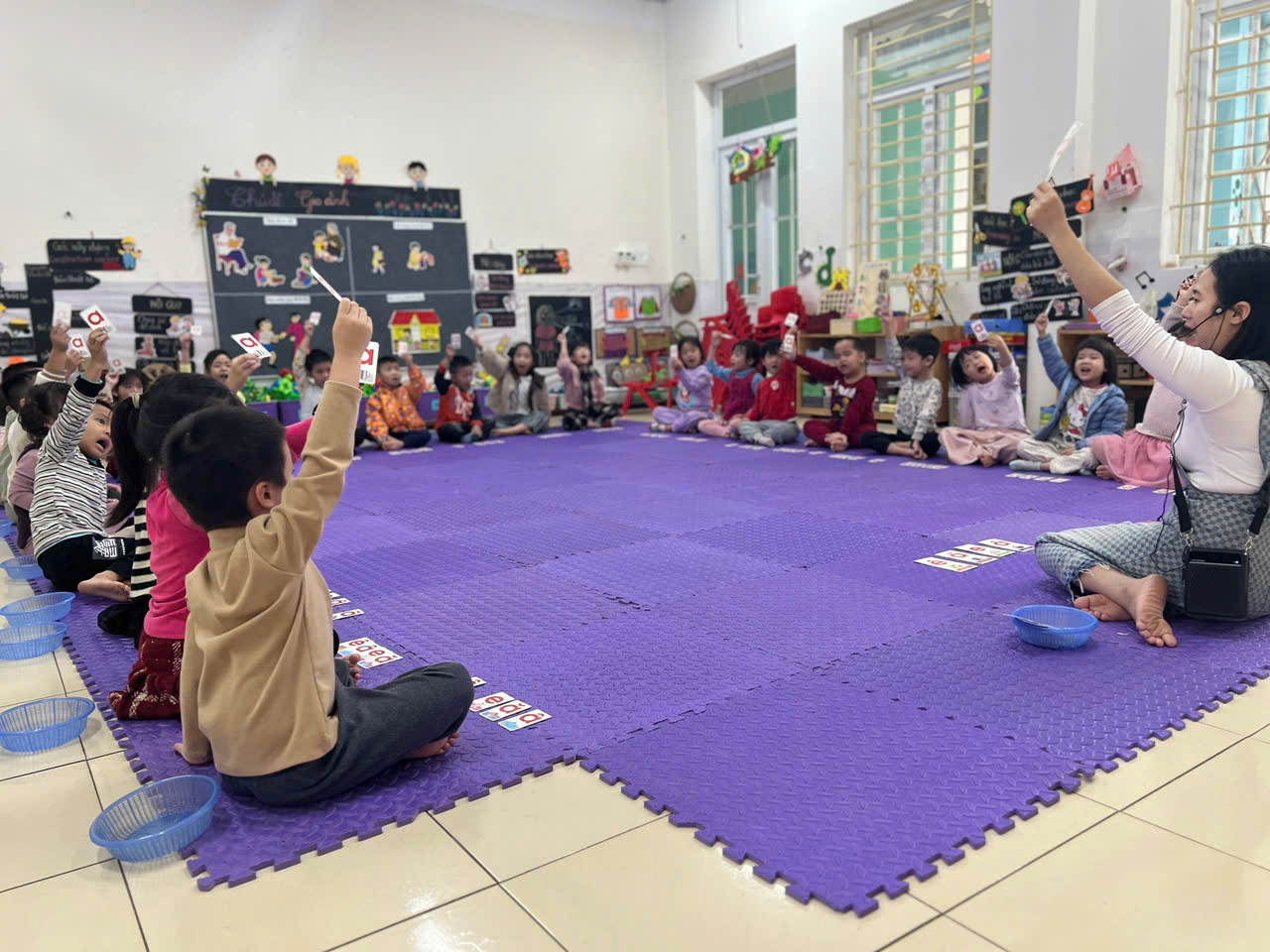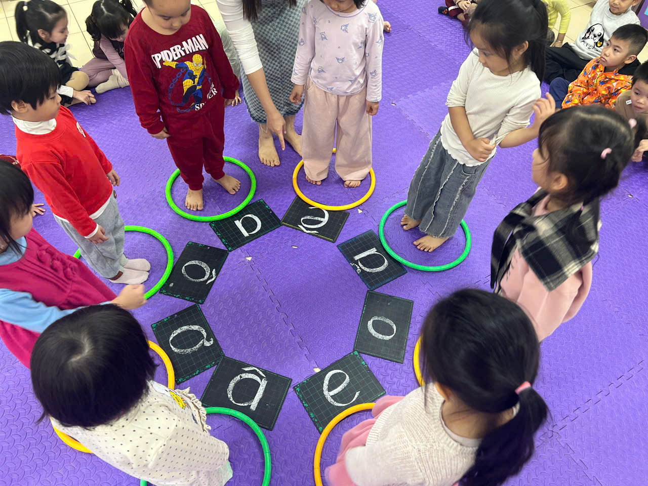 Hnay các bạn lớp D5 được học “Làm quen chữ cái e, ê” đấy ạ. Các bạn vừa được ôn lại các chữ cái đã học và vừa làm quen thêm chữ cái mới e, ê. Bạn nào cũng rất hào hứng đọc to, rõ ràng và tích cực chơi cùng với chữ cái!!!