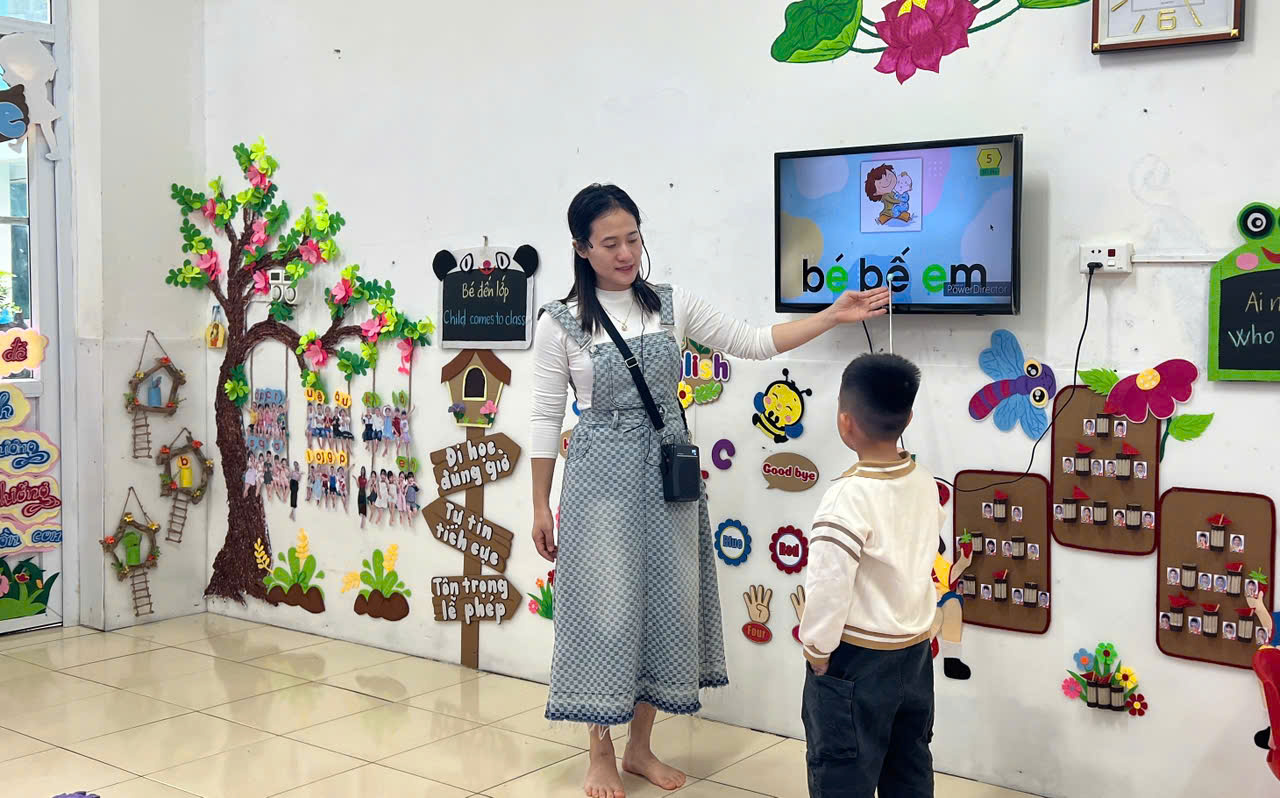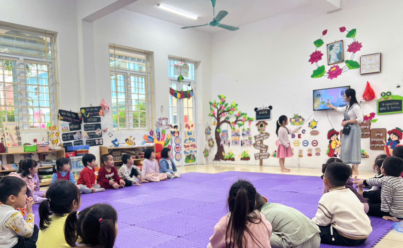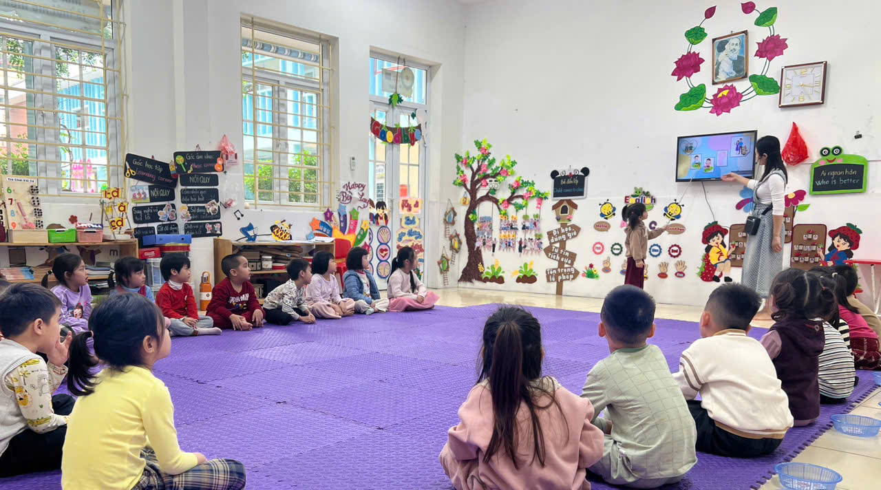 Hnay các bạn lớp D5 được học “Làm quen chữ cái e, ê” đấy ạ. Các bạn vừa được ôn lại các chữ cái đã học và vừa làm quen thêm chữ cái mới e, ê. Bạn nào cũng rất hào hứng đọc to, rõ ràng và tích cực chơi cùng với chữ cái!!!