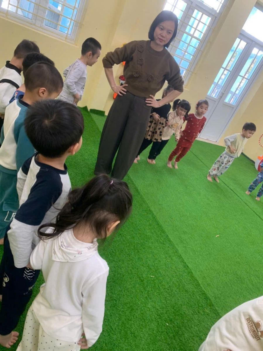 Lớp B4 thể dục: Đi bước lùi liên tiếp khoảng 4m