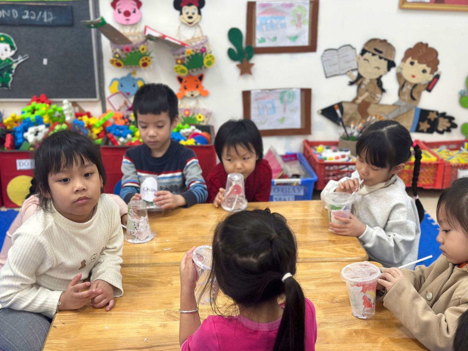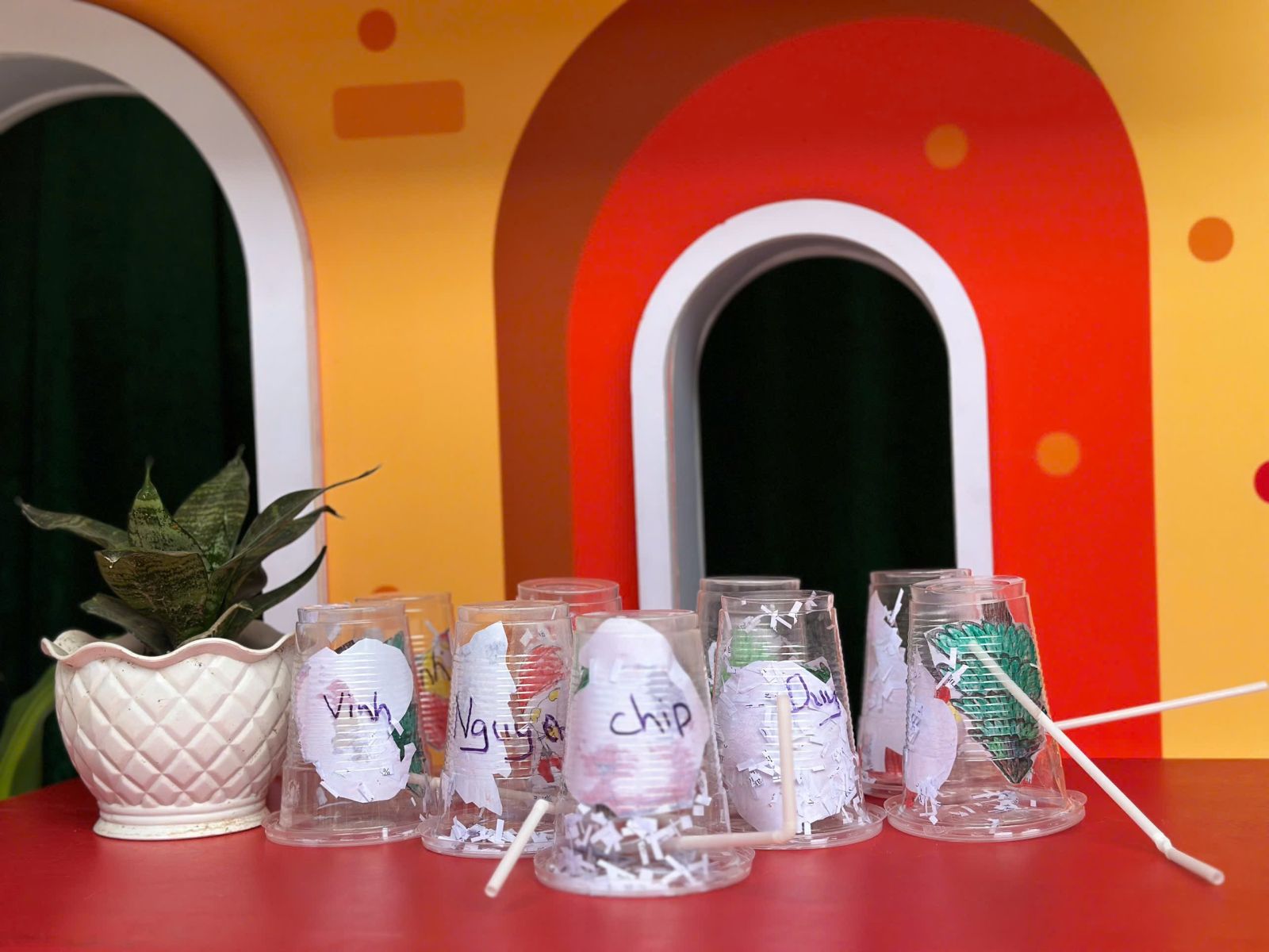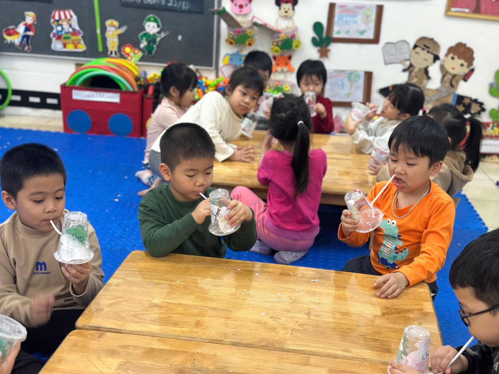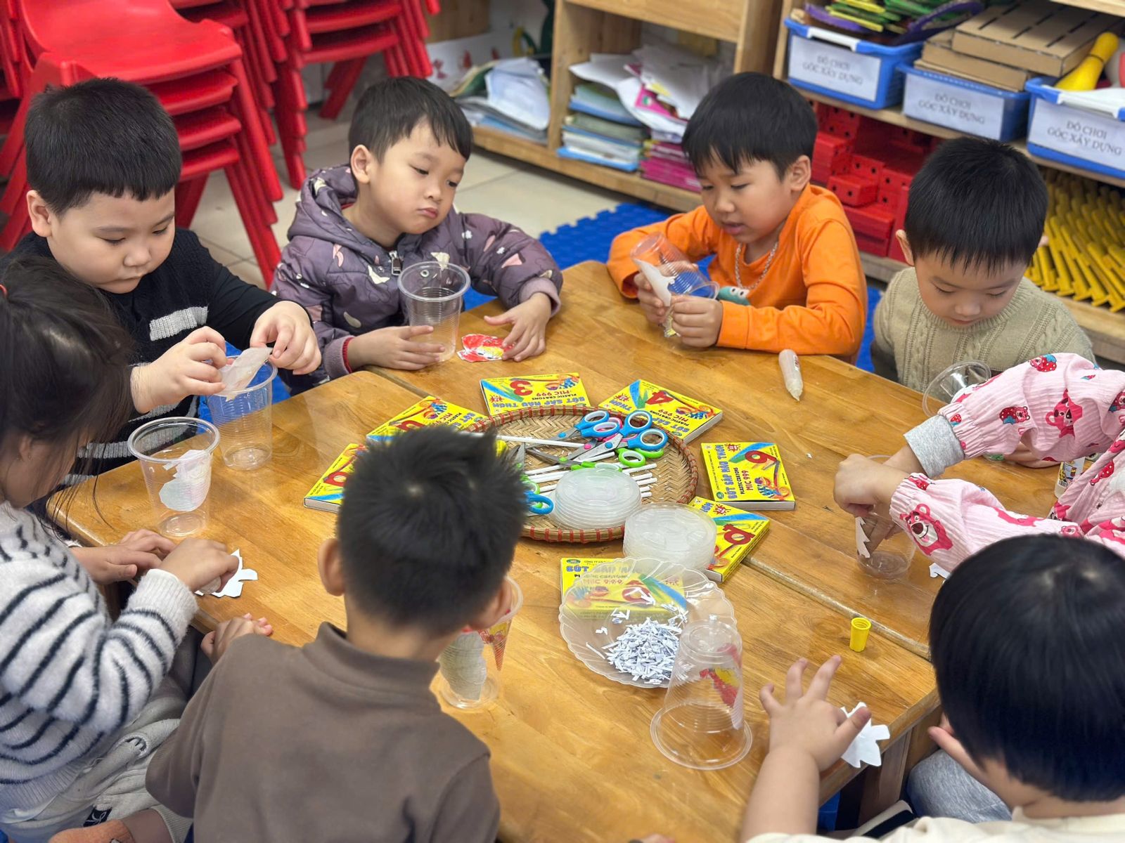 vật liệu quen thuộc như cốc giấy, màu sáp, ống hút, kéo…, các con đã tự tay tạo nên những ngôi nhà tuyết xinh xắn theo trí tưởng tượng của riêng mình. Mời các bạn đón xem nhé