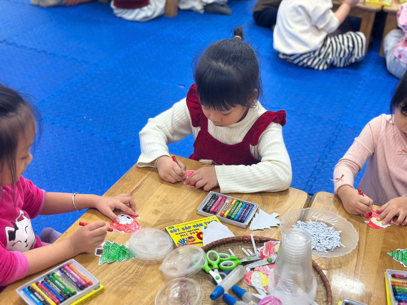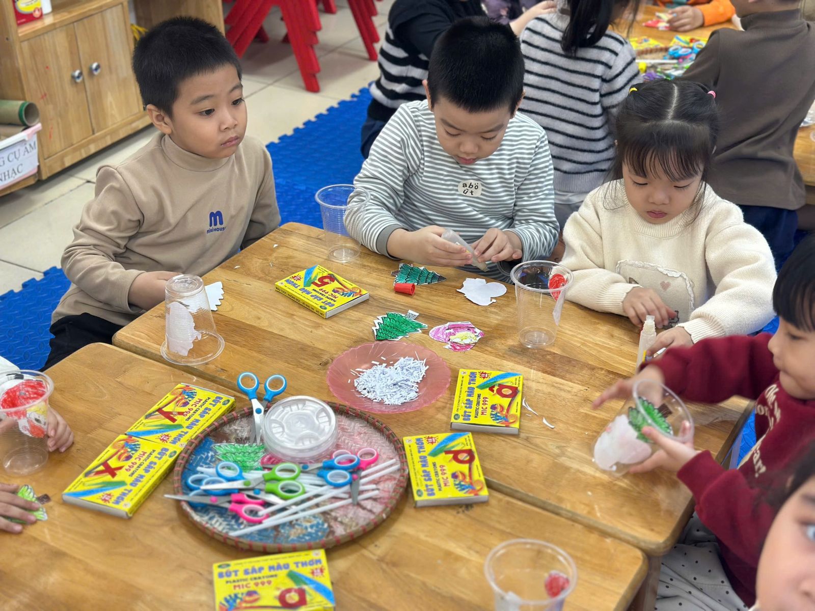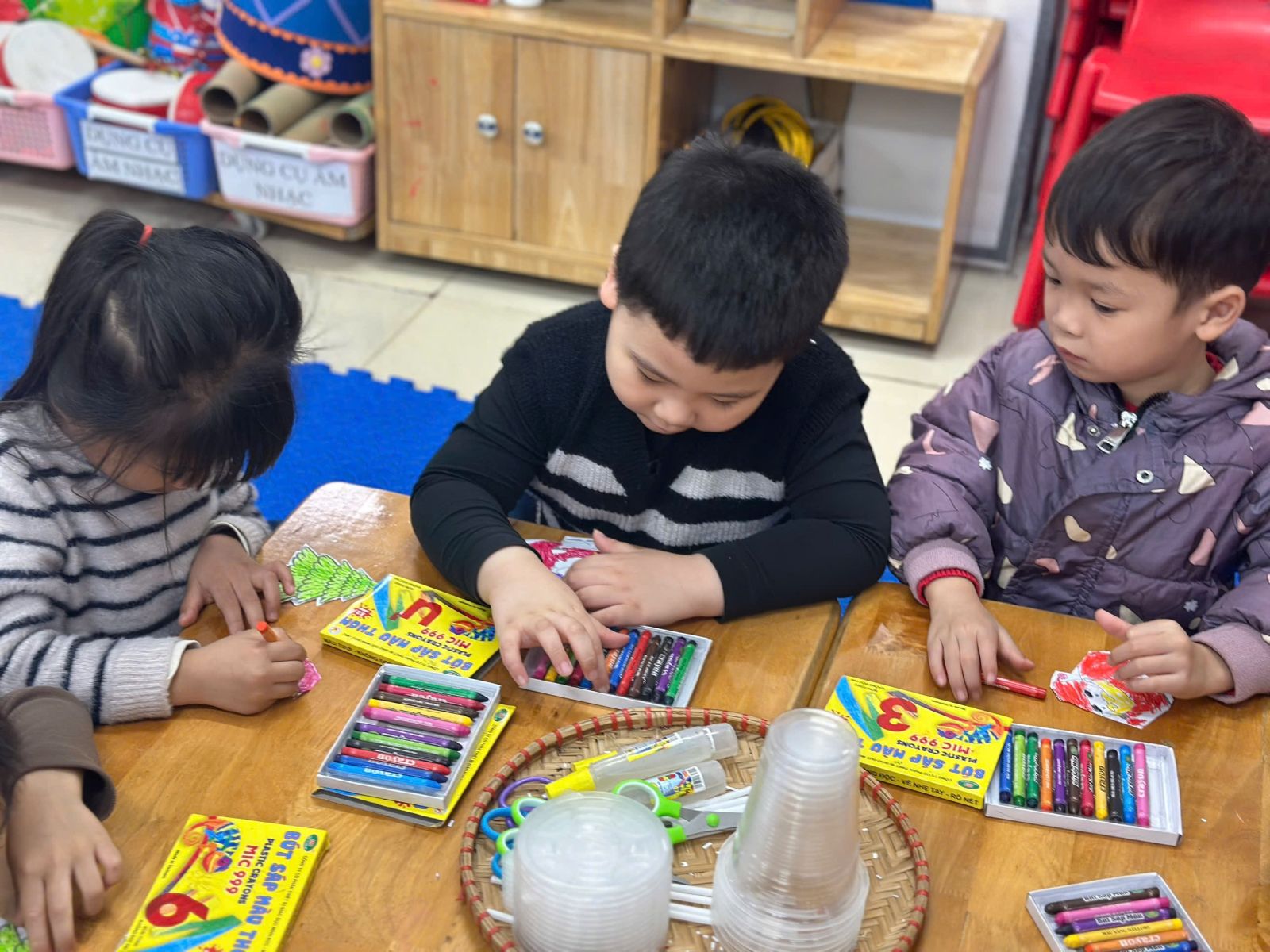 Hôm nay, các con lớp B5 đã tham gia hoạt động tạo hình “Làm nhà ông già Tuyết” – một hoạt động vừa vui nhộn vừa giàu tính sáng tạo. Với những nguyên